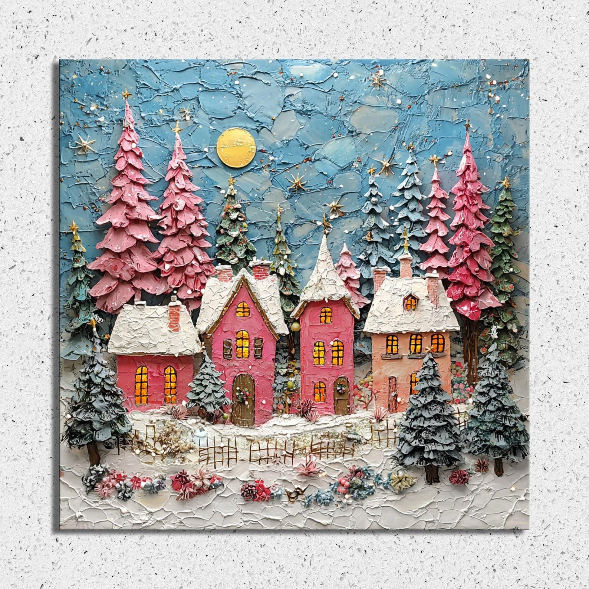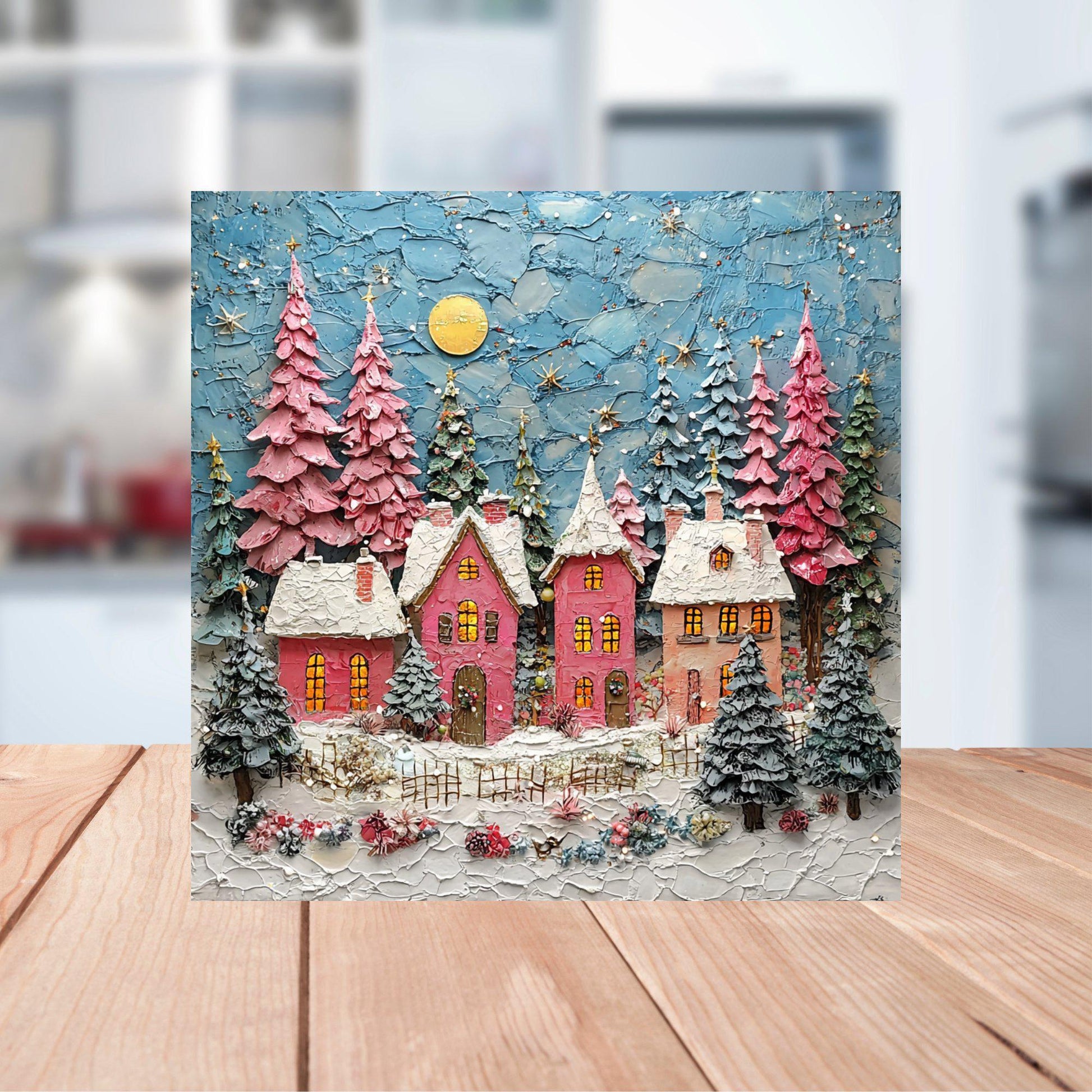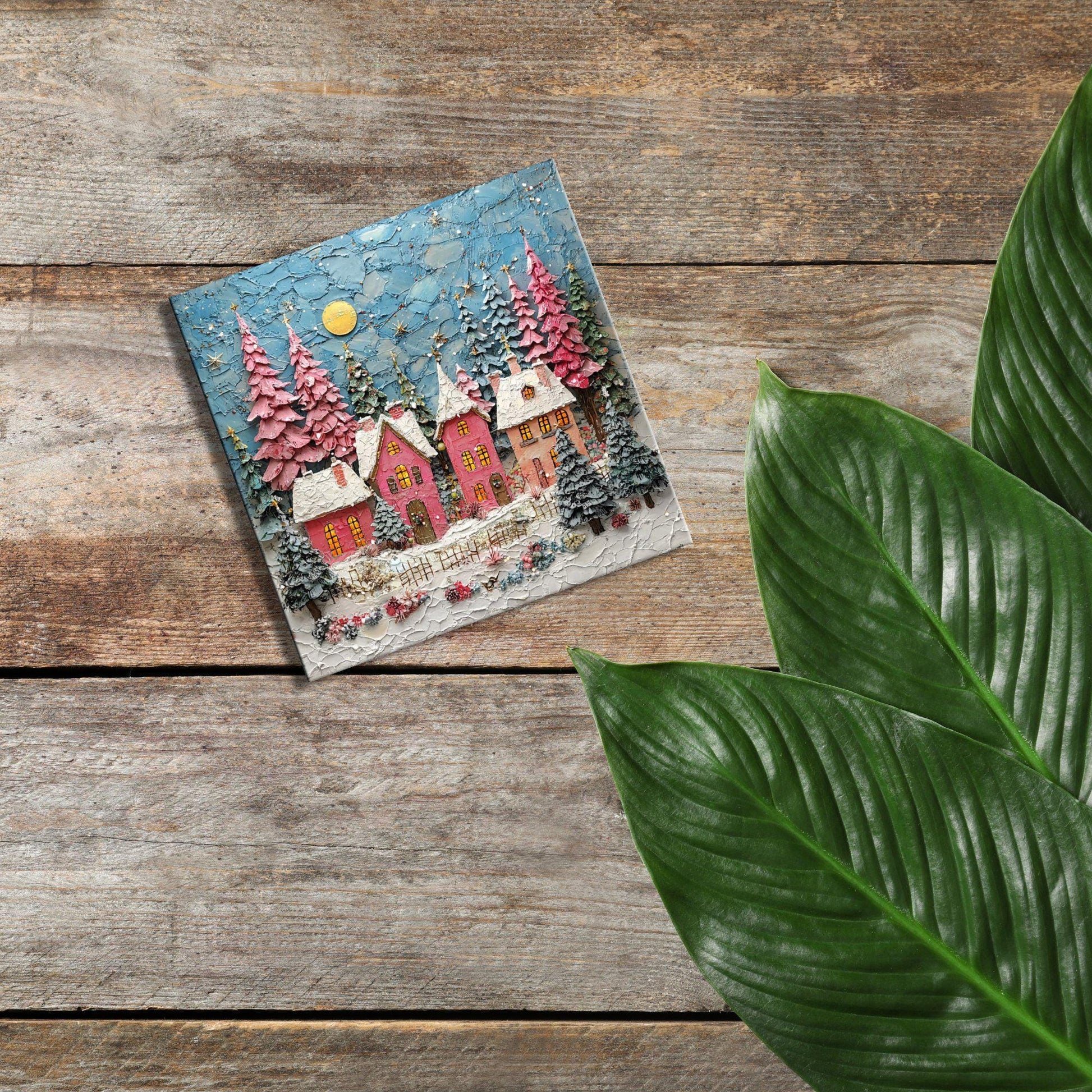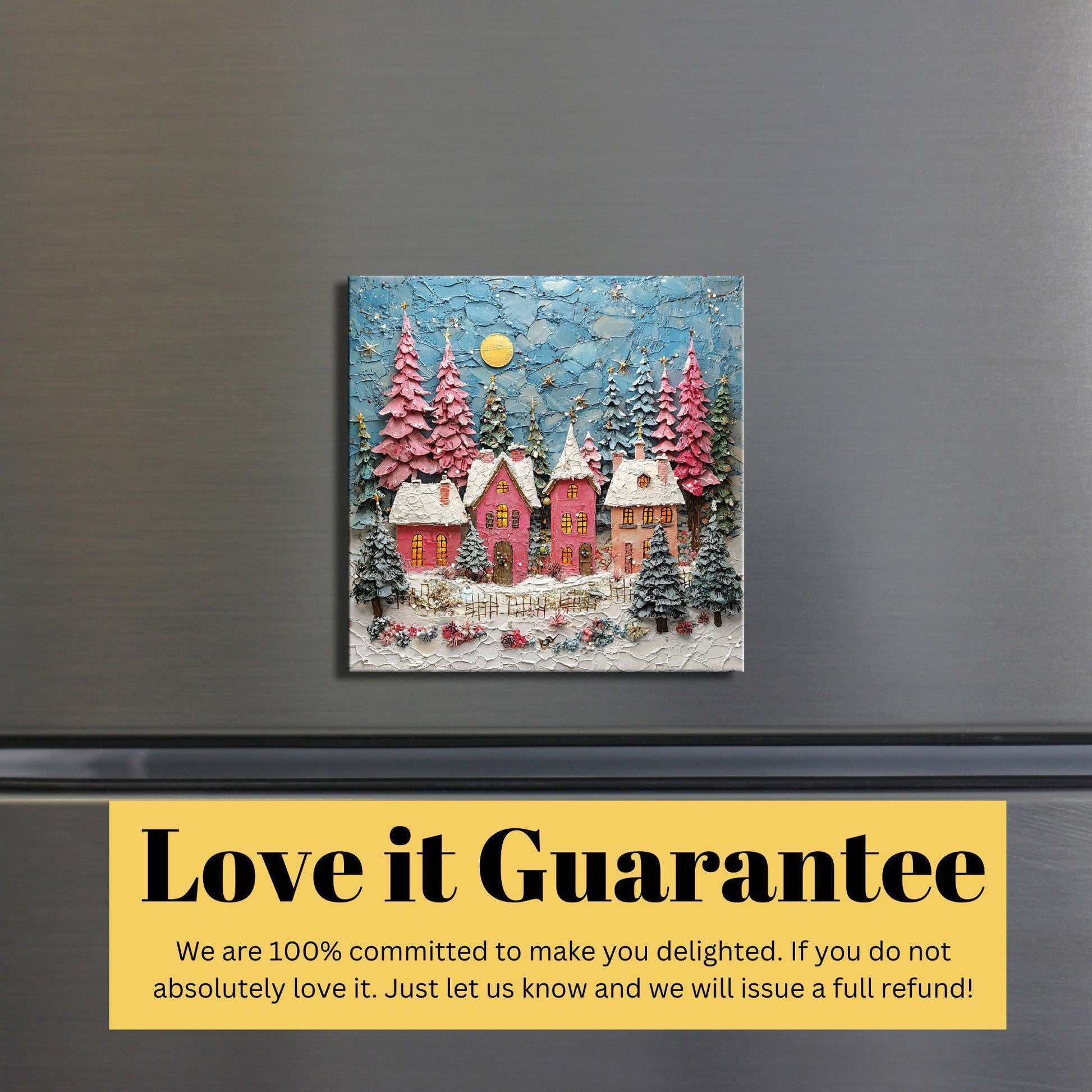 Pink Christmas Village Fridge Magnet 2-inch Strong Refrigerator Magnet Kitchen Decor Dopamine Ceramic Tile Art Gift for Her fridgescaping