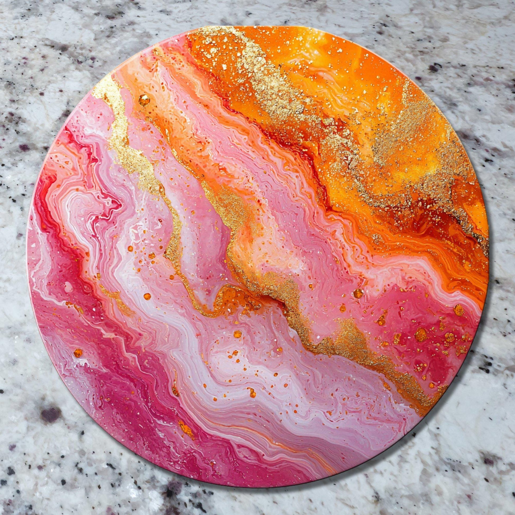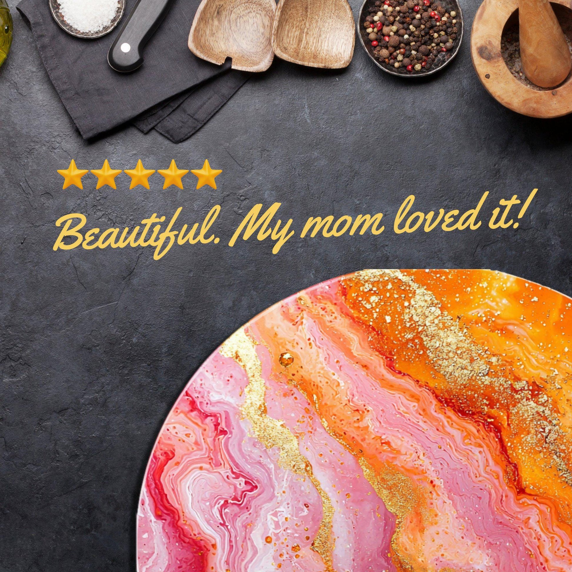 Pink Orange Marble Glass Cutting Board Trivet Hot Plate Charcuterie Board Gift for Her Mom Christmas Housewarming