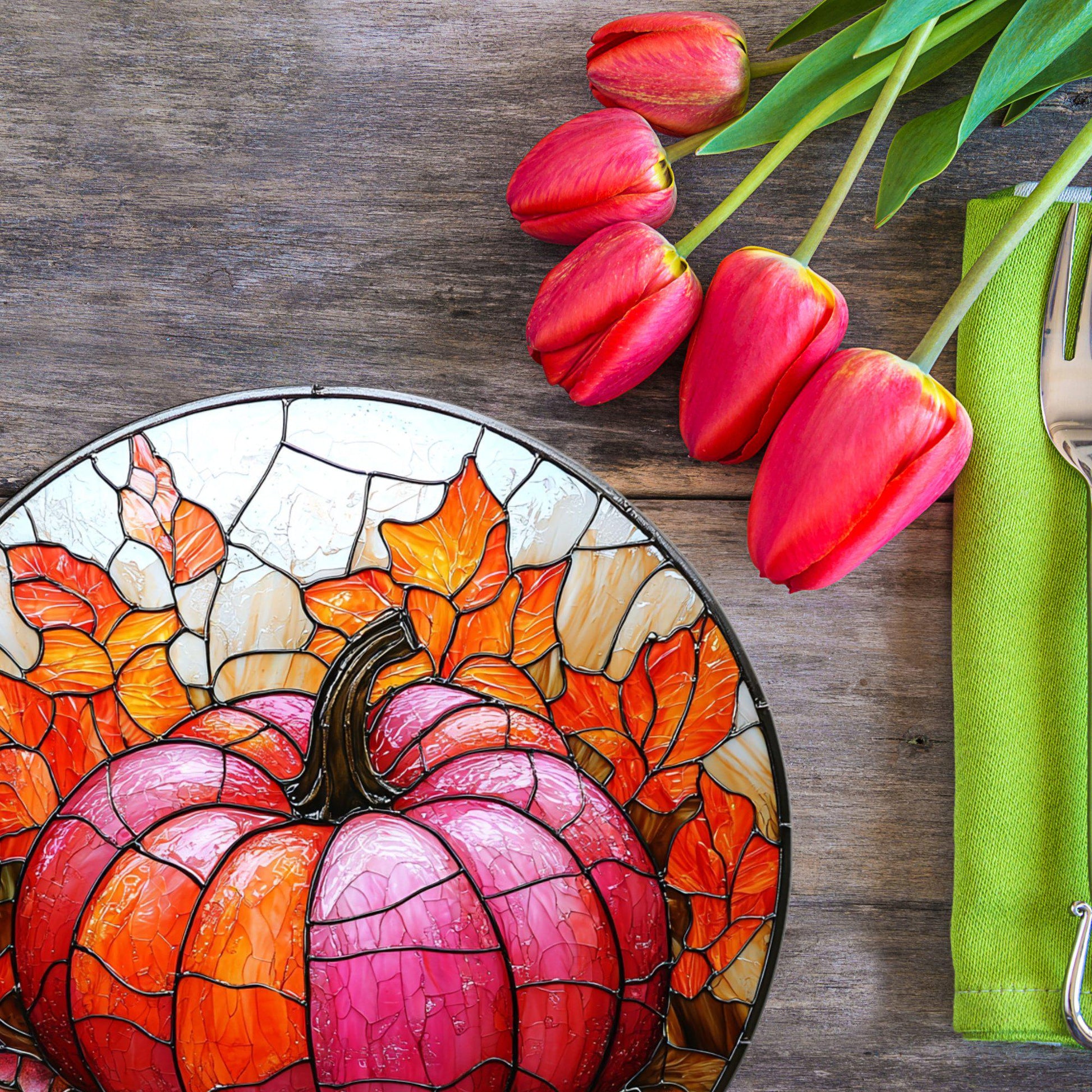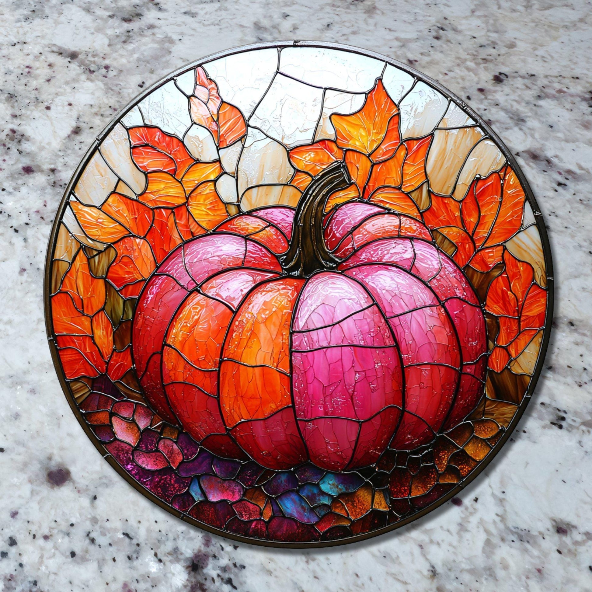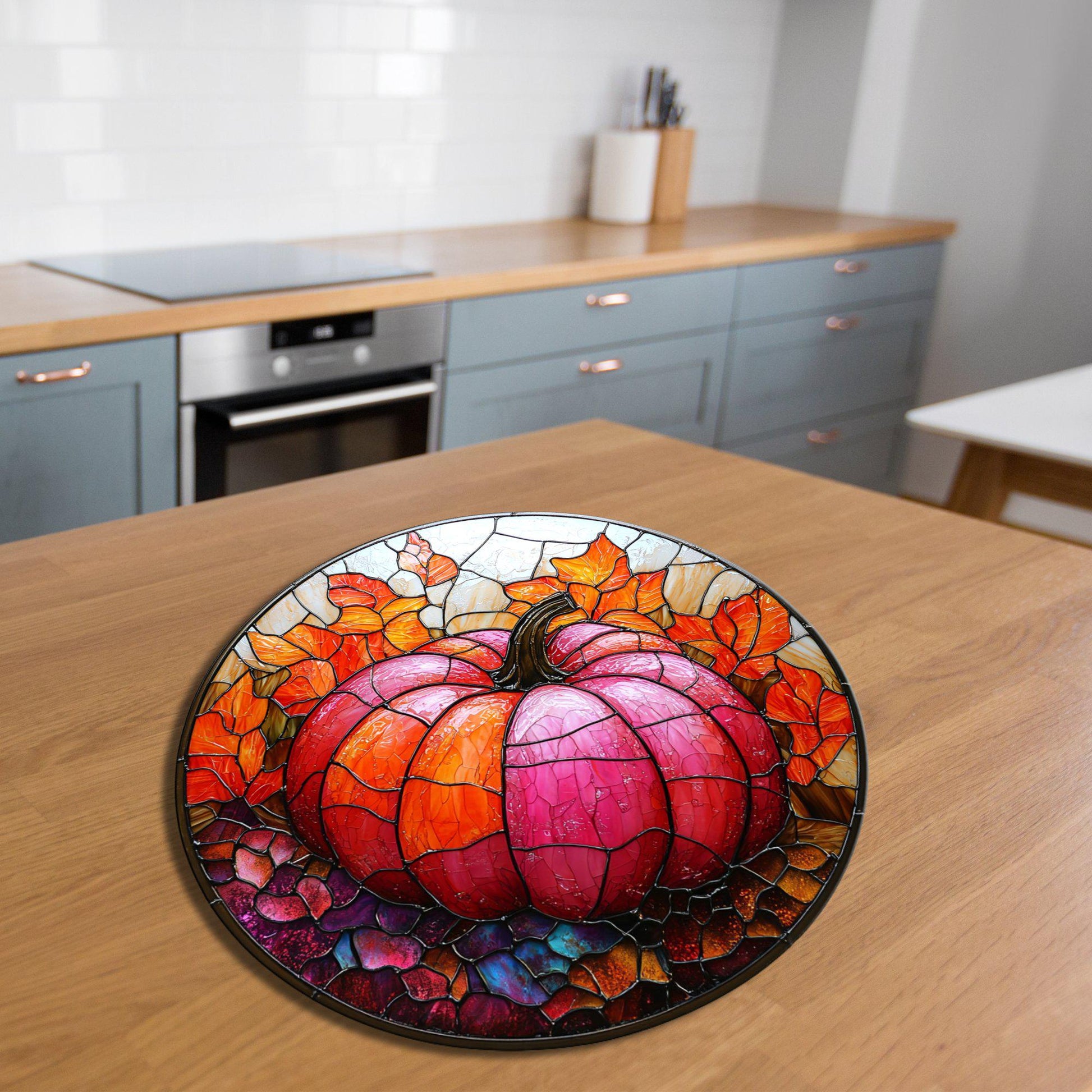 Pink Orange Pumpkin Glass Cutting Board Trivet Hot Plate Charcuterie Board Gift for Her Mom Christmas Housewarming