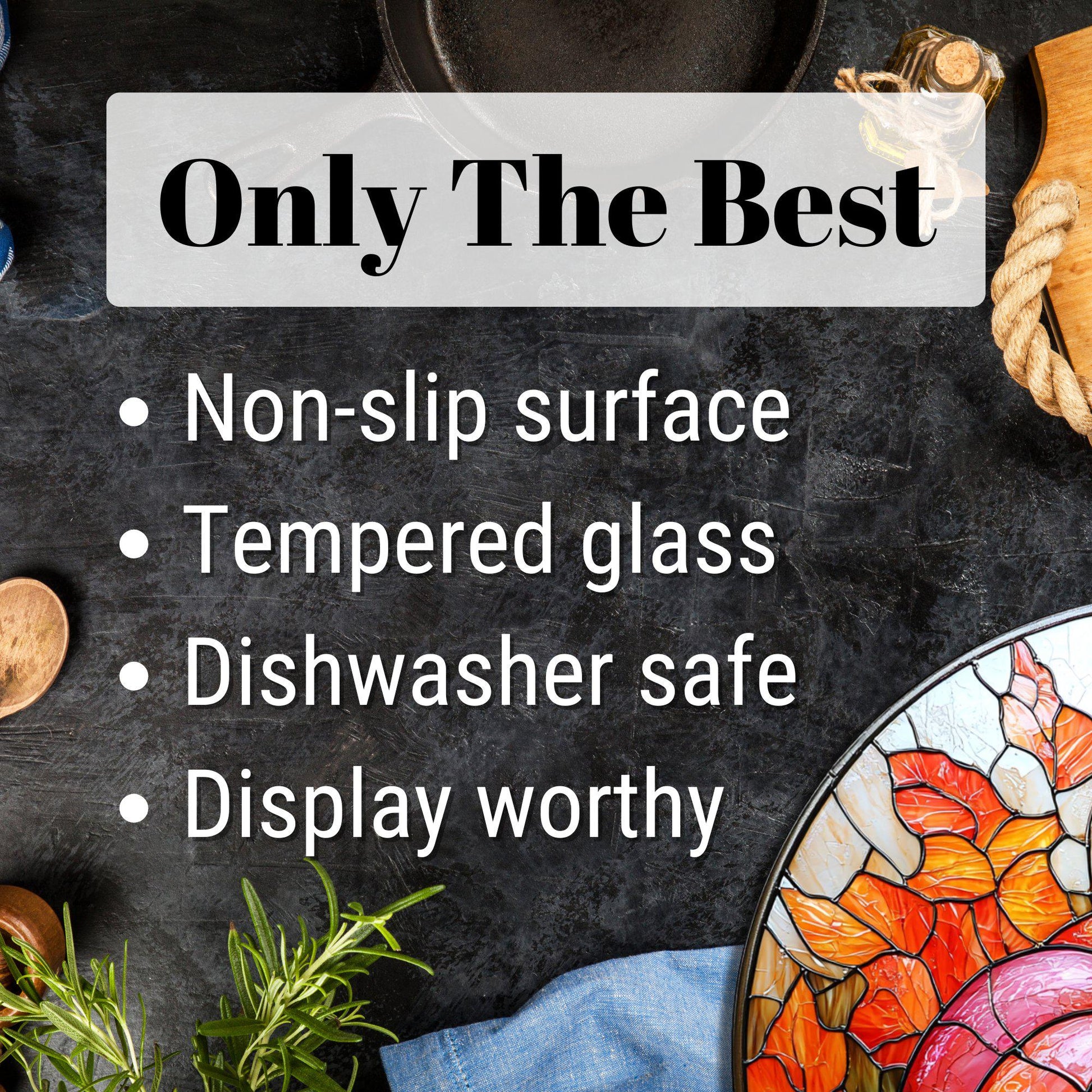 Elevate your kitchen with this functional and beautiful glass cutting board that seamlessly blends practicality with artistry.