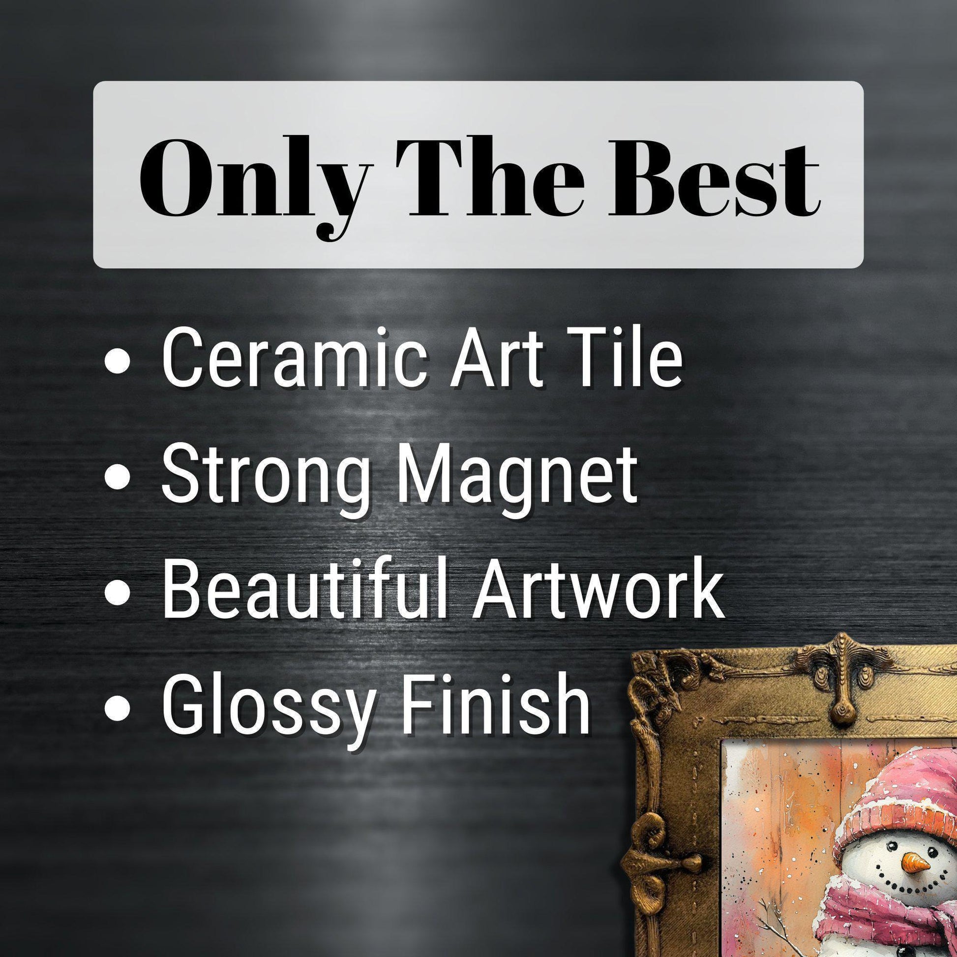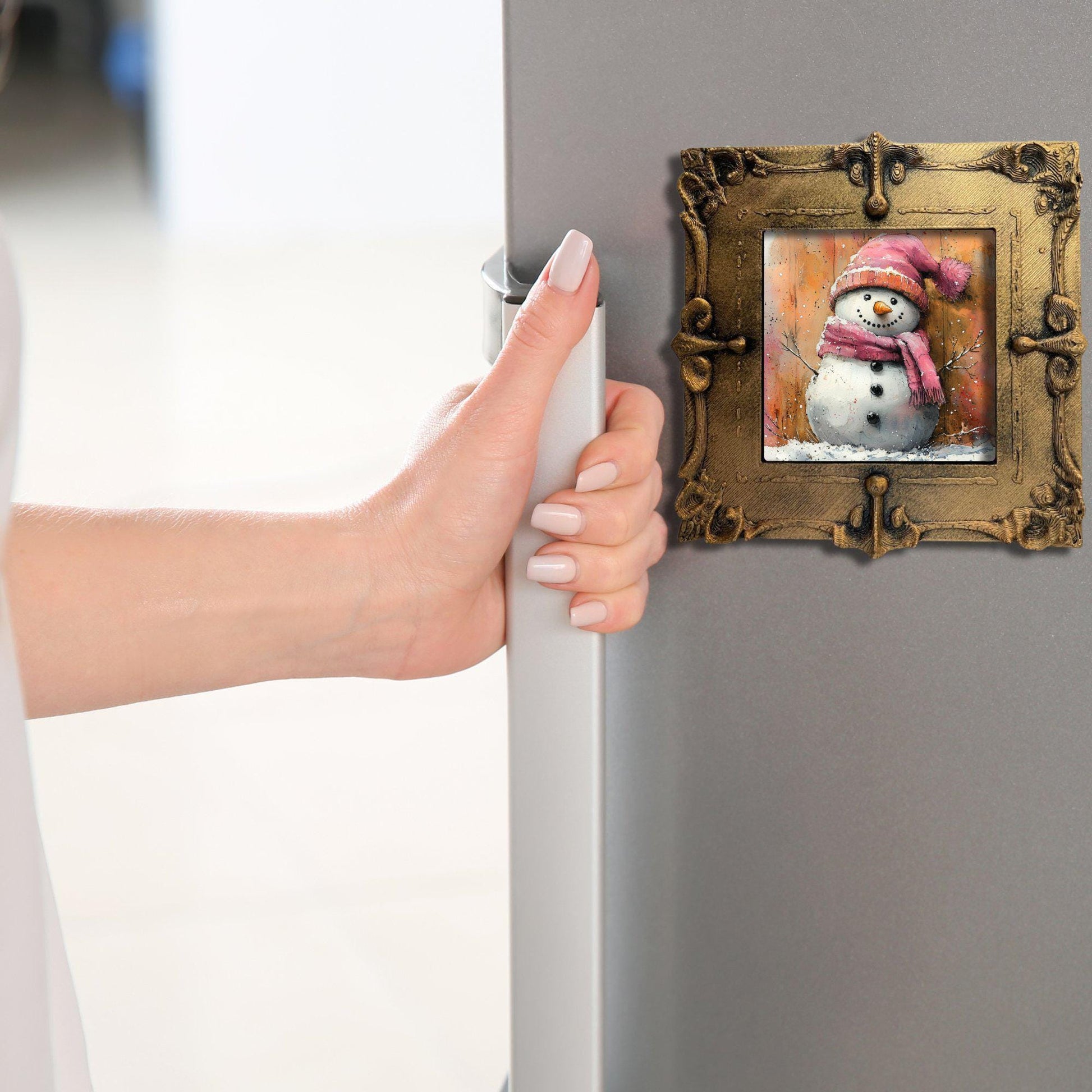 Pink Snow Man Gold Framed Refrigerator Magnet, Mini Art, Grand Millennial Style, Artful Kitchen Decor, Gift for Her fridgescaping