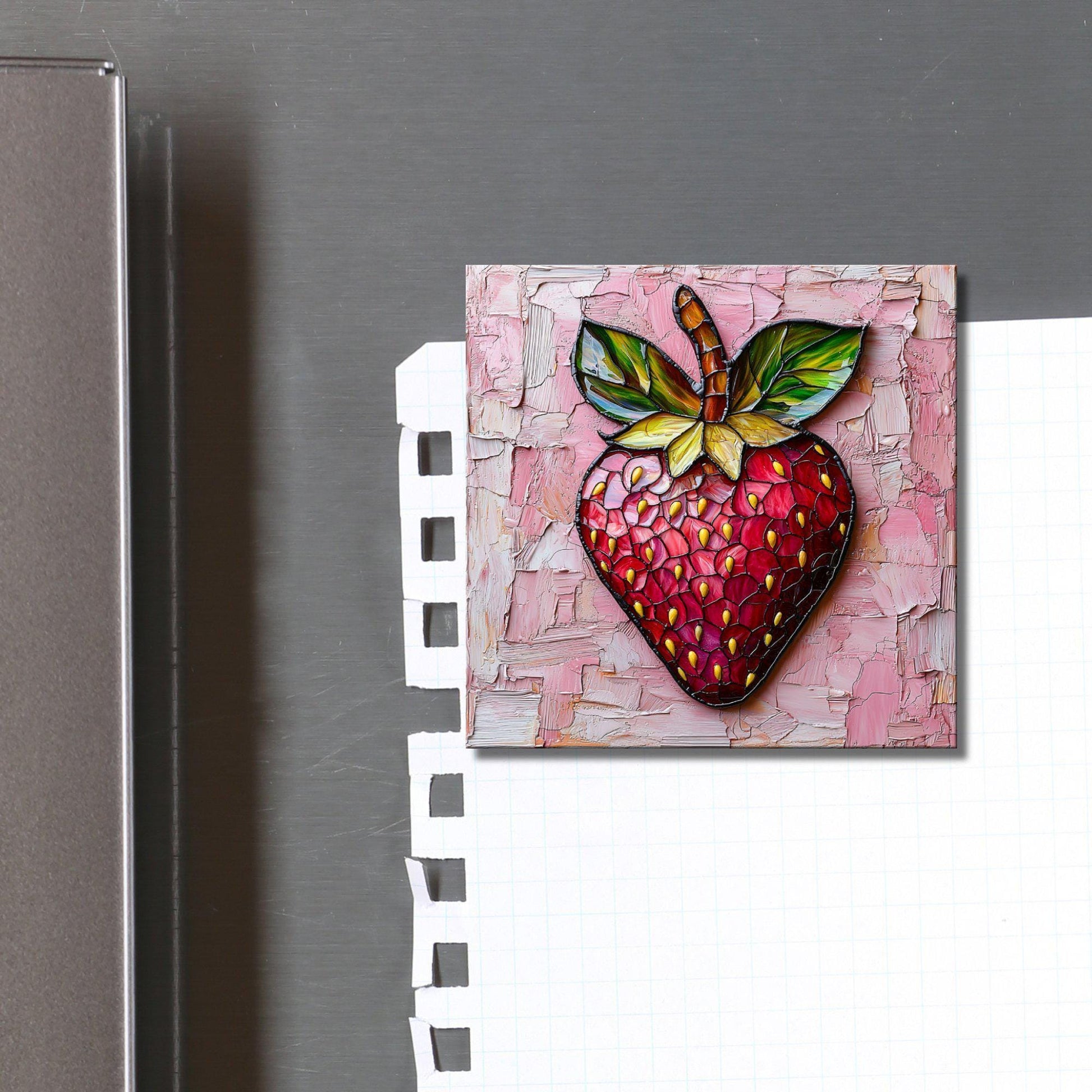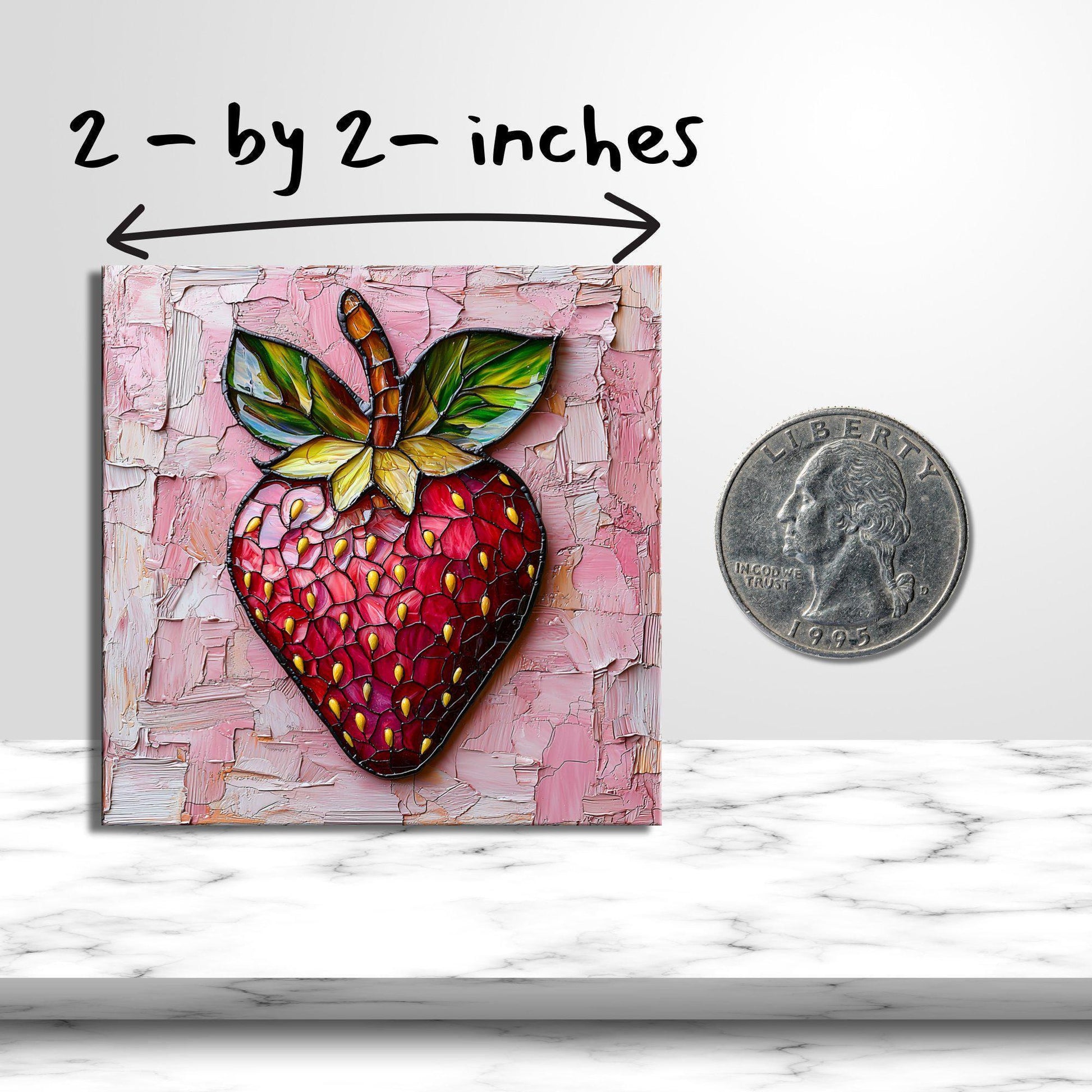 Pink Strawberry Fridge Magnet 2-inch Strong Refrigerator Magnet Kitchen Decor Dopamine Ceramic Tile Art Gift for Her fridgescaping