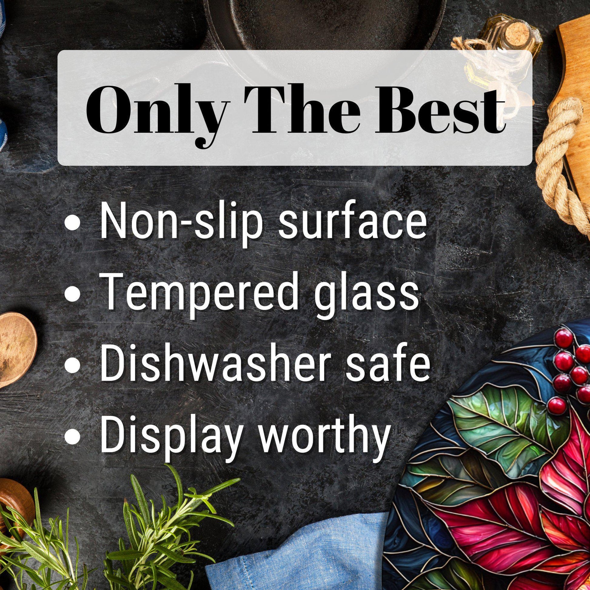 Elevate your kitchen with this functional and beautiful glass cutting board that seamlessly blends practicality with artistry.