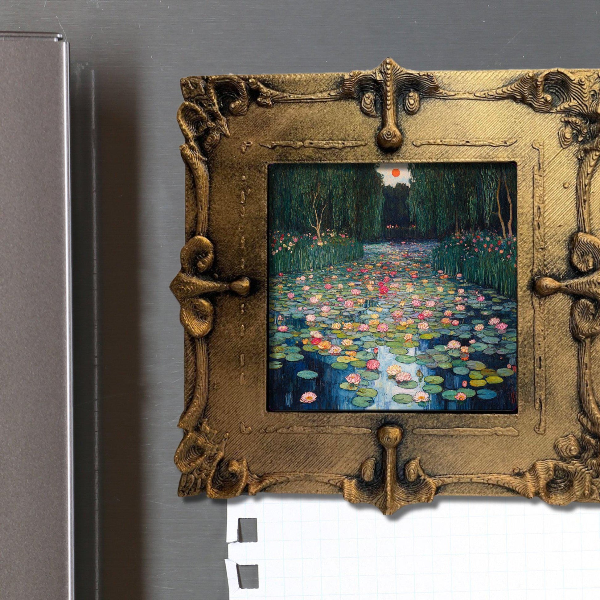 Pond with Lilies Gold Framed Refrigerator Magnet, Mini Art, Grand Millennial Style, Artful Kitchen Decor, Gift for Her fridgescaping