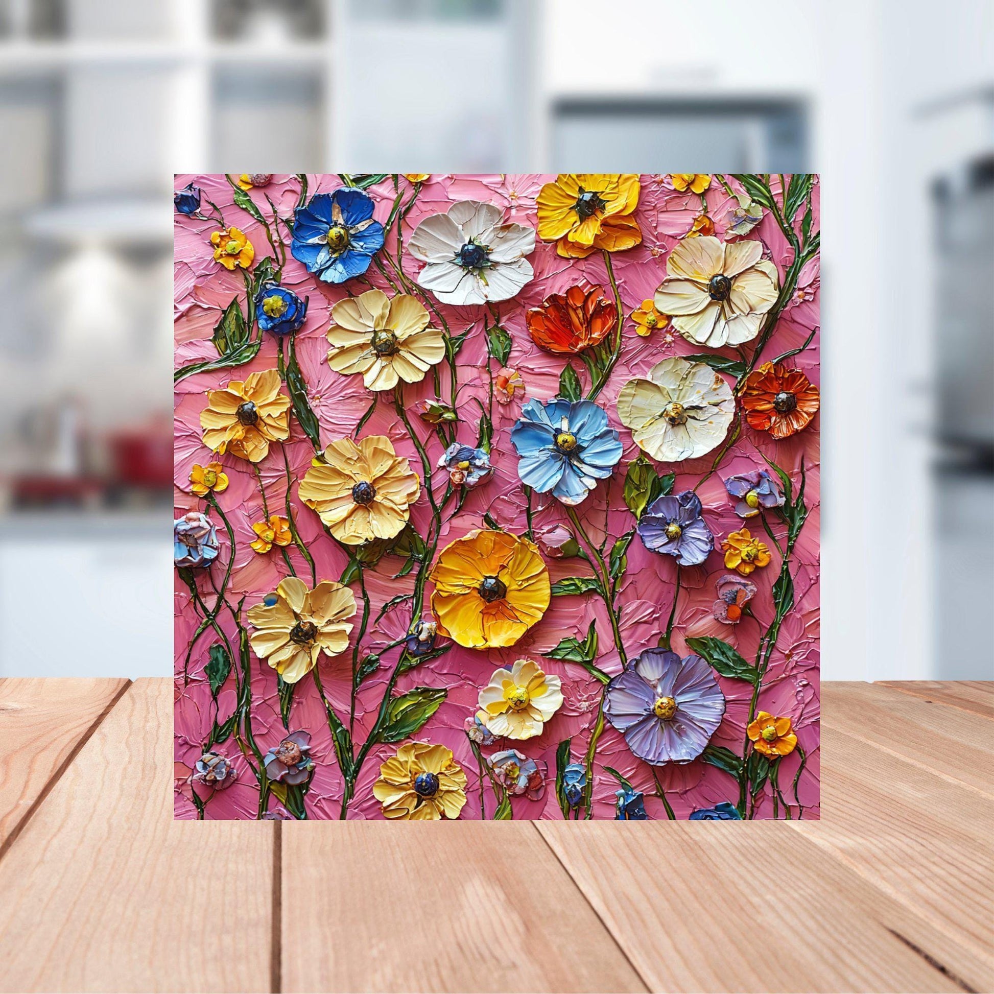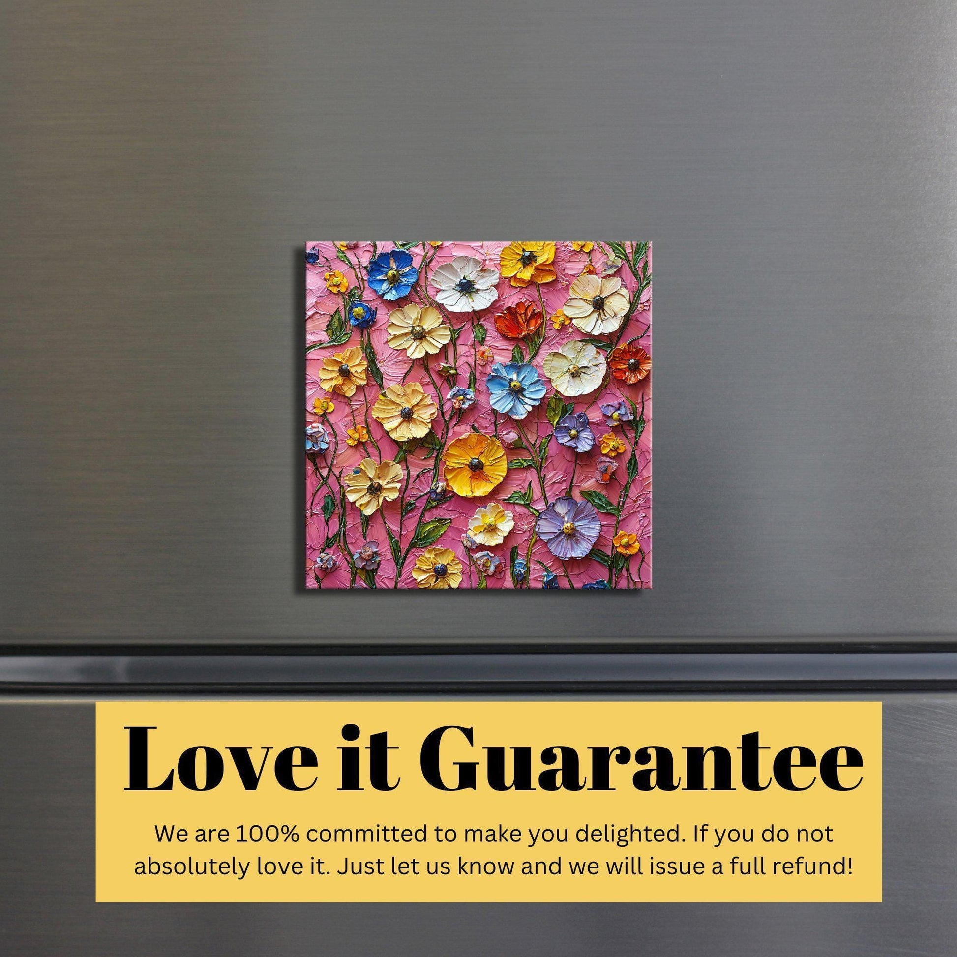 Pressed Flowers on Pink Fridge Magnet 2-inch Strong Refrigerator Magnet Kitchen Decor Dopamine Ceramic Tile Art Gift for Her fridgescaping