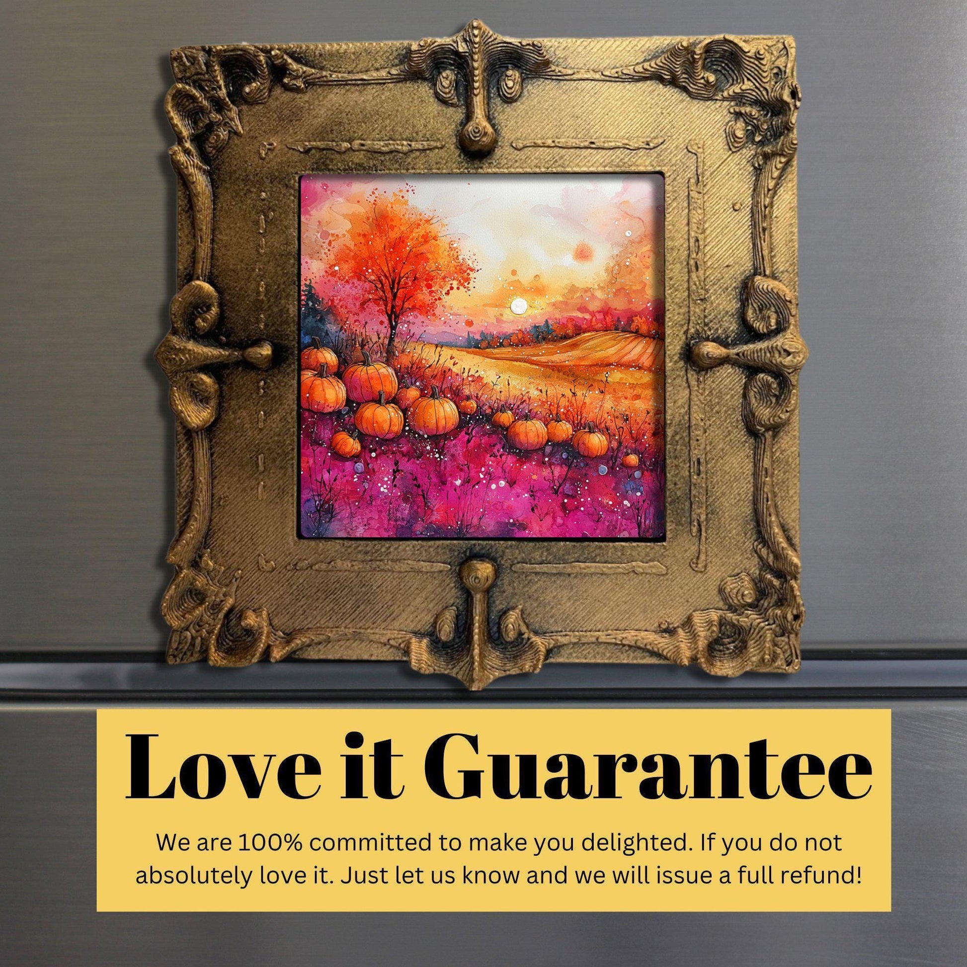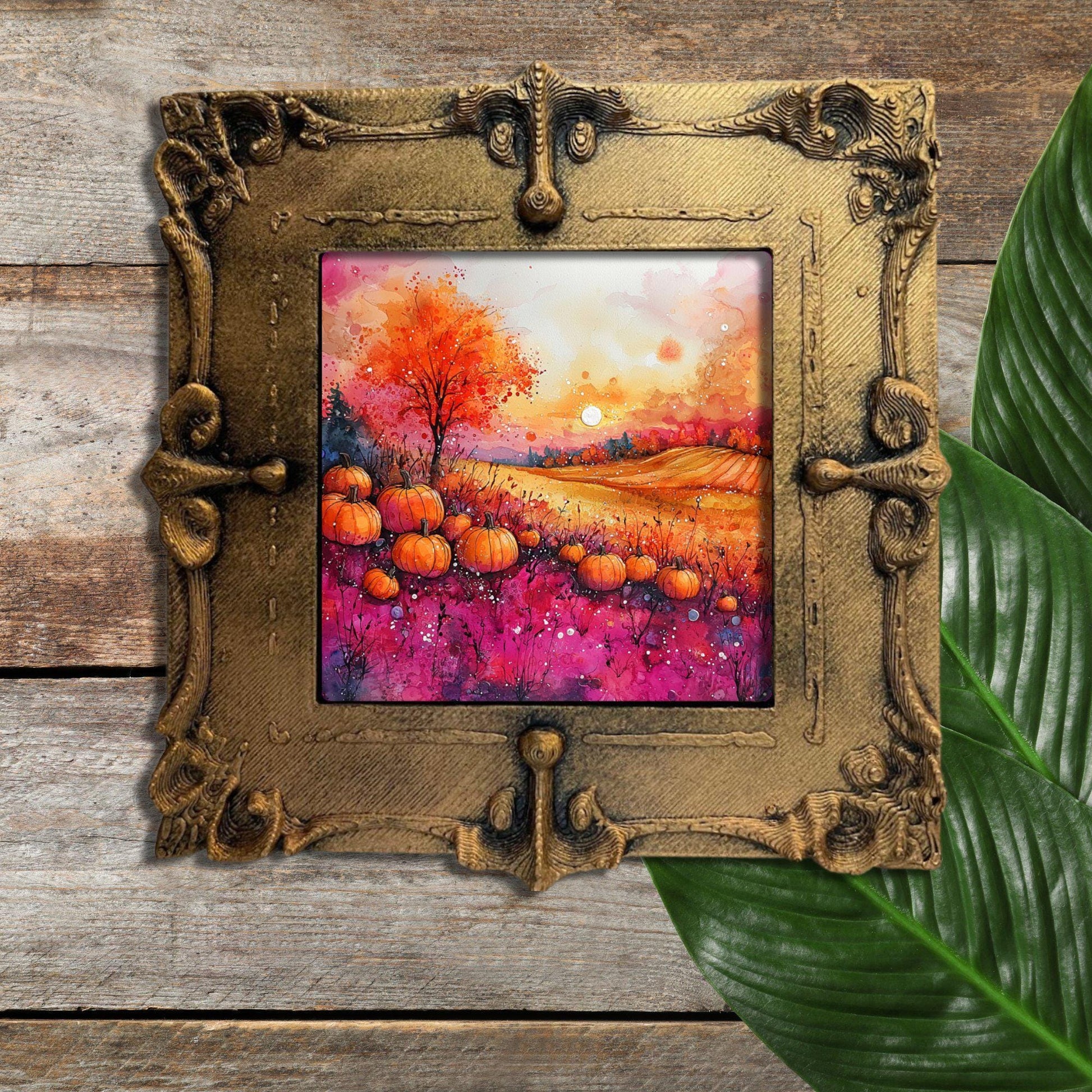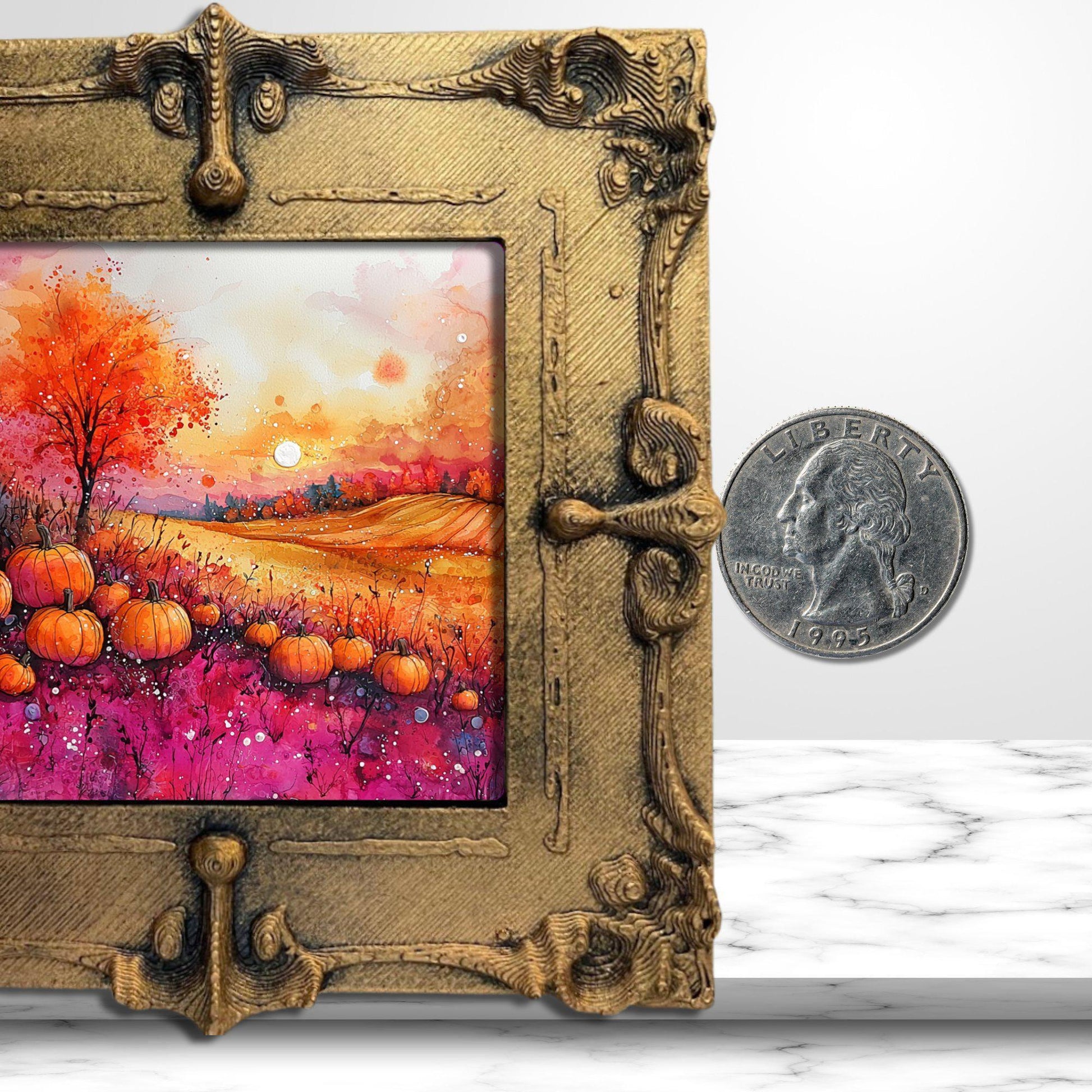 Pumpkins Pink and Orange Gold Framed Refrigerator Magnet, Mini Art, Grand Millennial Style, Artful Kitchen Decor, Gift for Her fridgescaping