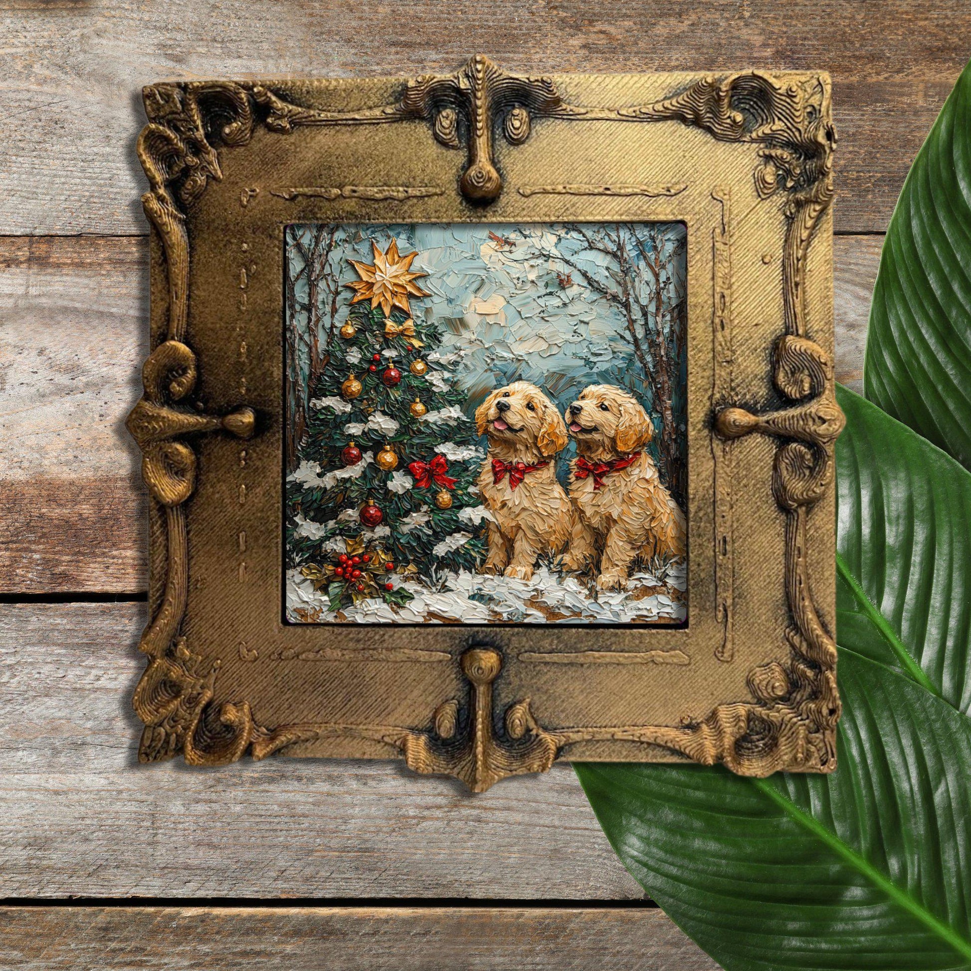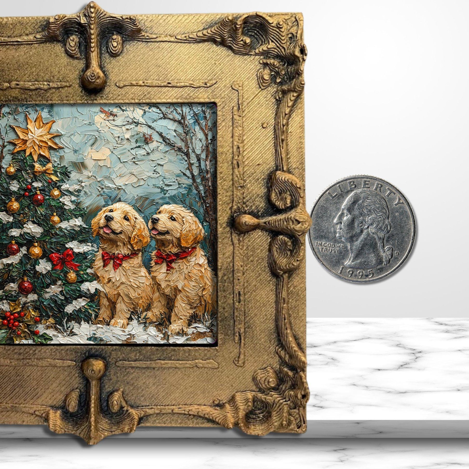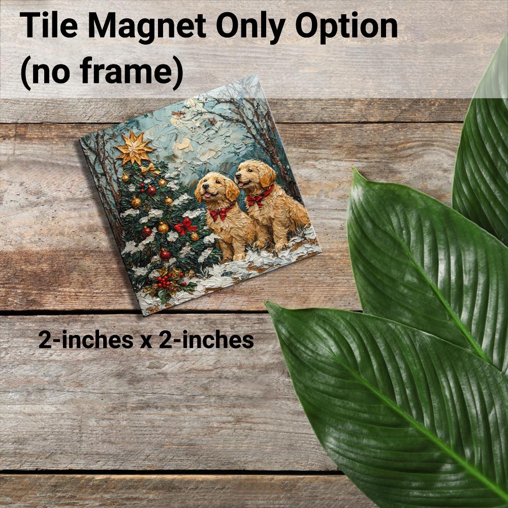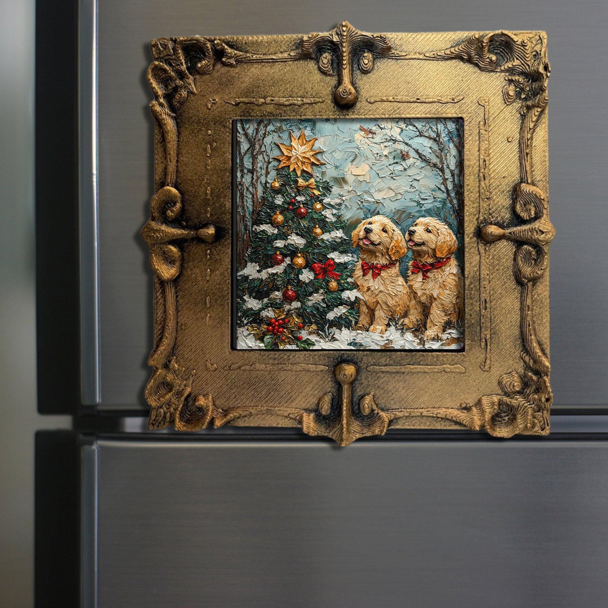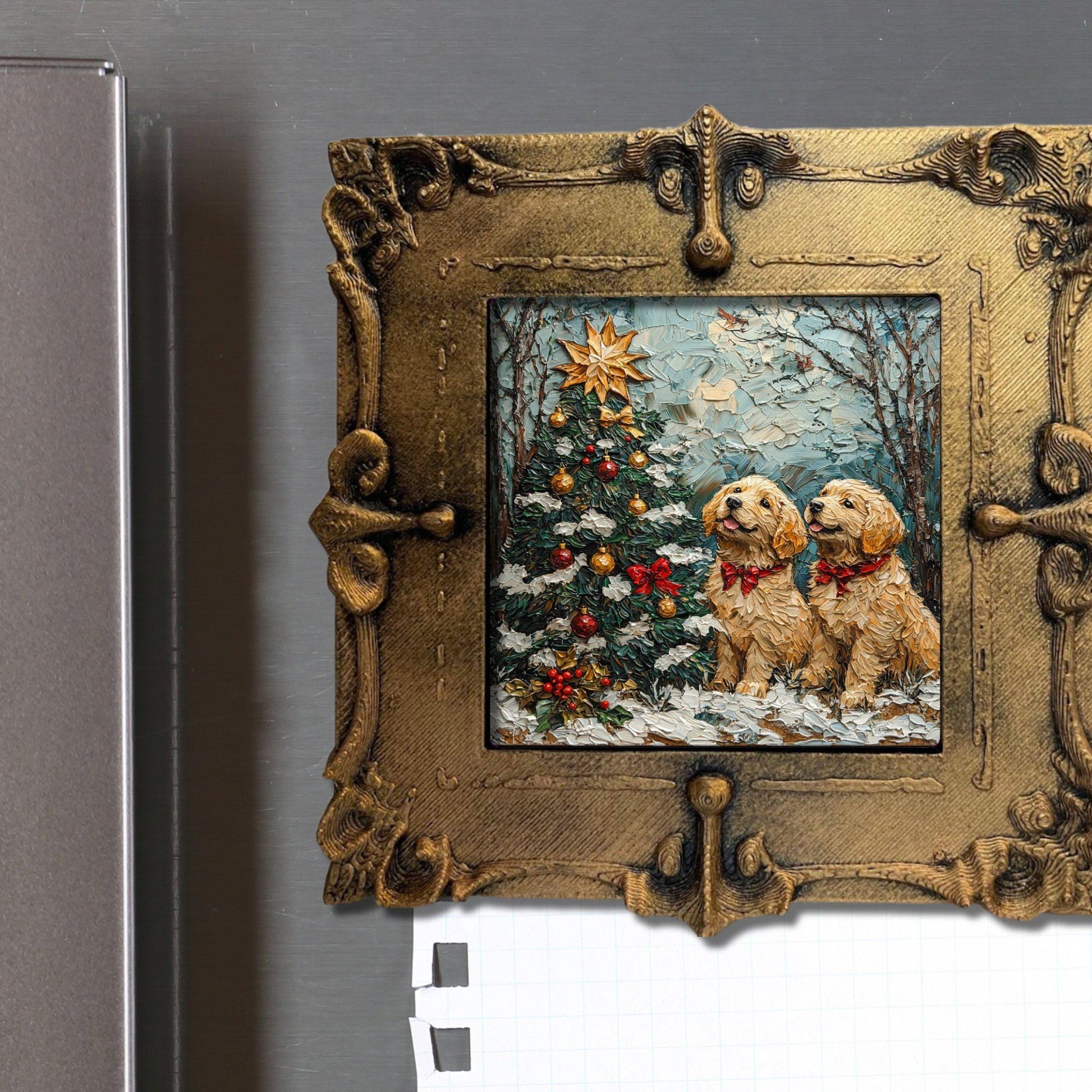 Puppy Christmas Tree Tiny Art Fridge Magnet Gold Framed Fridgescaping Art Picture Gallery Tiny Art Gift for Her Wife Mom