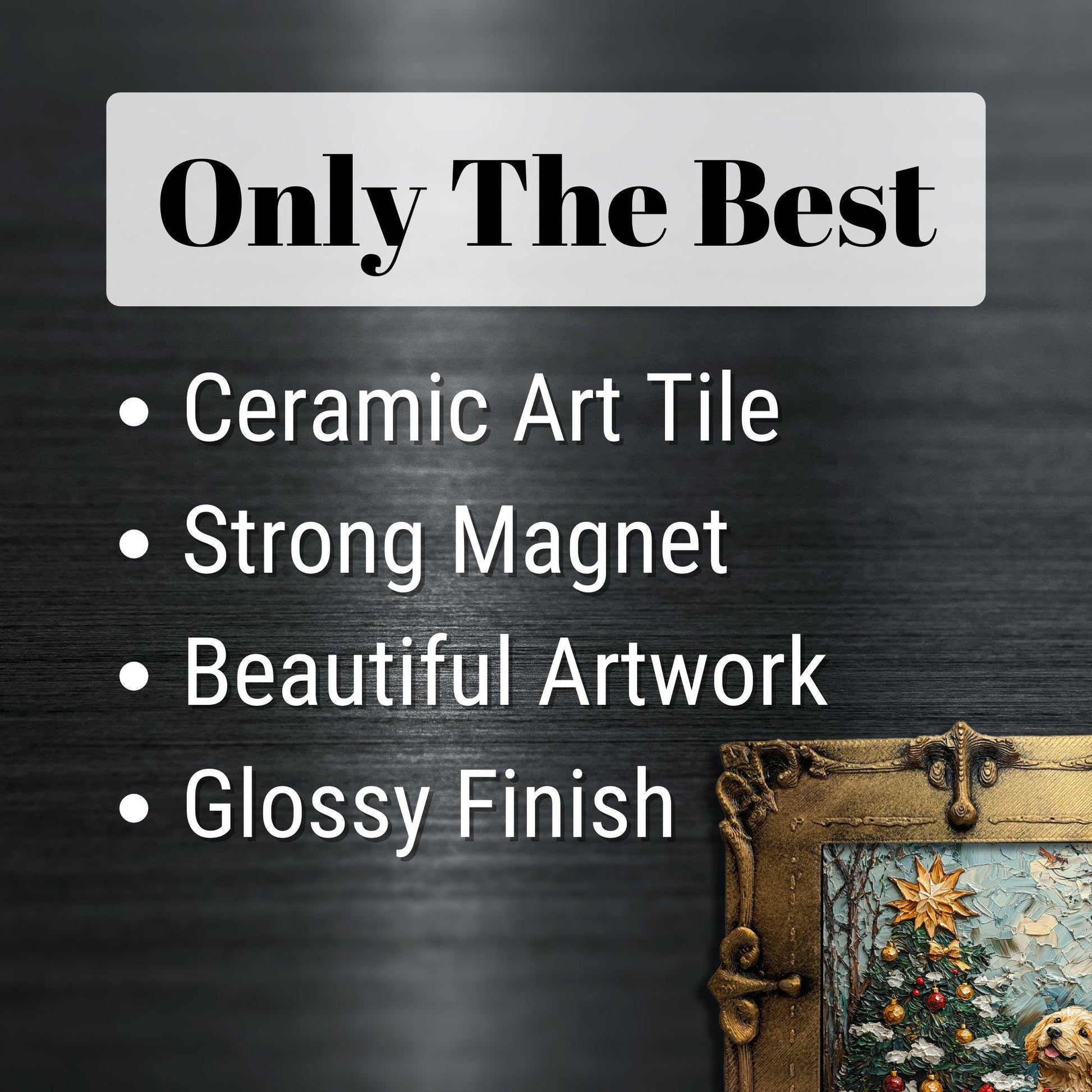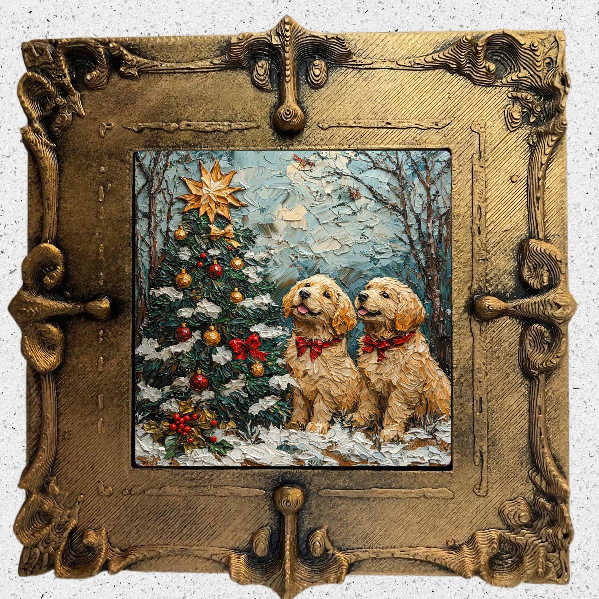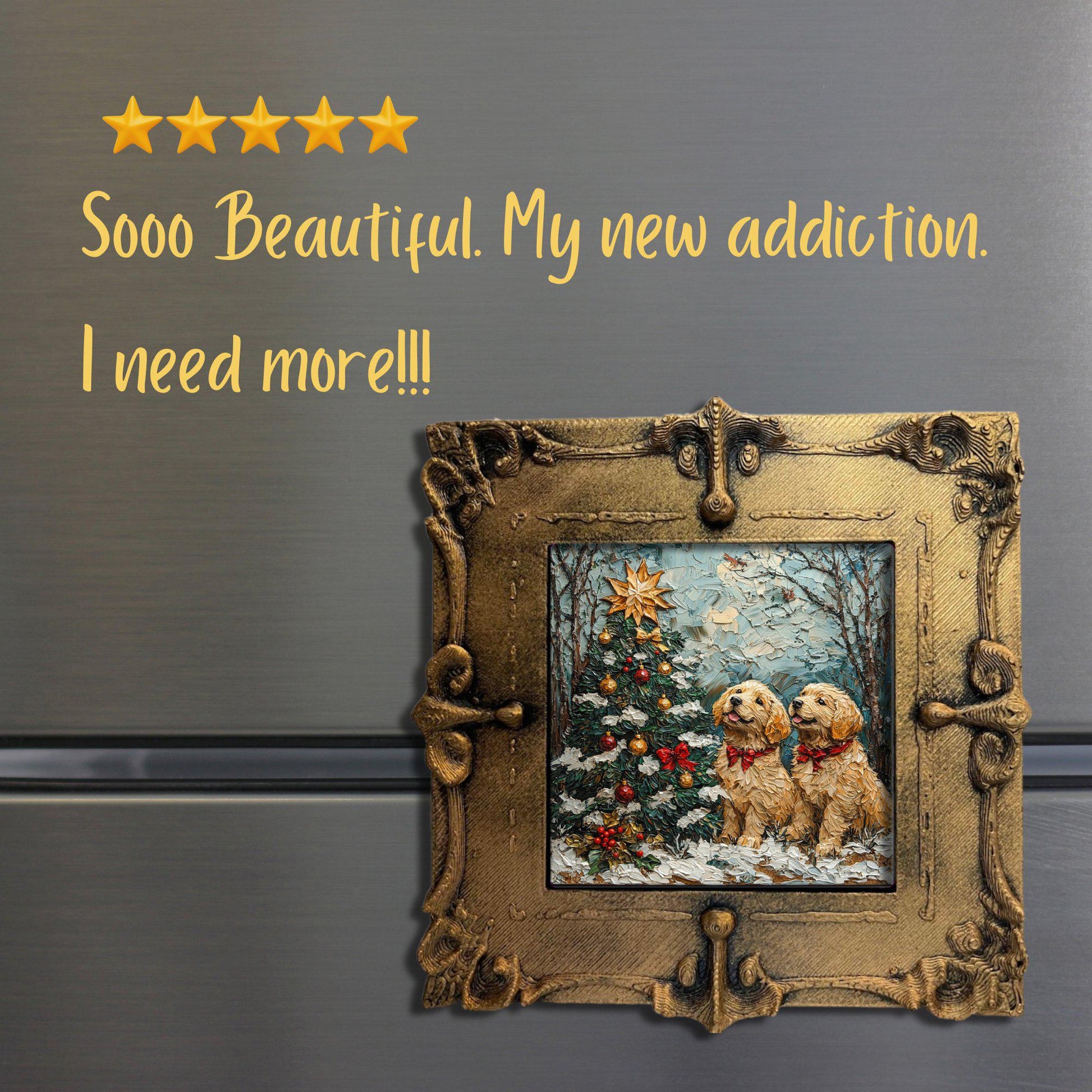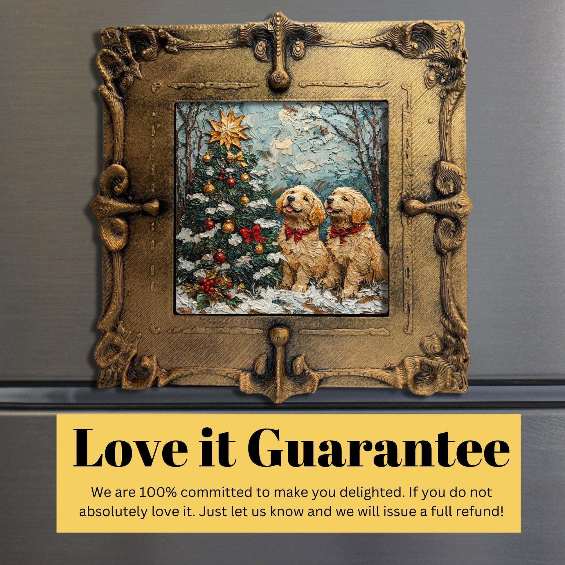 Puppy Christmas Tree Tiny Art Fridge Magnet Gold Framed Fridgescaping Art Picture Gallery Tiny Art Gift for Her Wife Mom