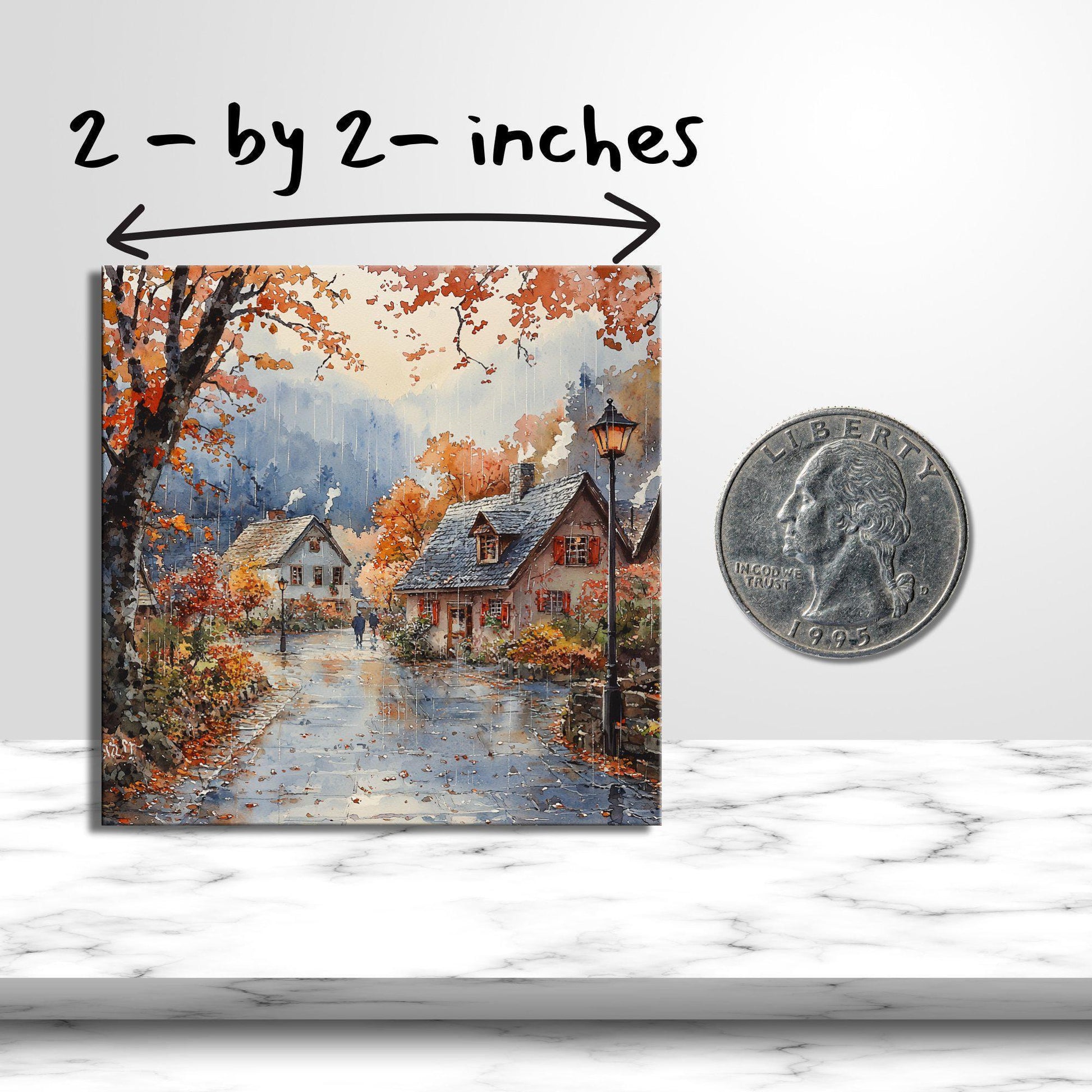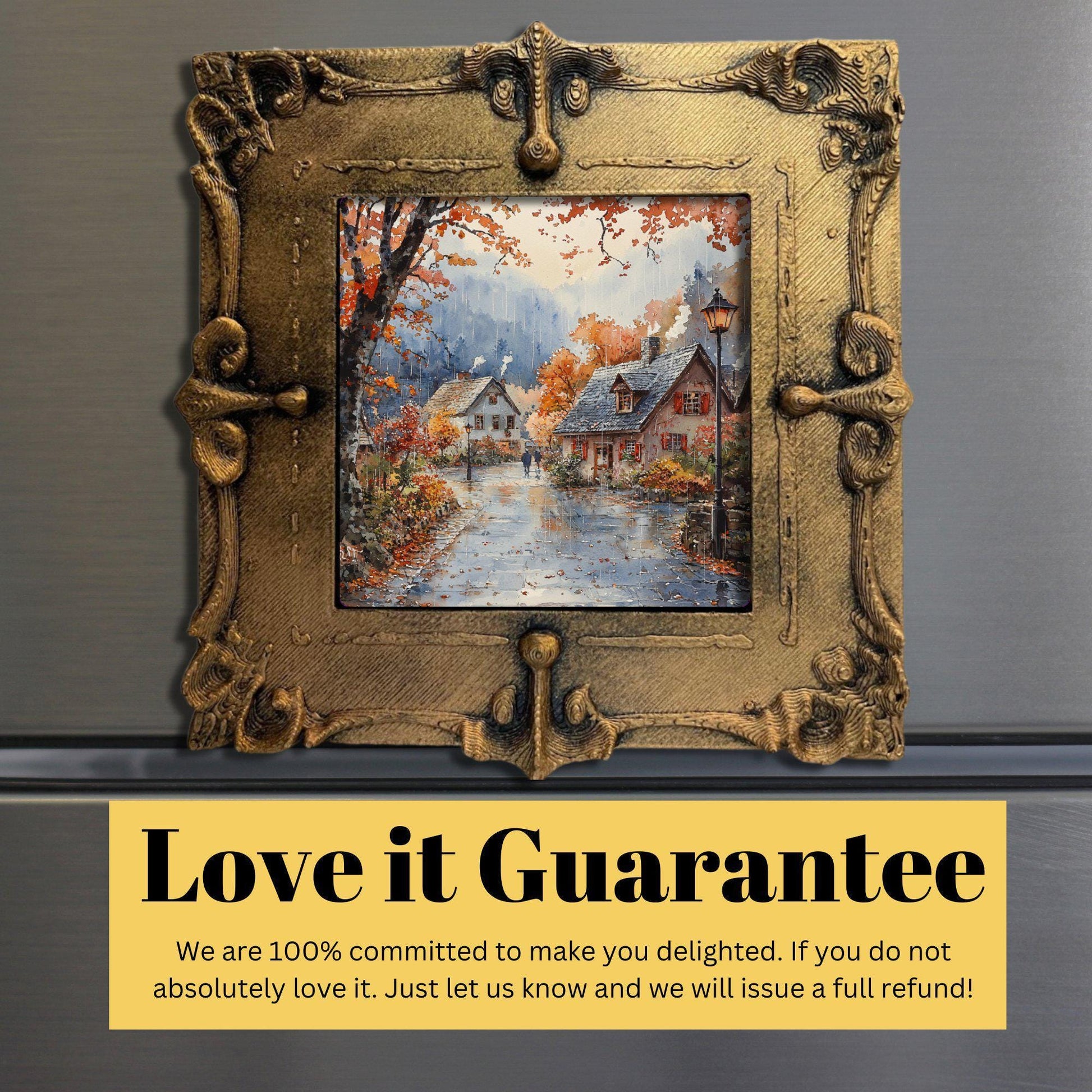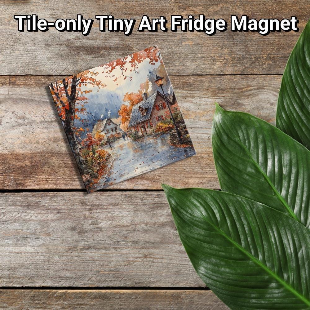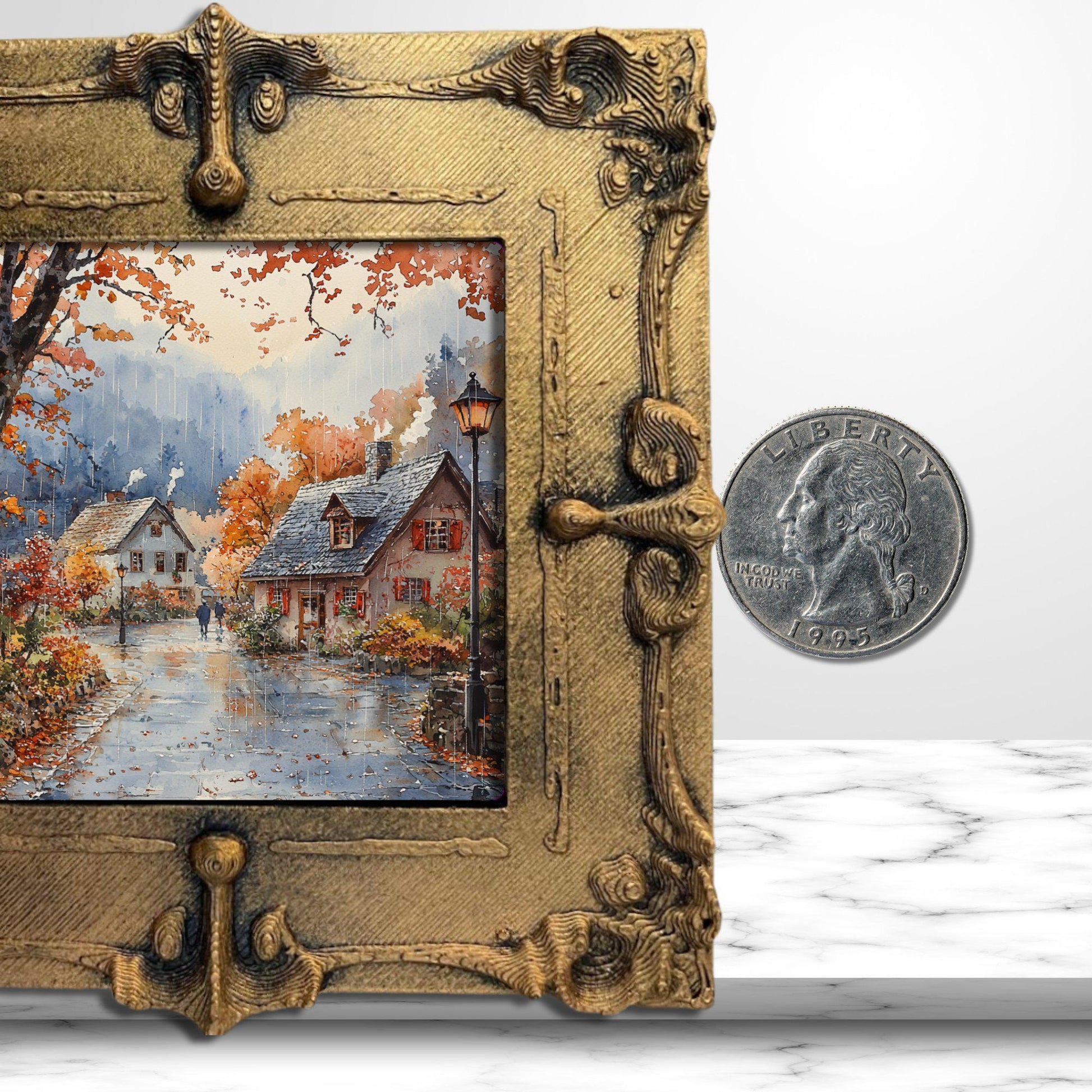 Rainy Autumn Village Gold Framed Refrigerator Magnet, Mini Art, Grand Millennial Style, Artful Kitchen Decor, Gift for Her fridgescaping