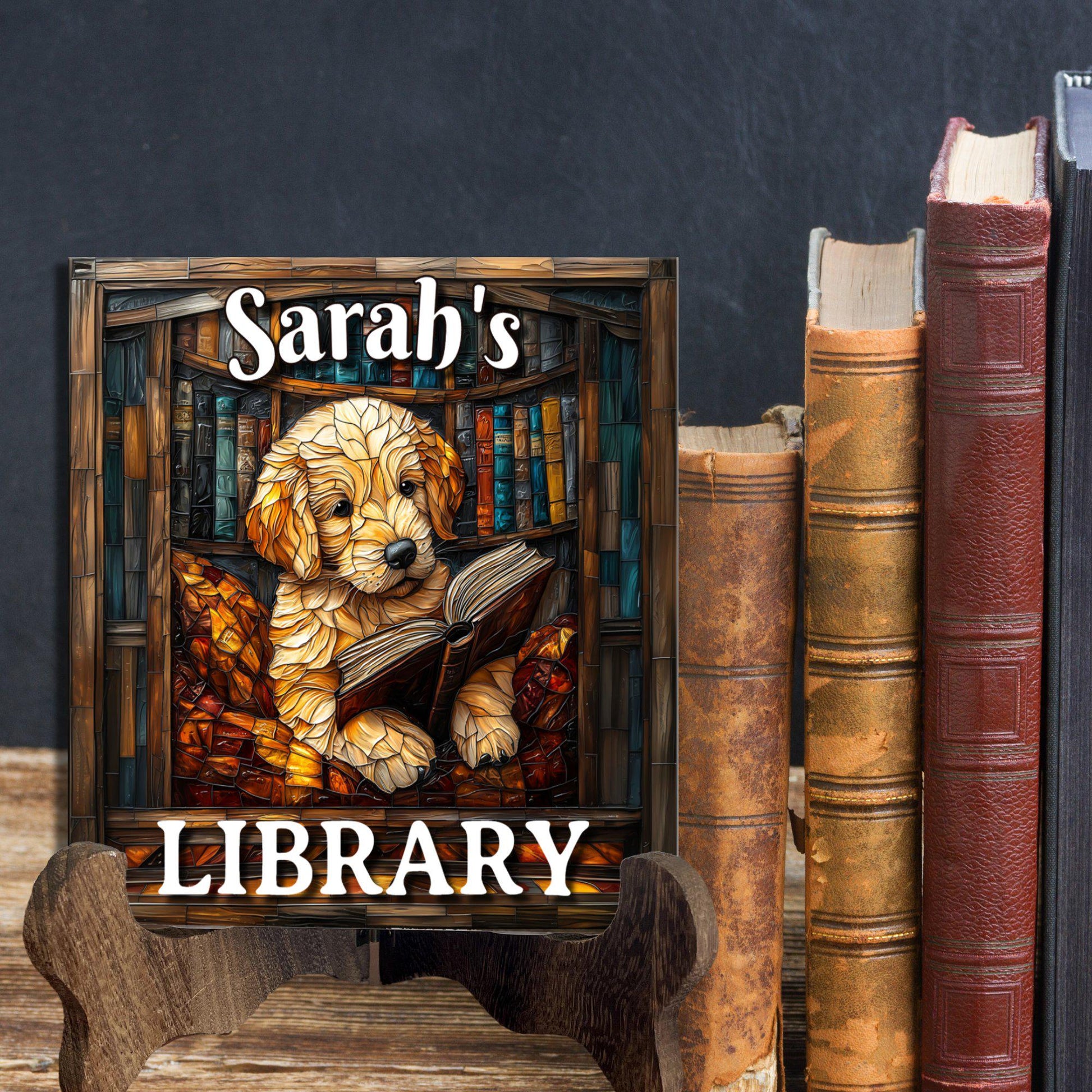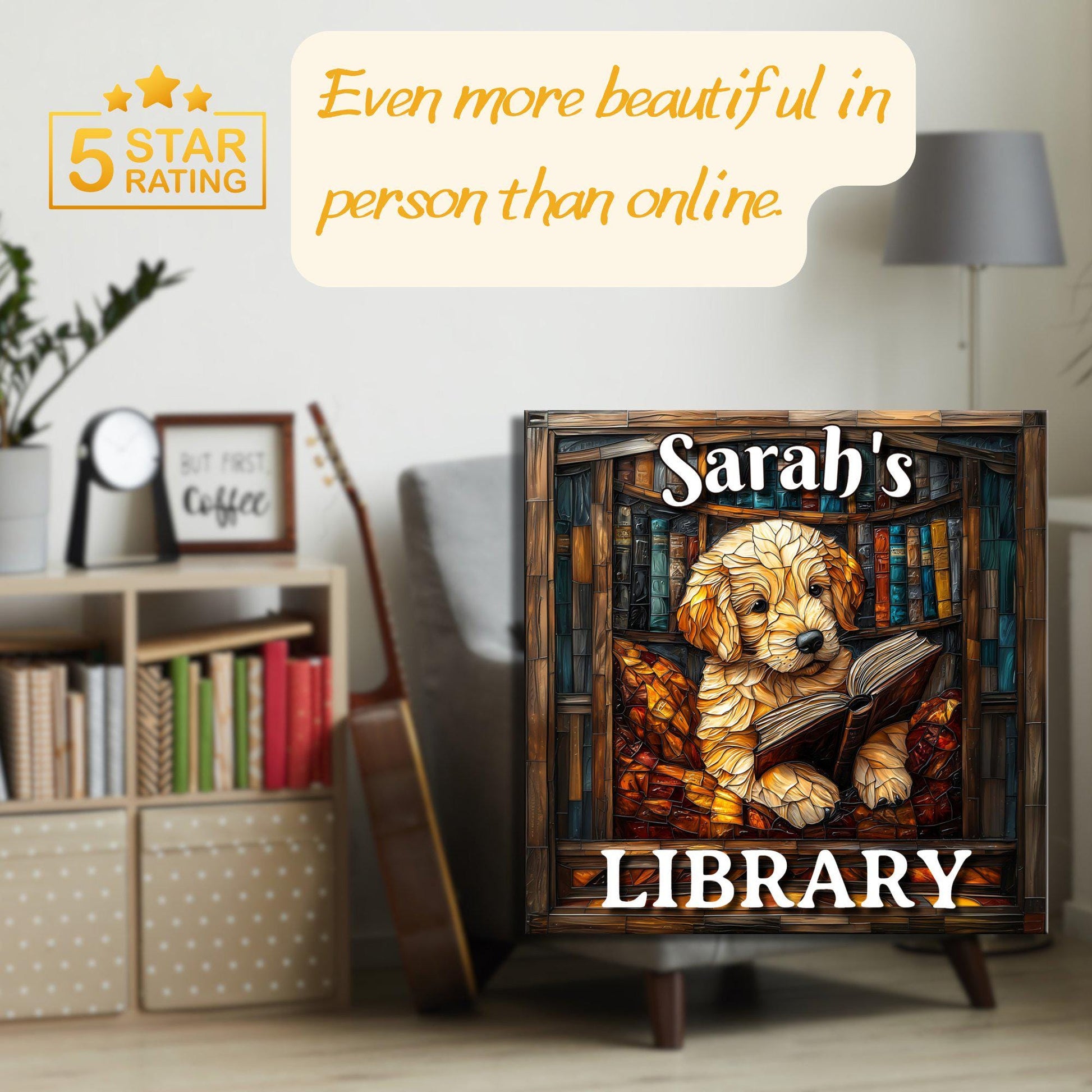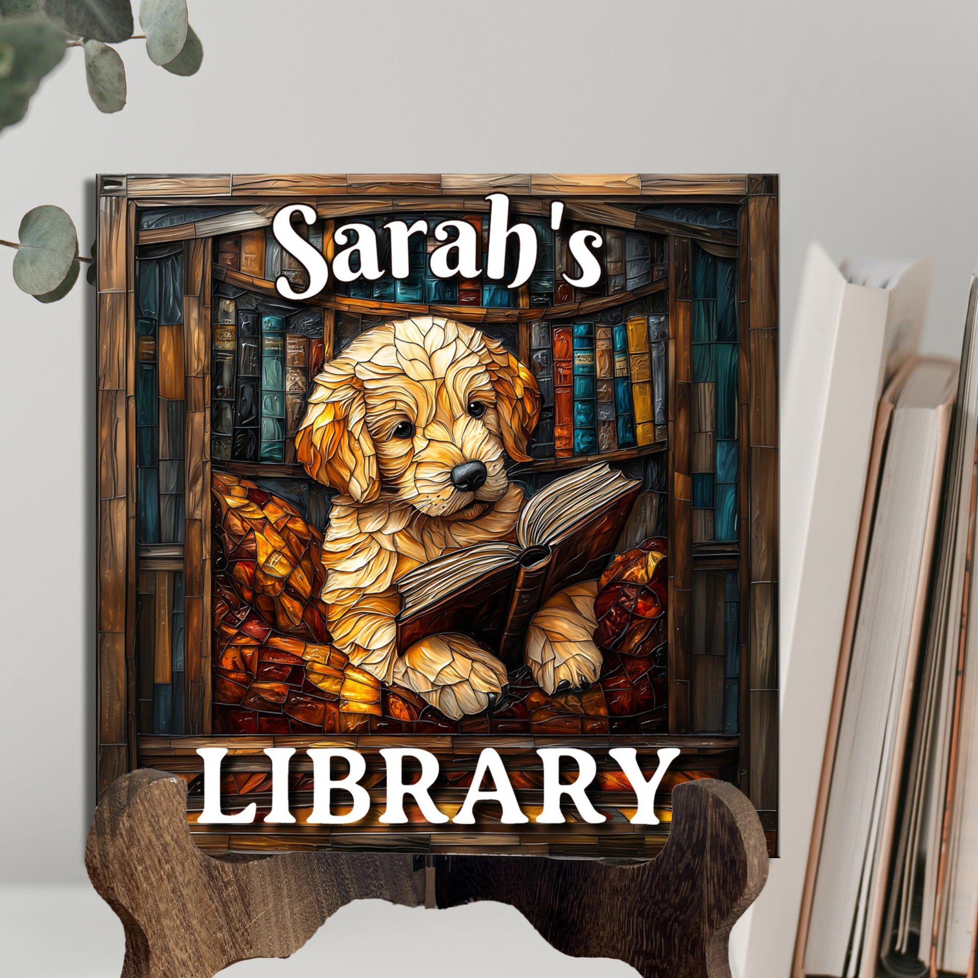 Retriever Reading Personalized Library Sign Book Lover Bookworm Biblio Gift Book Nook Shelf Decor Booktoker-Gift for Bookish