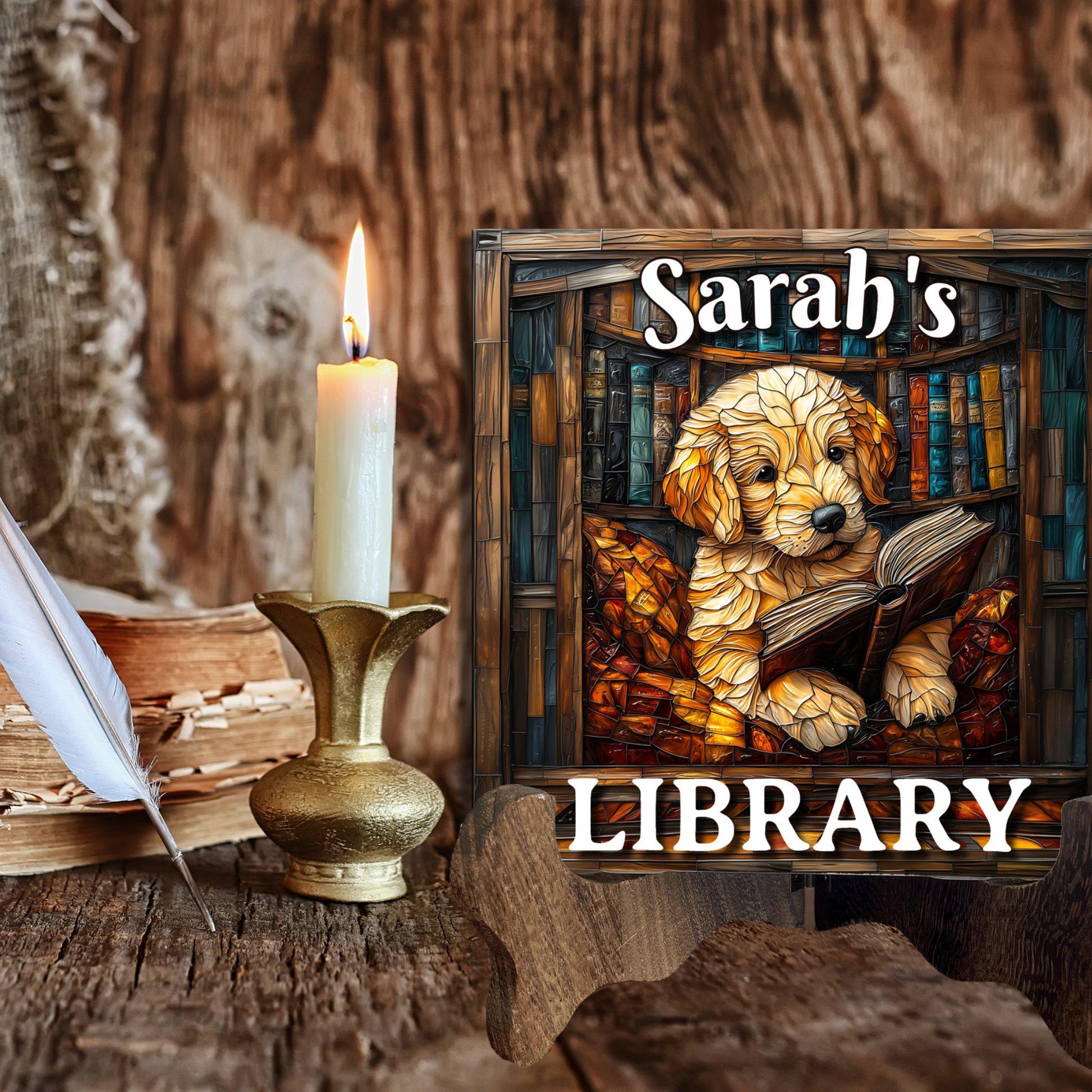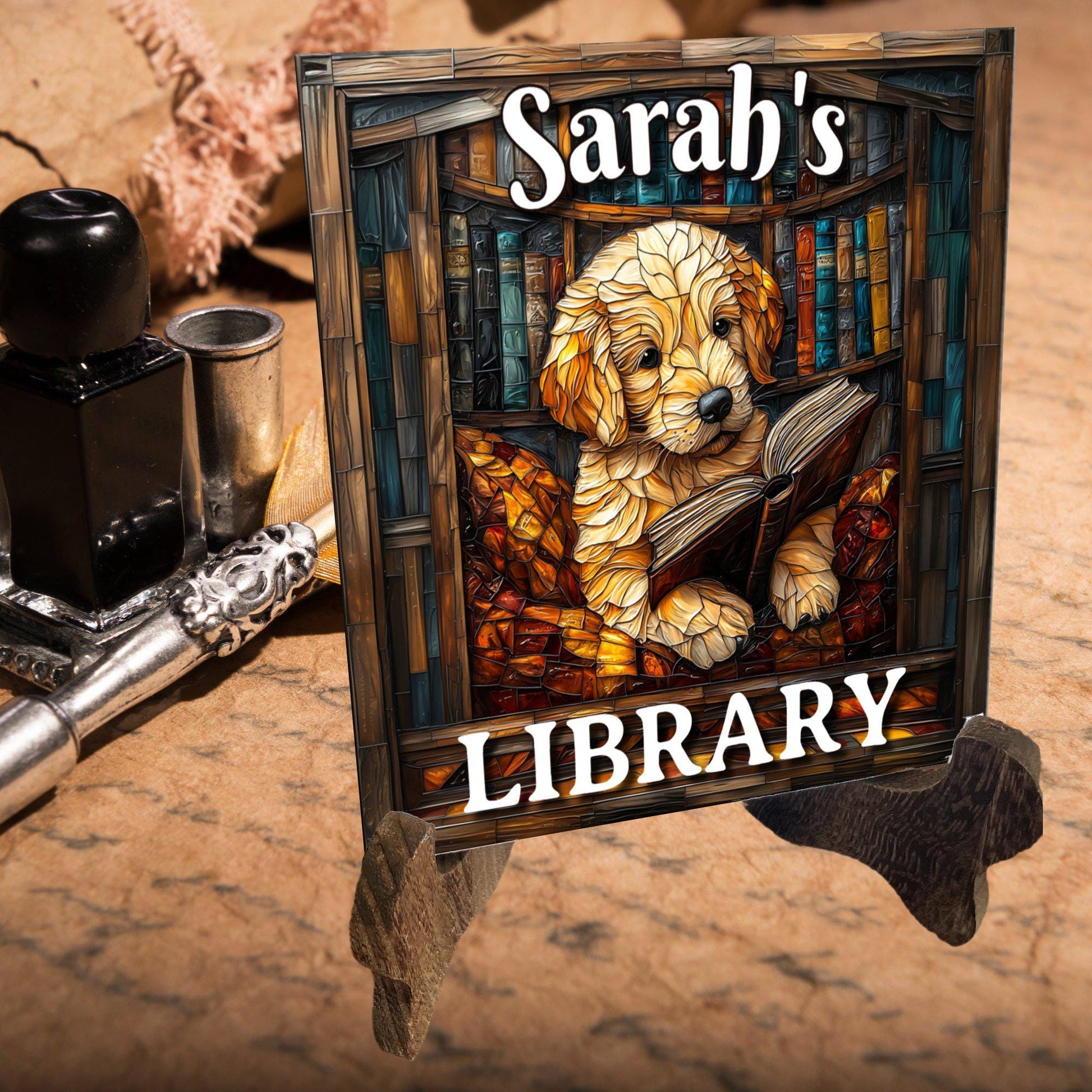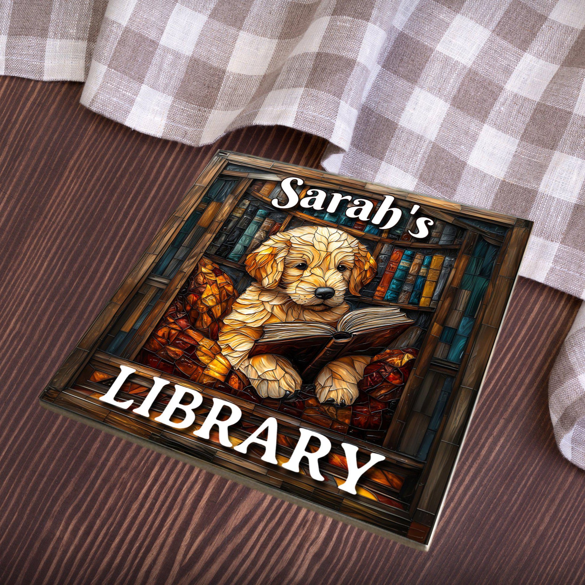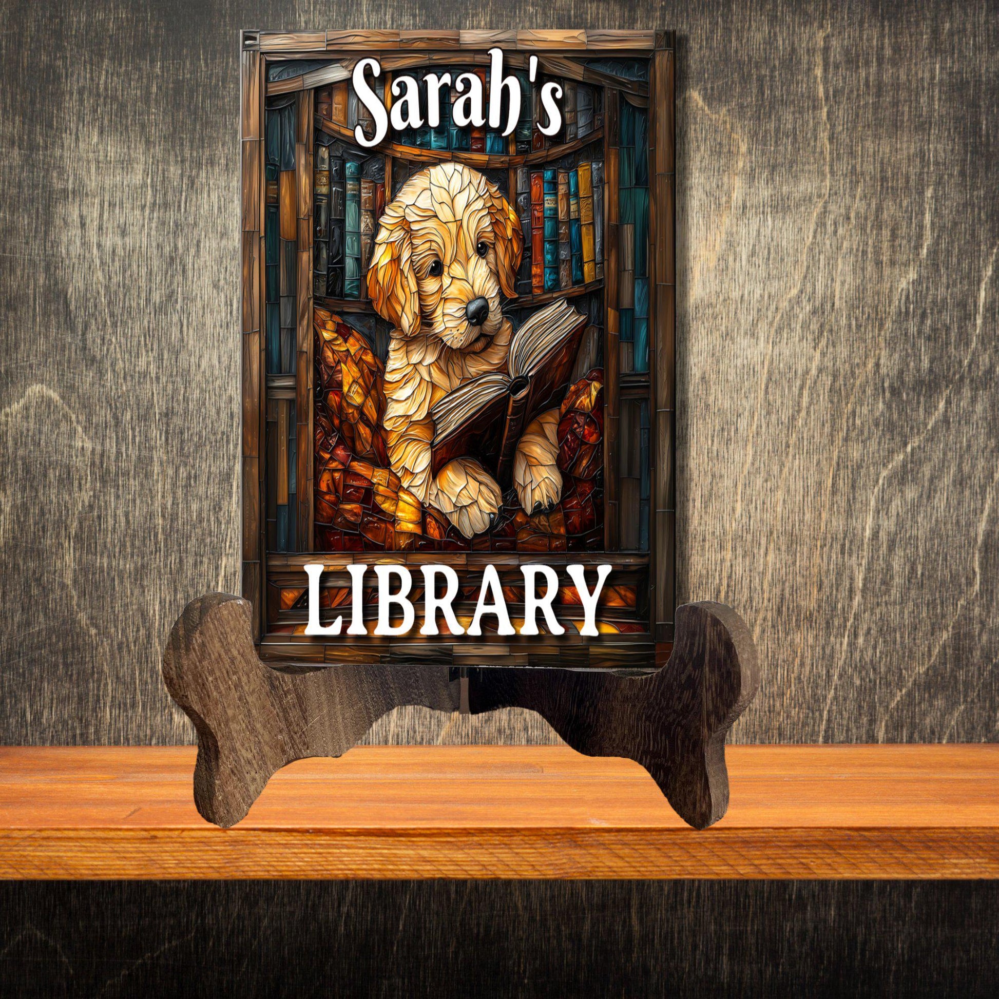 Retriever Reading Personalized Library Sign Book Lover Bookworm Biblio Gift Book Nook Shelf Decor Booktoker-Gift for Bookish