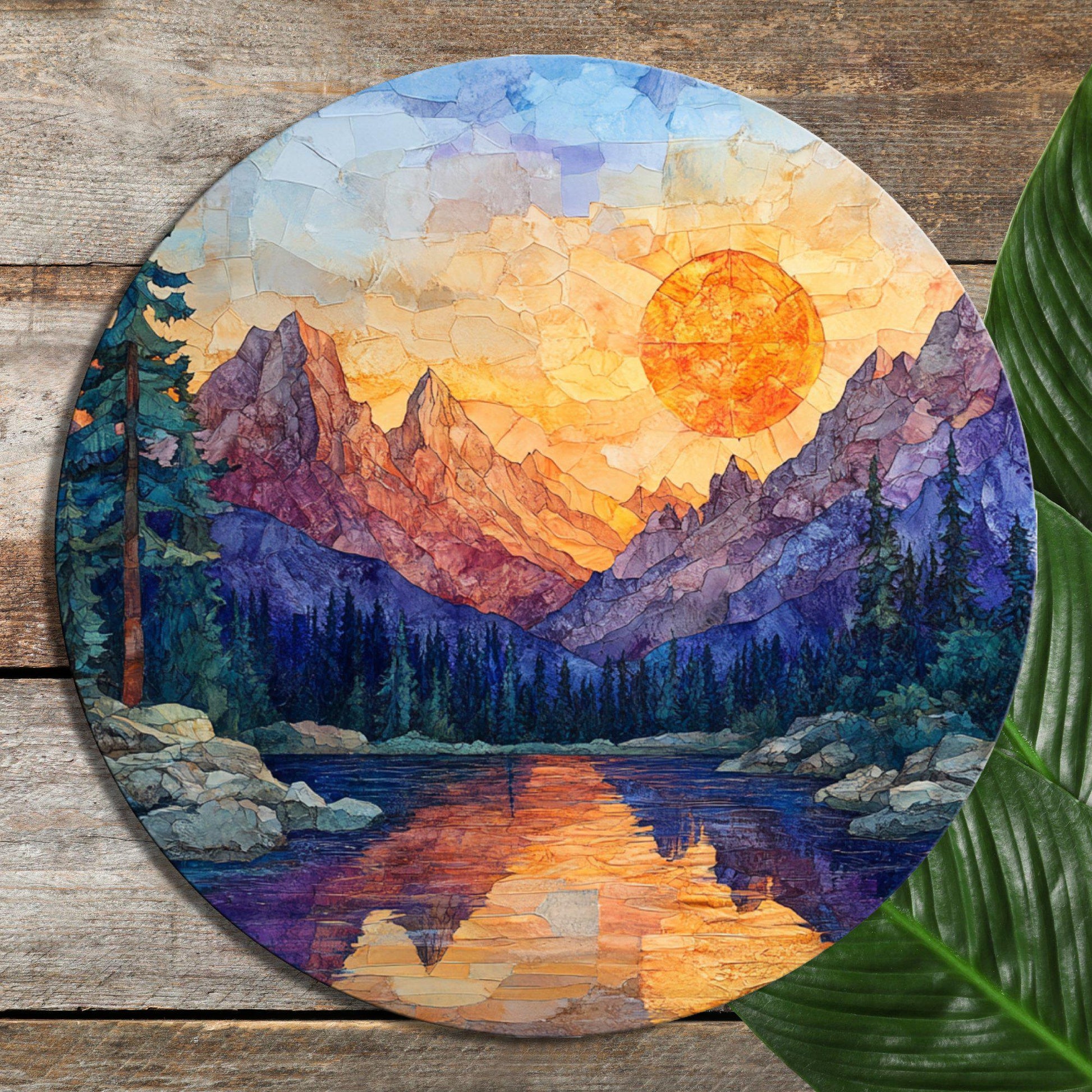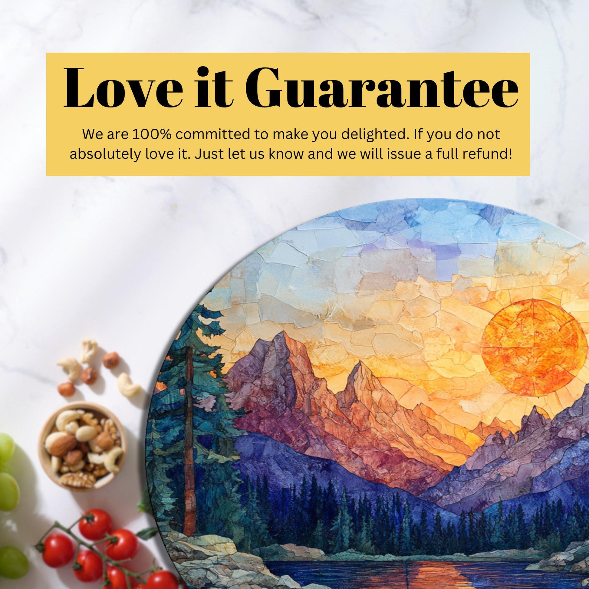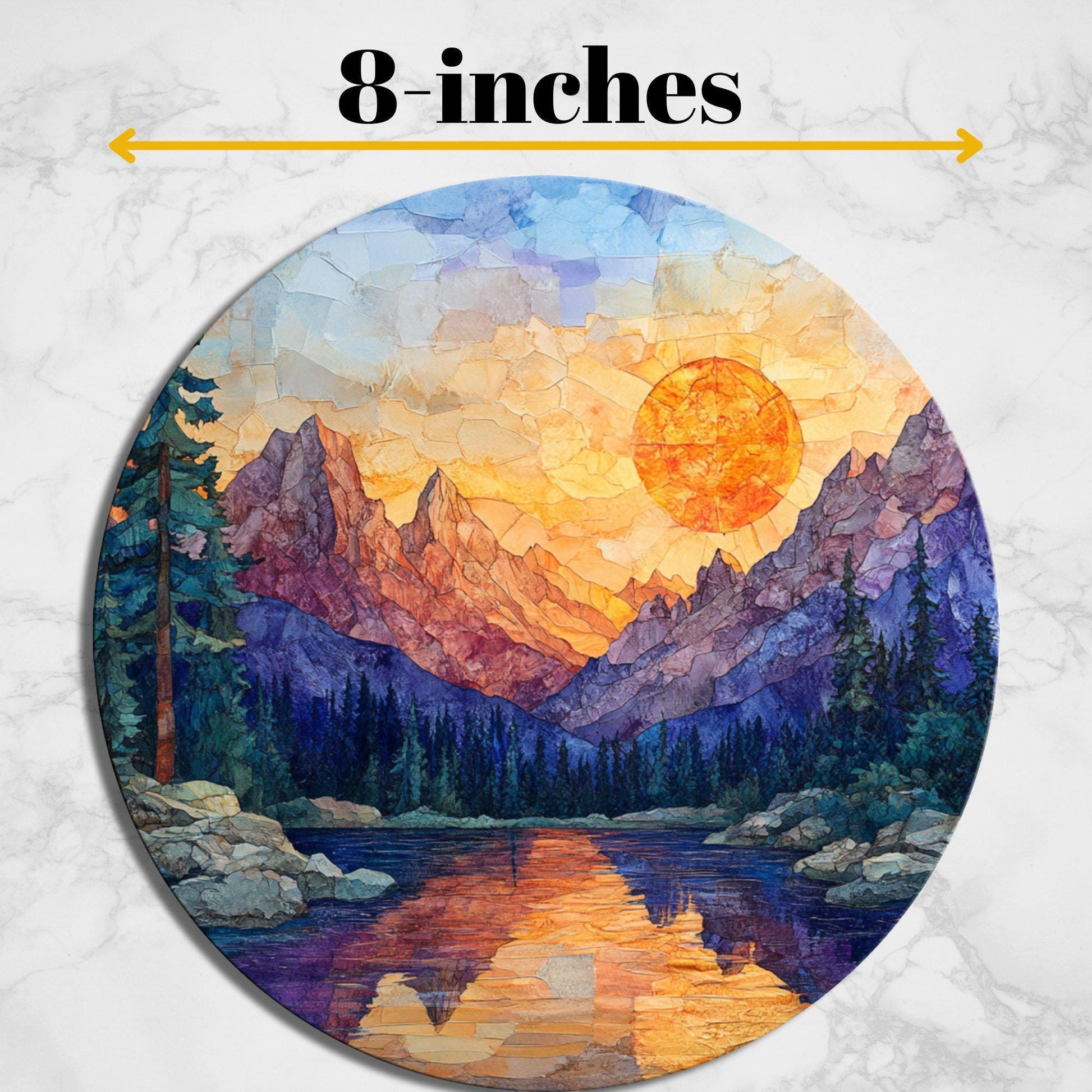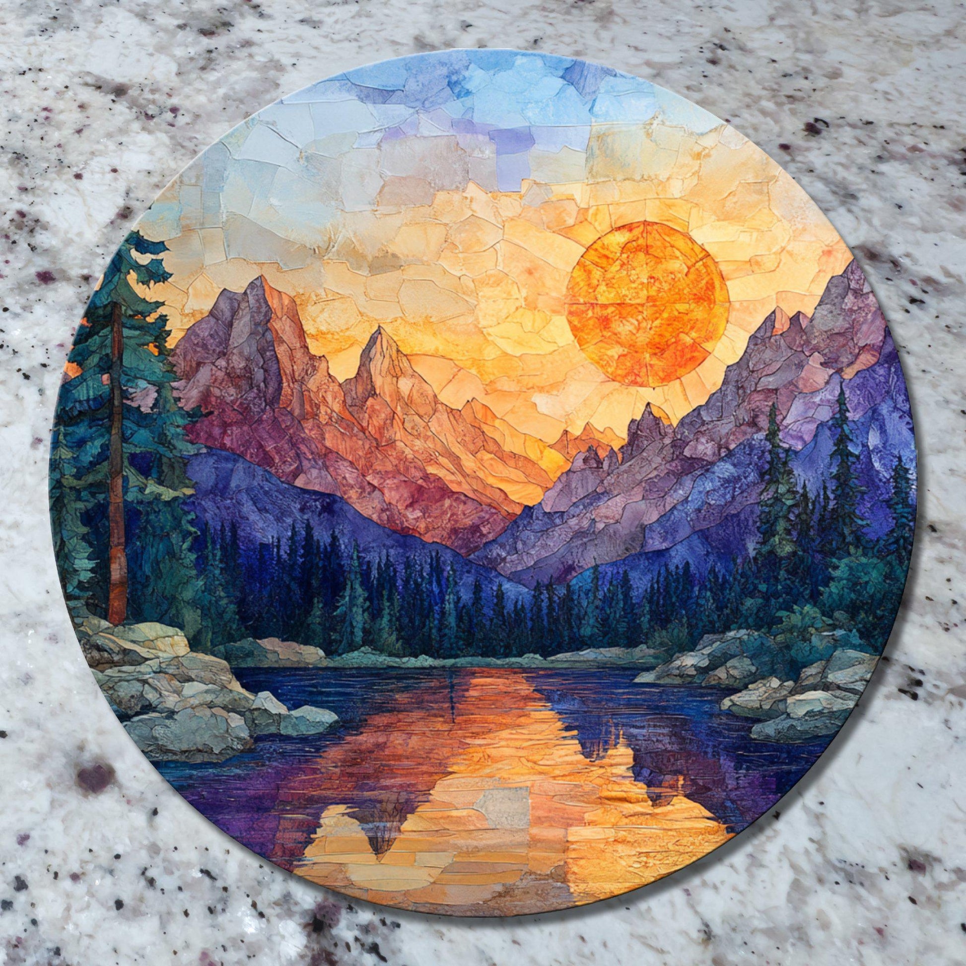 Rocky Mountain Sunrise Glass Cutting Board 8-inch Round Trivet Charcuterie Board Gift for Her Mom Kitchen Decor
