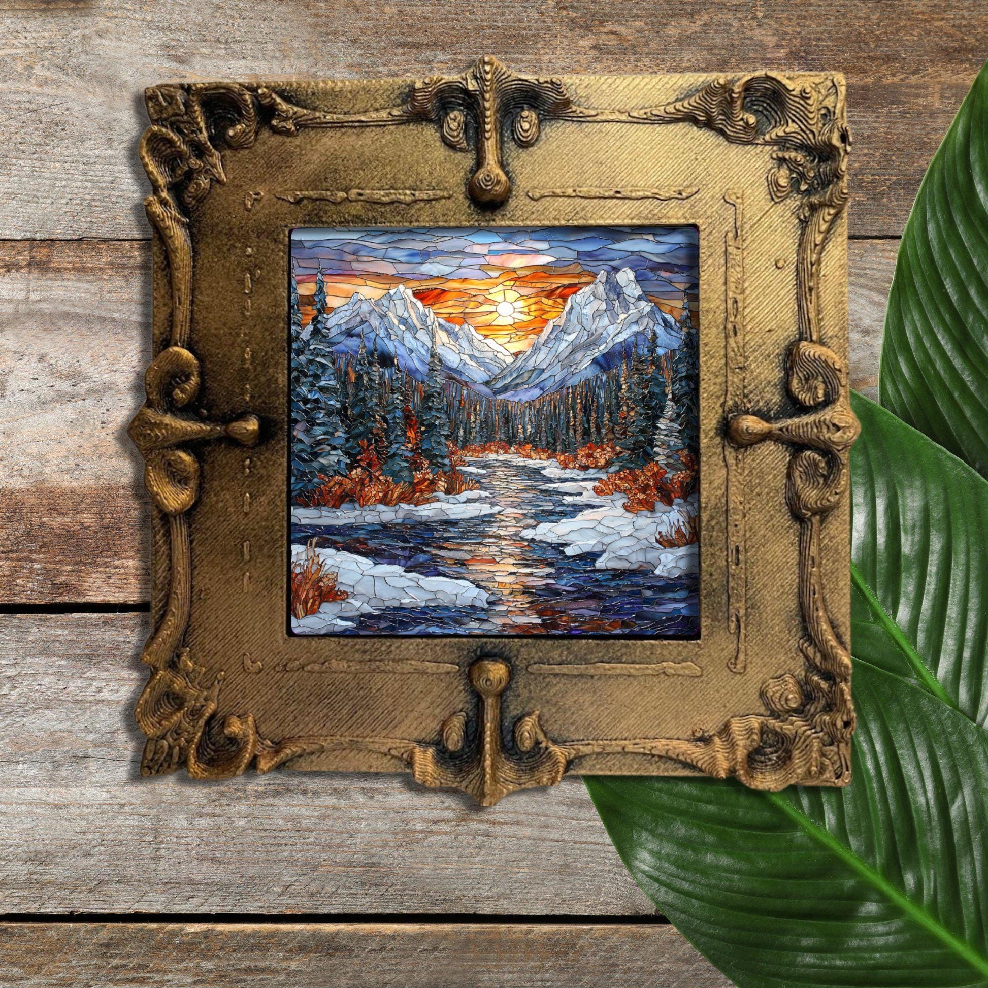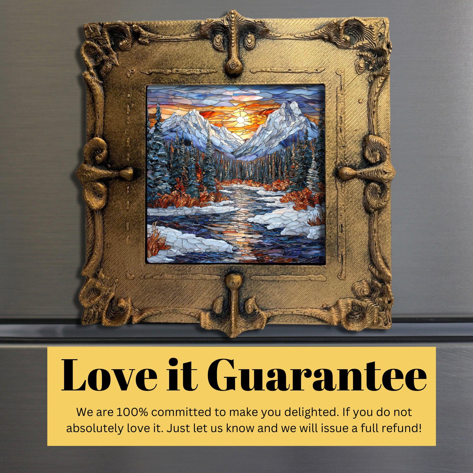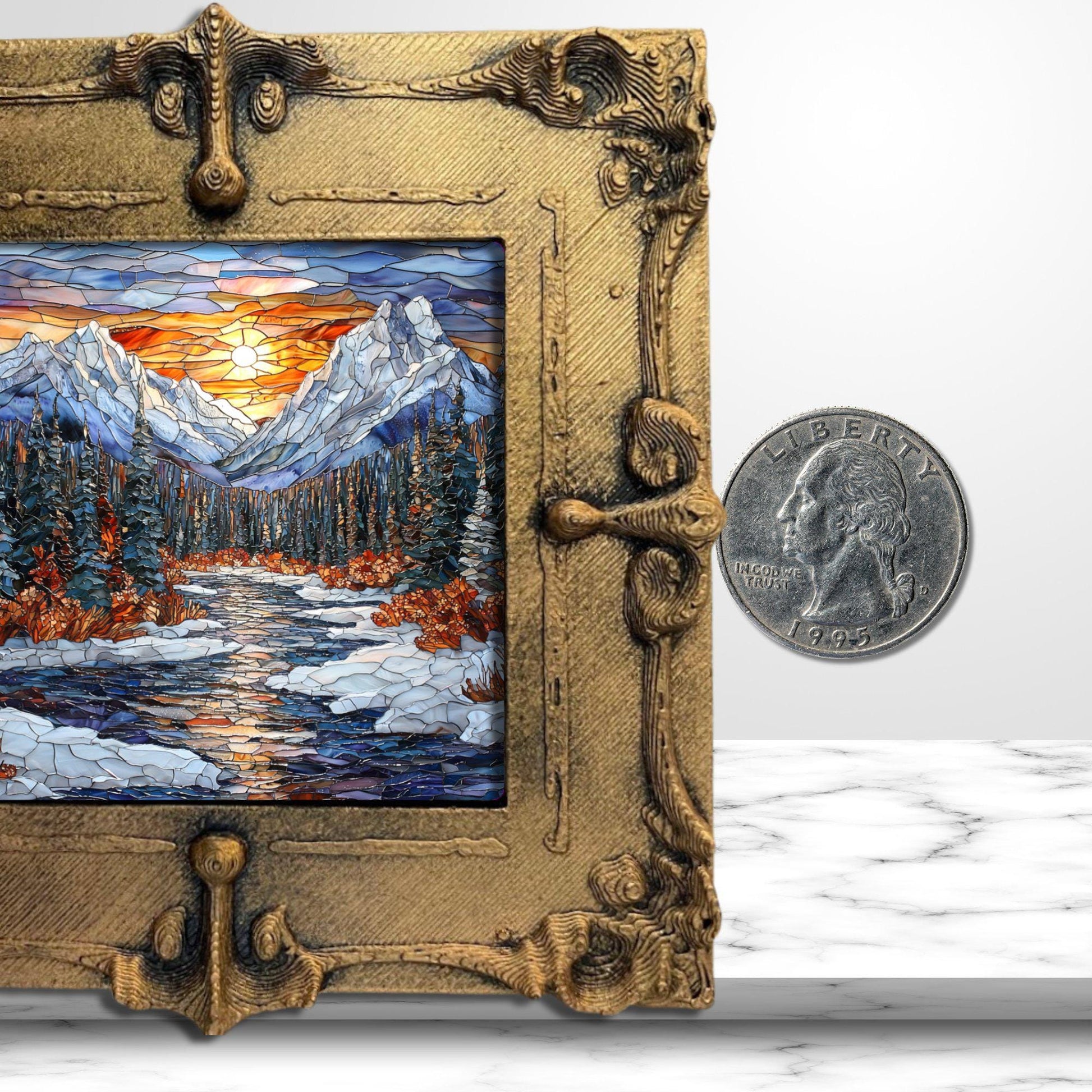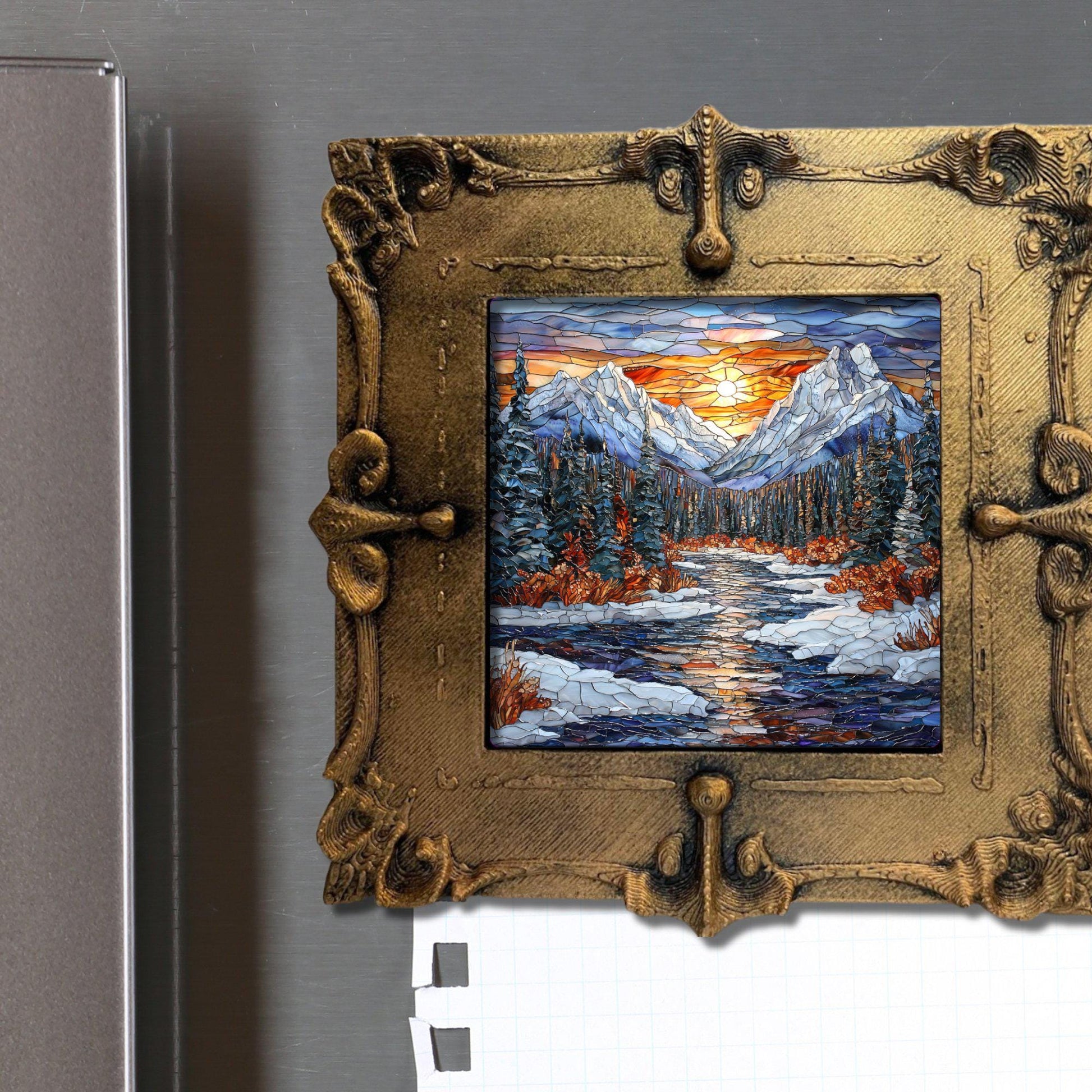 Rocky Mountain Winter Tiny Art Fridge Magnet Gold Framed Fridgescaping Art Picture Gallery Tiny Art Gift for Her Wife Mom