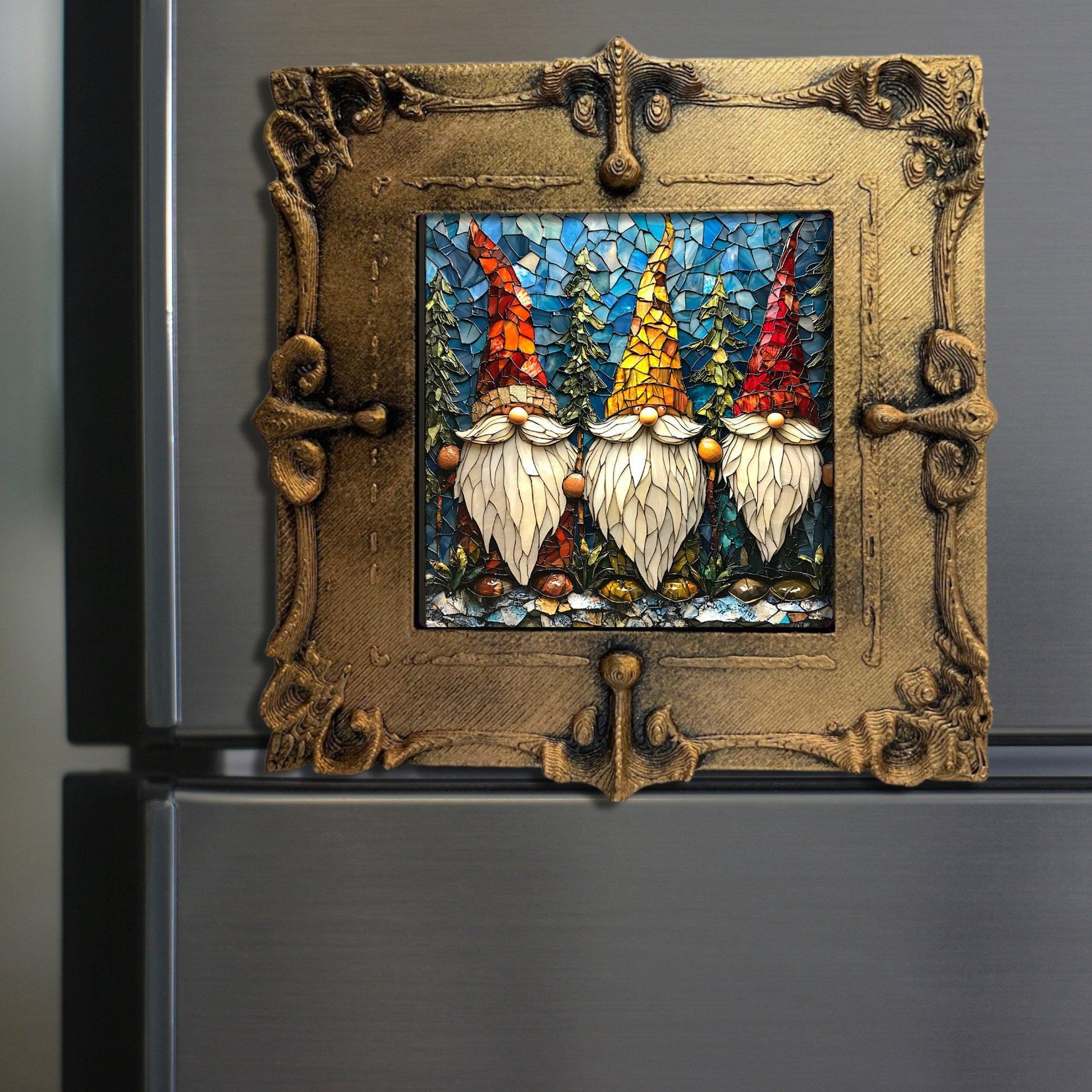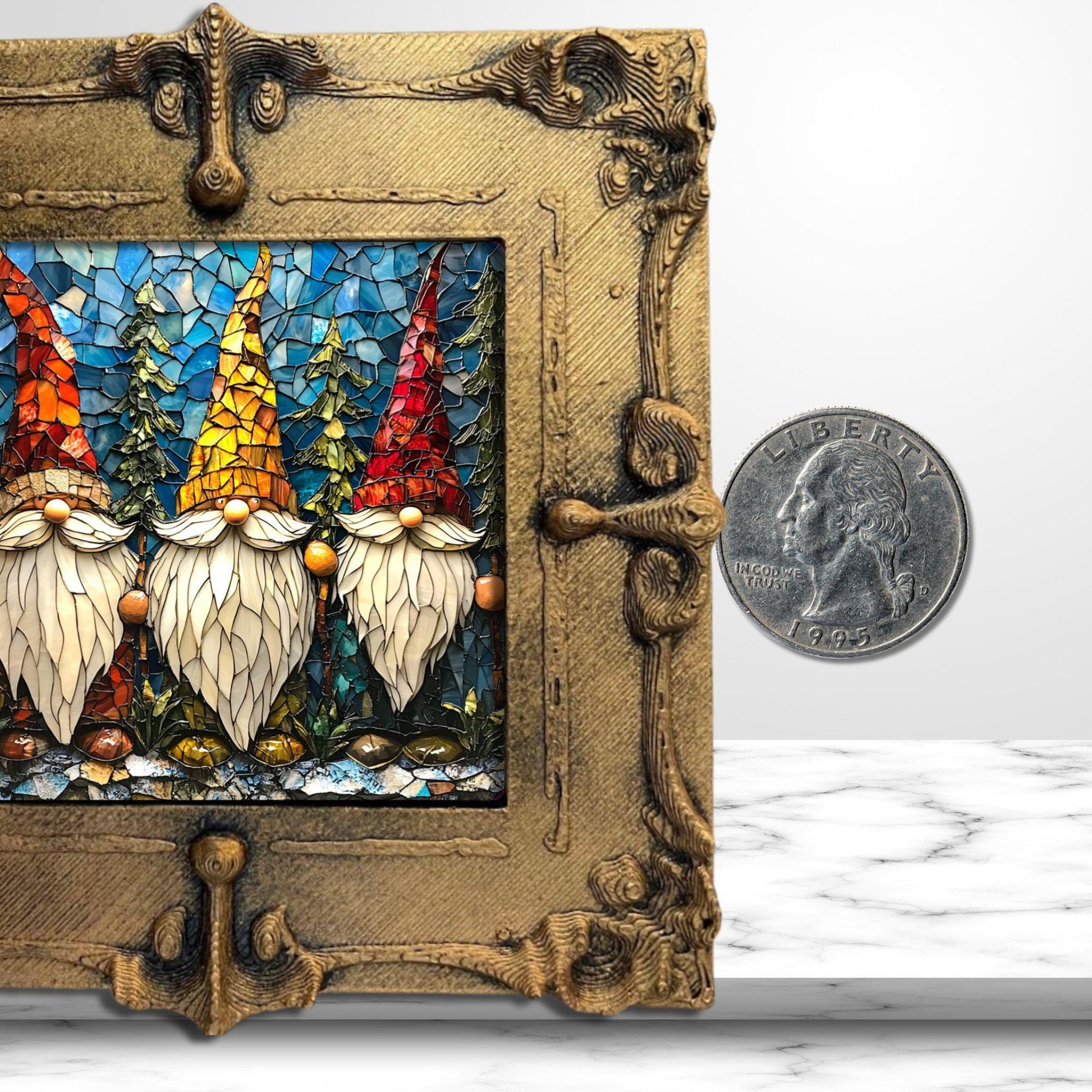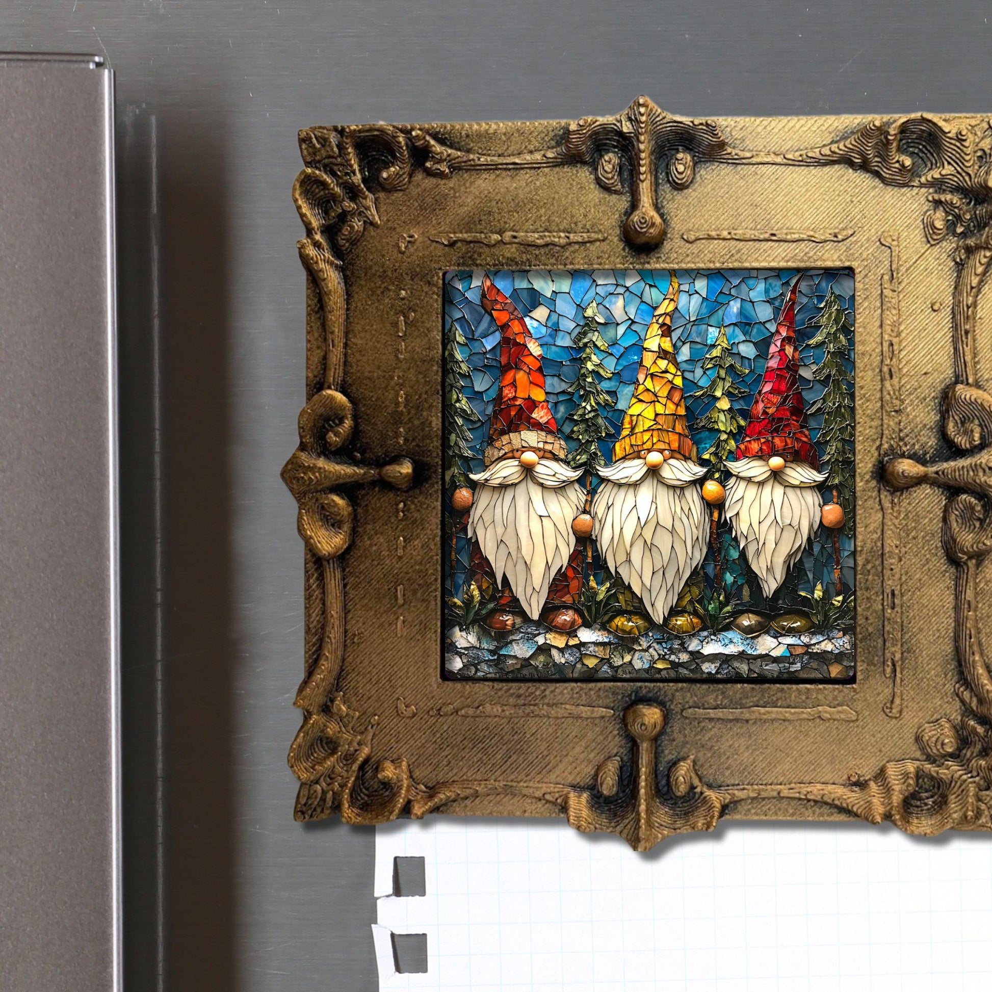Row of Christmas Gnomes Tiny Art Fridge Magnet Gold Framed Fridgescaping Art Picture Gallery Tiny Art Gift for Her Wife Mom