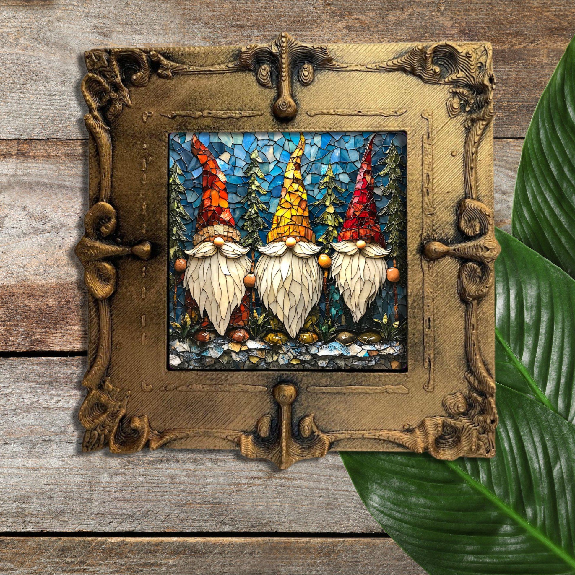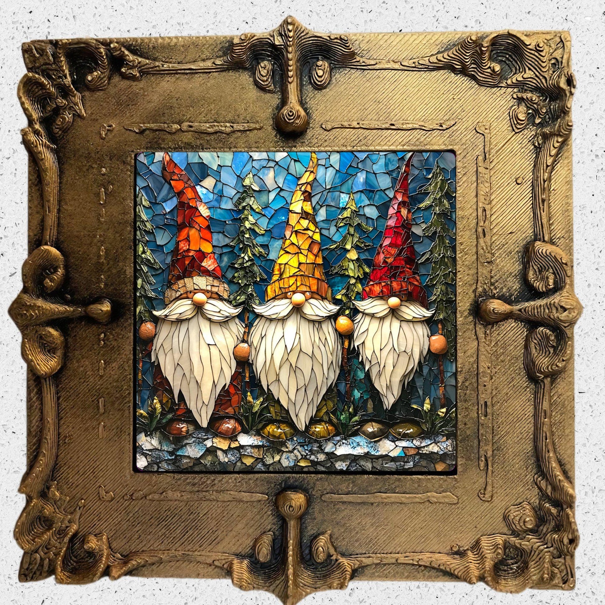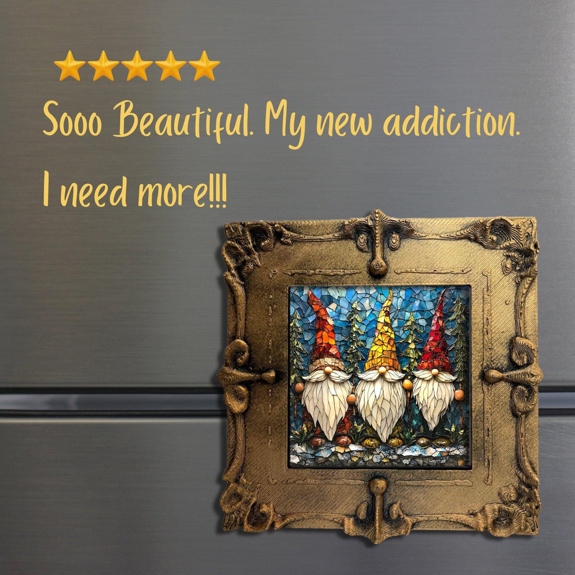 Row of Christmas Gnomes Tiny Art Fridge Magnet Gold Framed Fridgescaping Art Picture Gallery Tiny Art Gift for Her Wife Mom