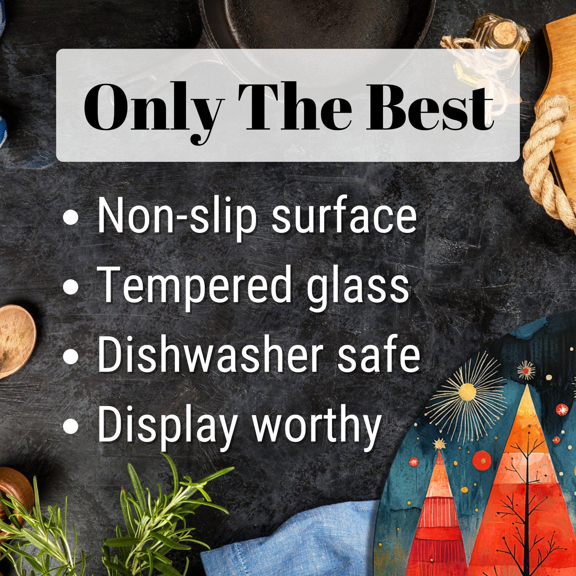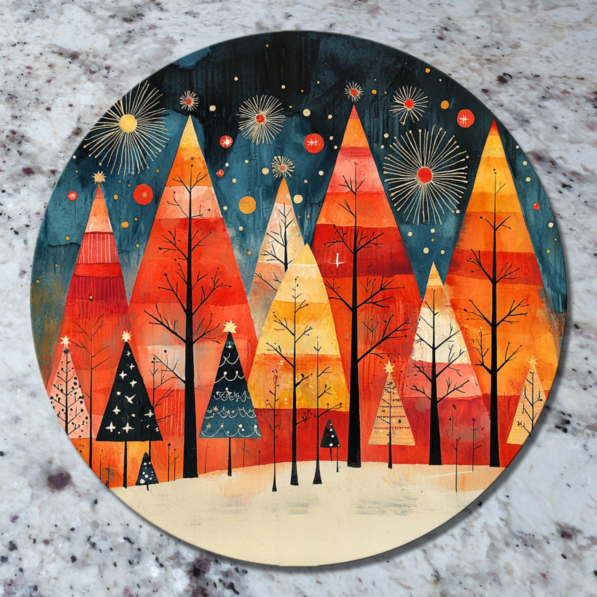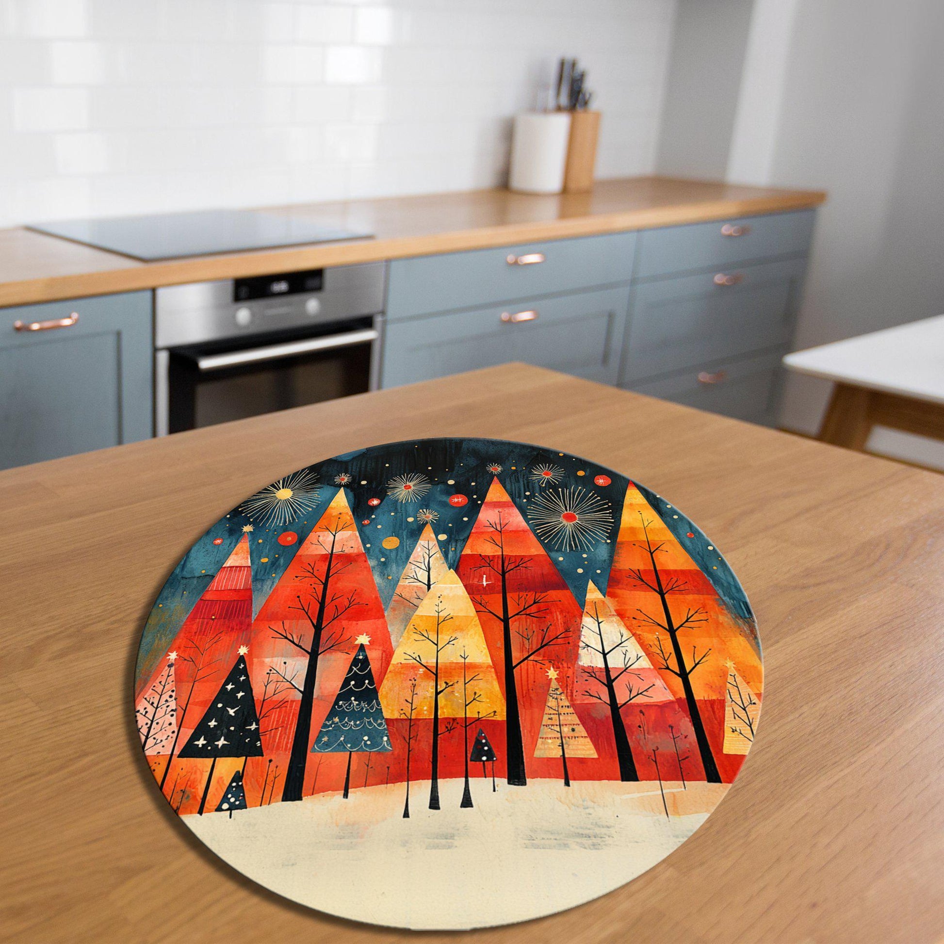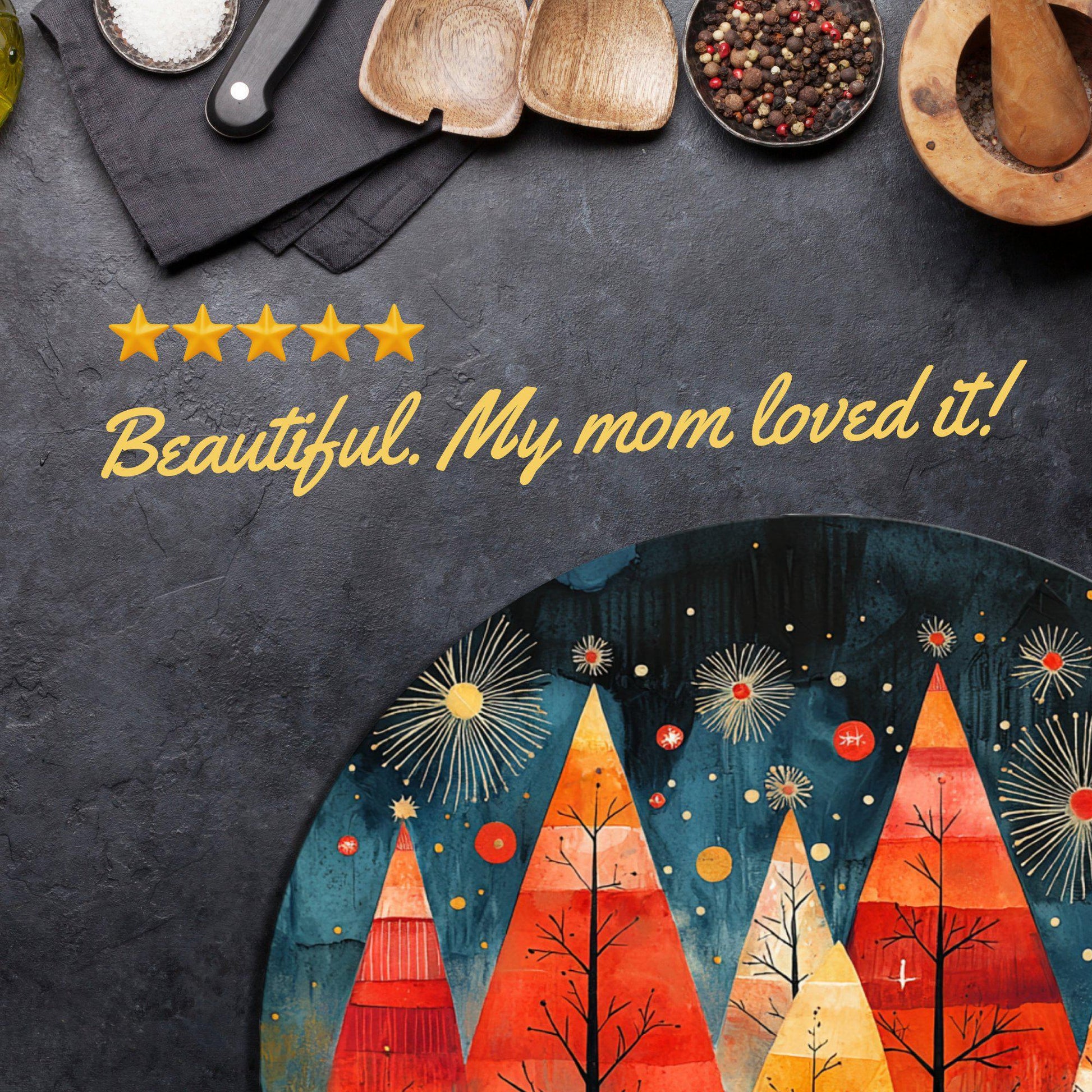 Scandinavian Christmas Trees Glass Cutting Board 8-inch Round Trivet Charcuterie Board Gift for Her Mom Kitchen Decor