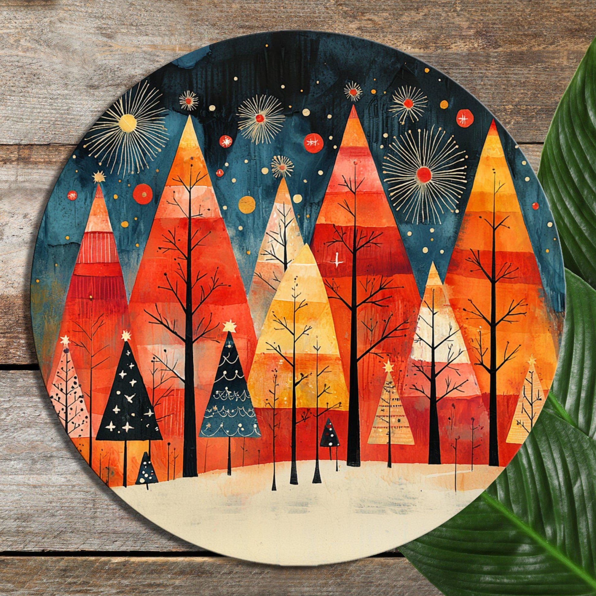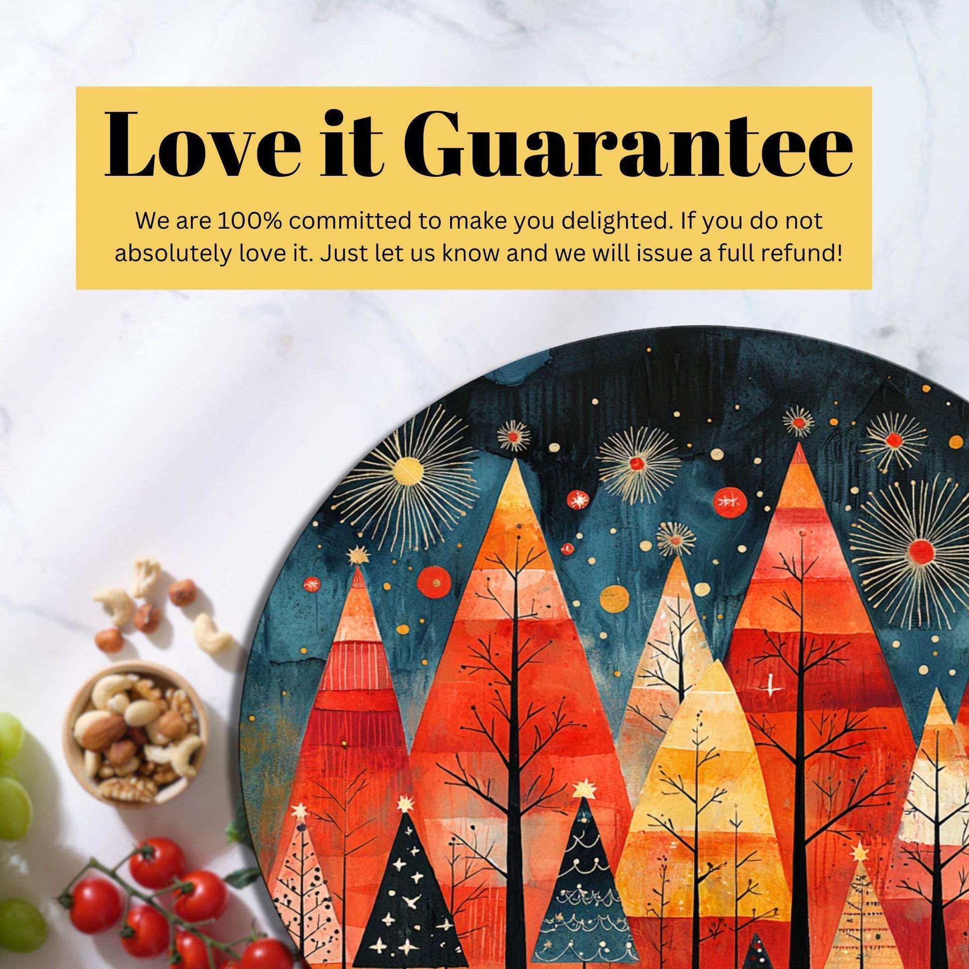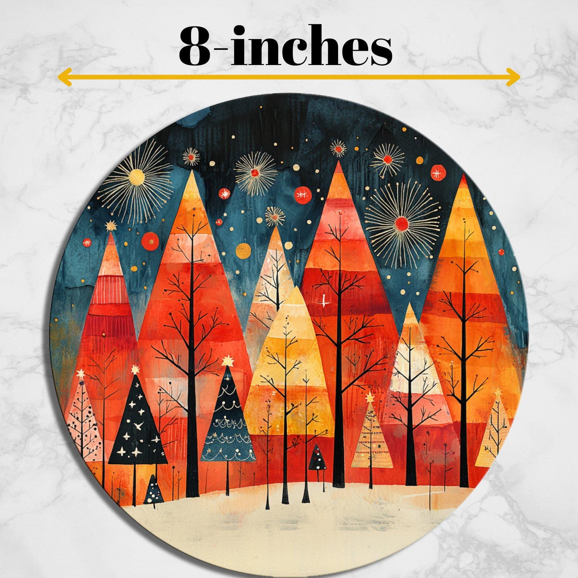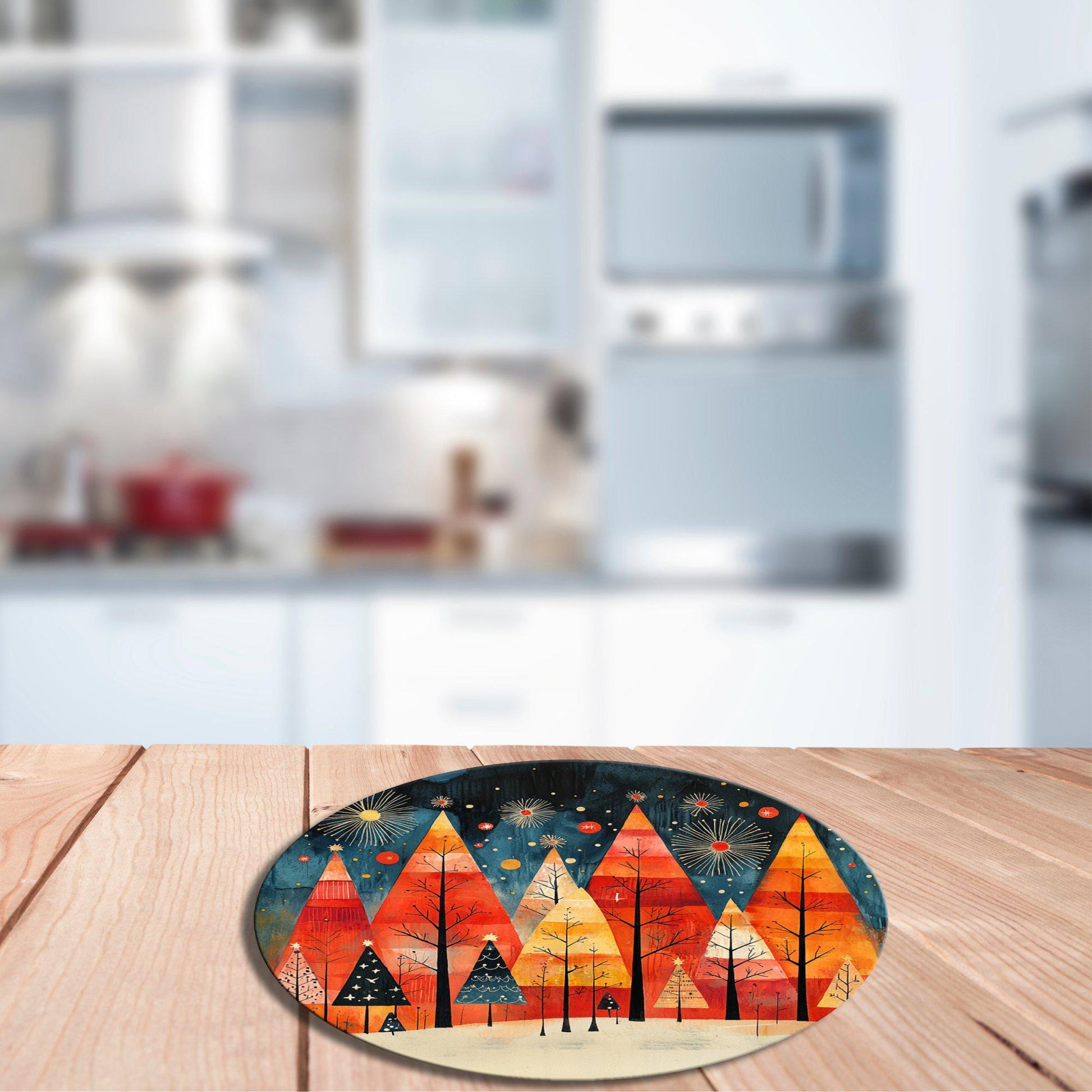 Scandinavian Christmas Trees Glass Cutting Board 8-inch Round Trivet Charcuterie Board Gift for Her Mom Kitchen Decor