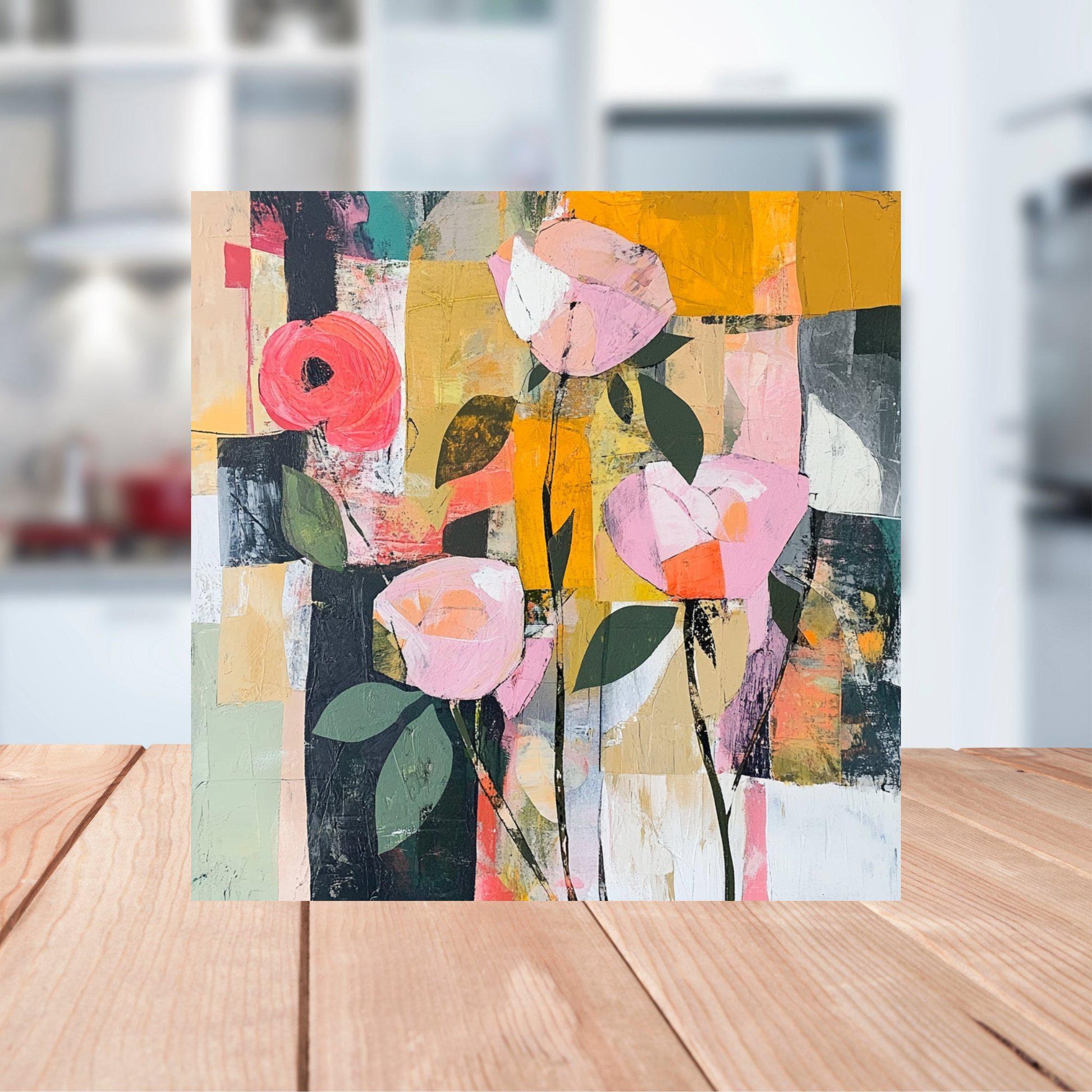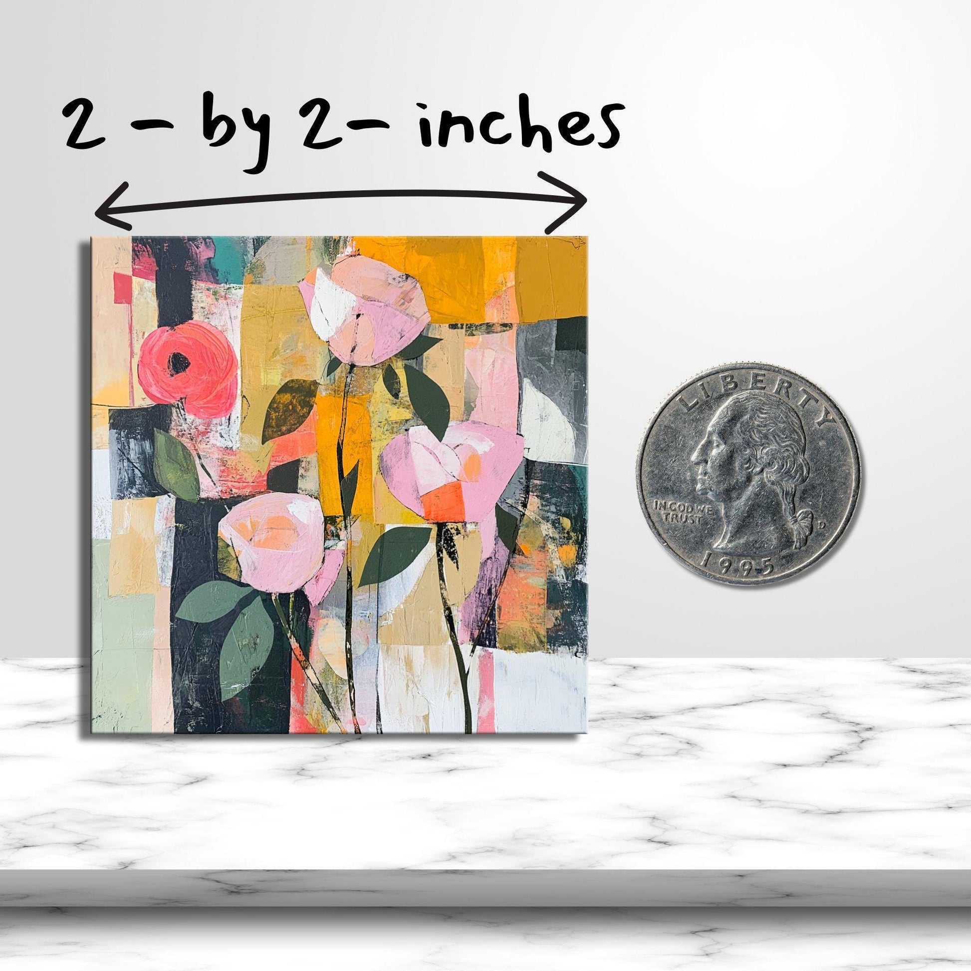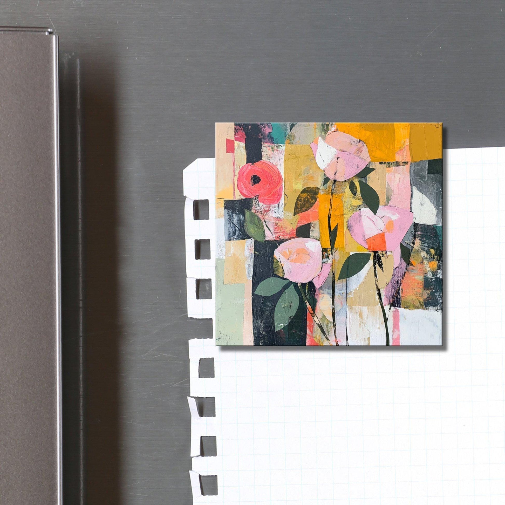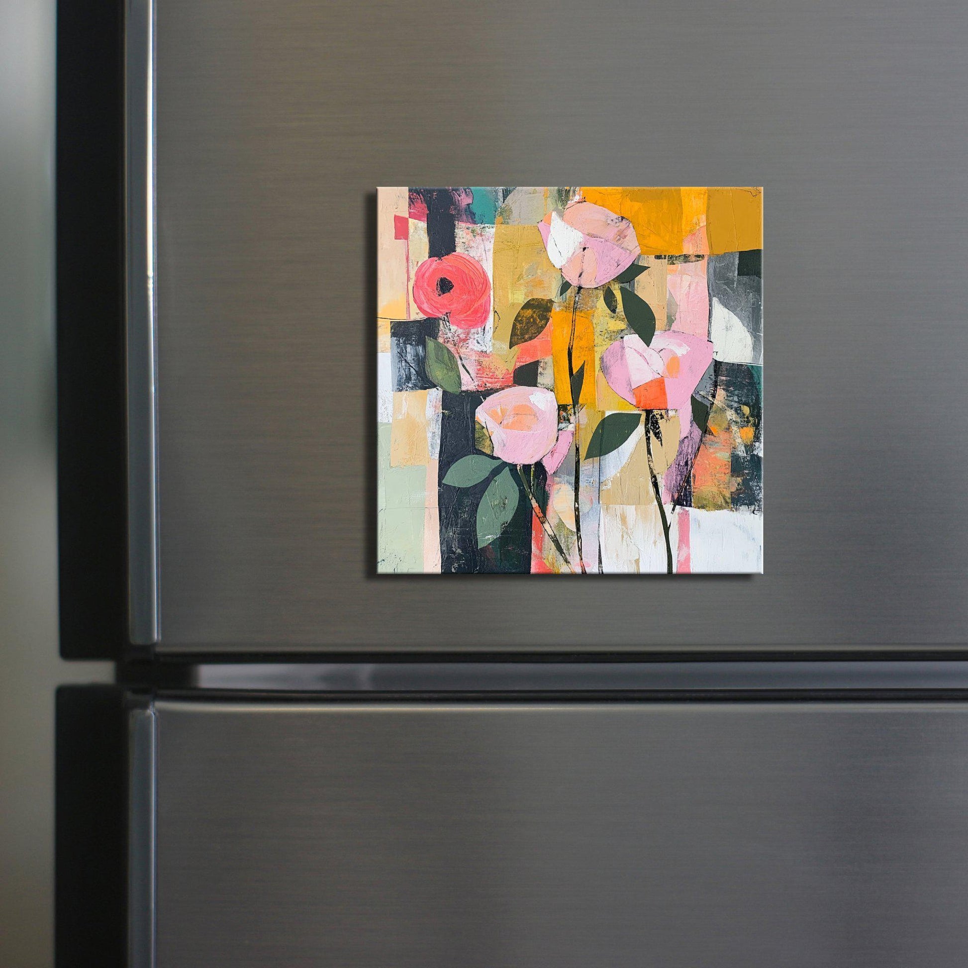 Scandinavian Roses Fridge Magnet 2-inch Strong Refrigerator Magnet Kitchen Decor Dopamine Ceramic Tile Art Gift for Her fridgescaping
