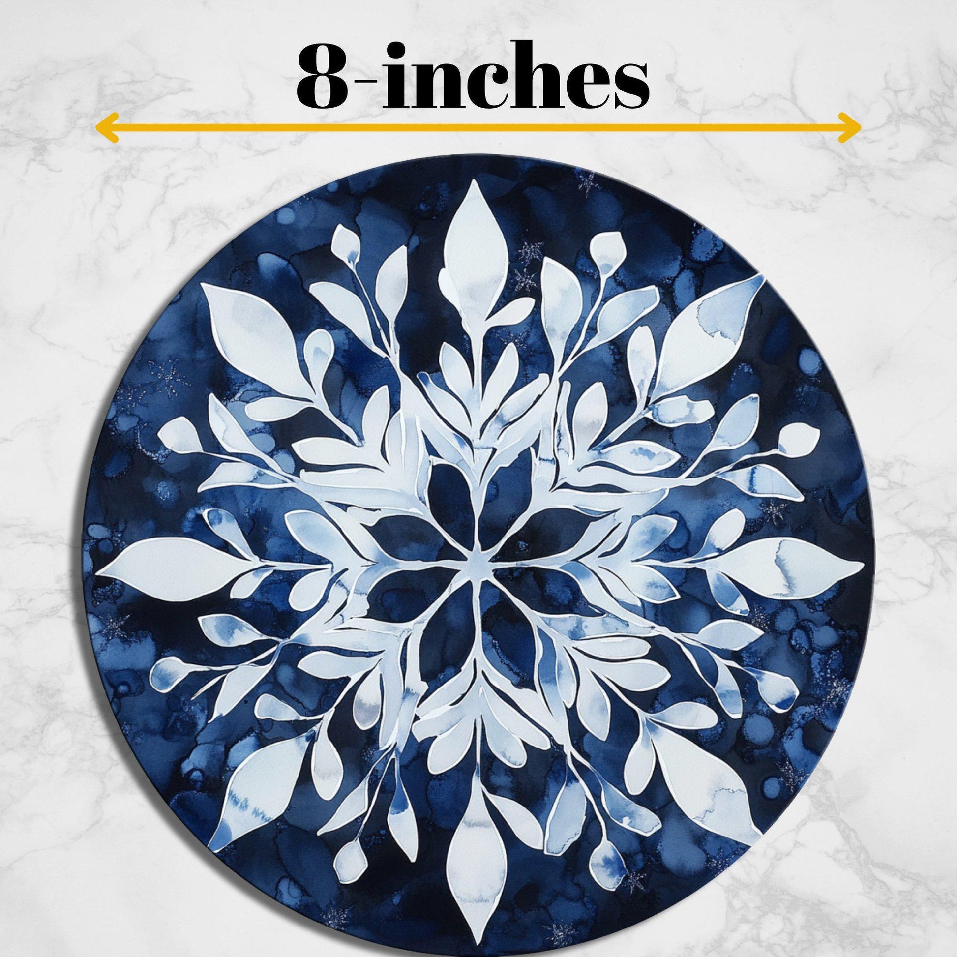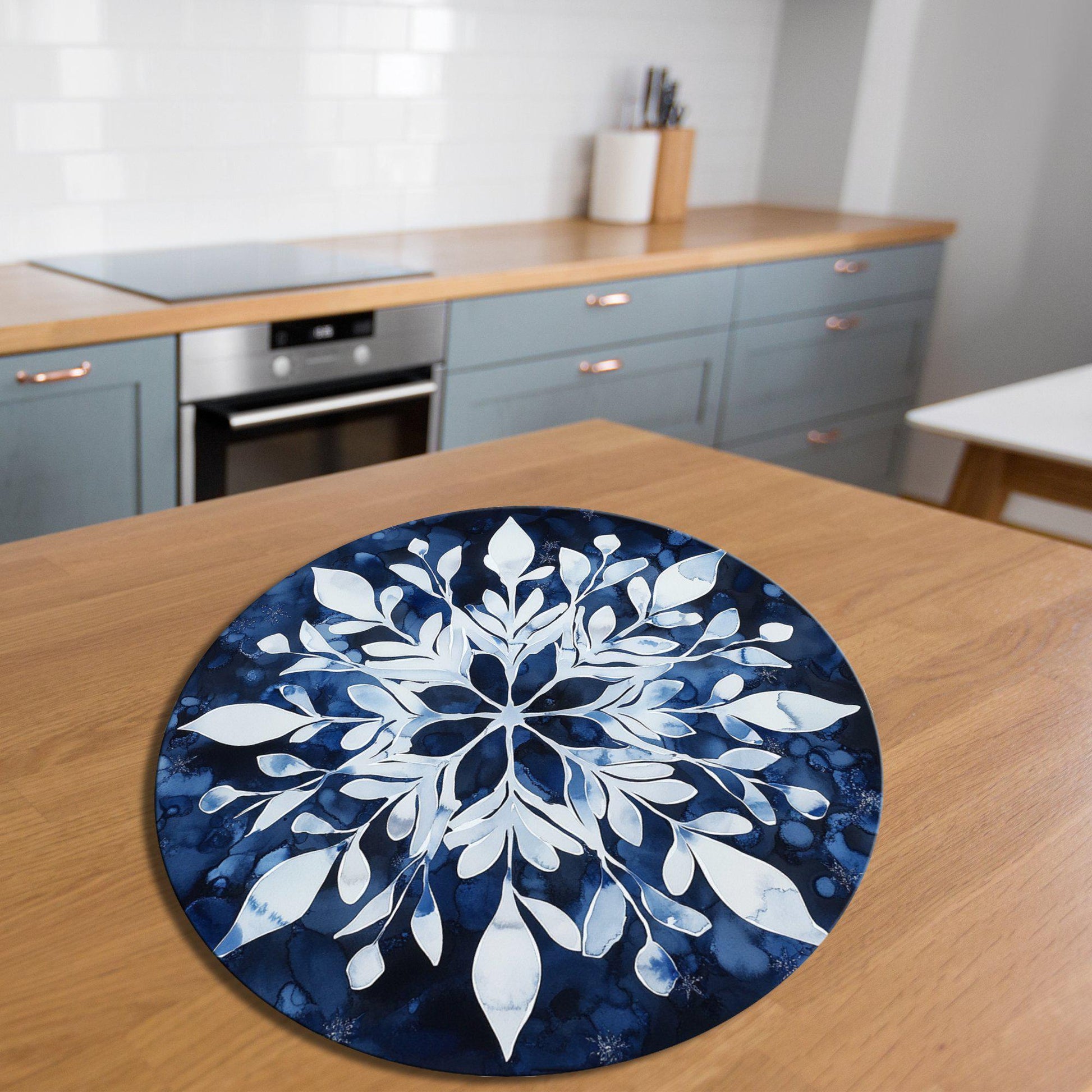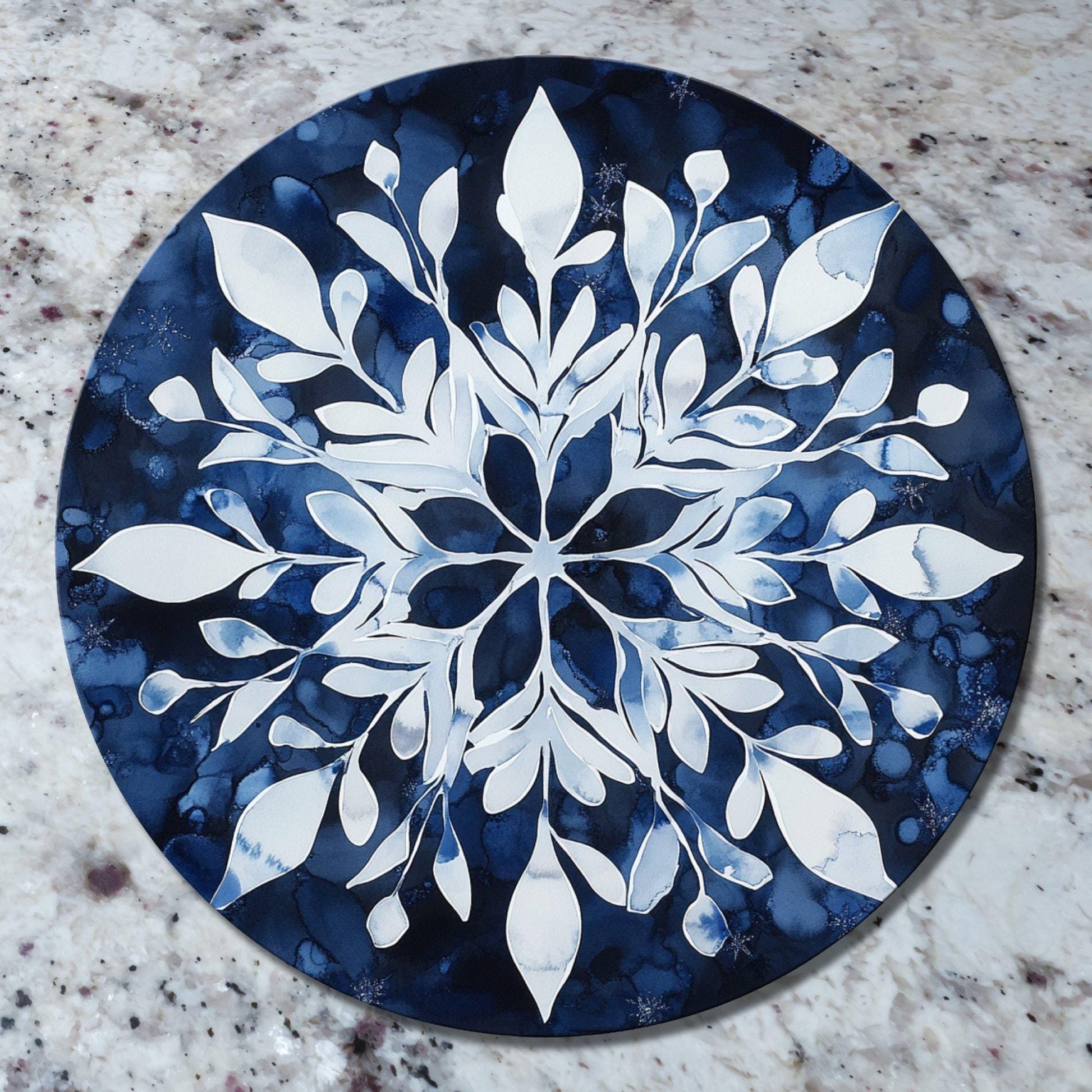 Scandinavian Snowflake Glass Cutting Board 8-inch Round Trivet Charcuterie Board Gift for Her Mom Kitchen Decor
