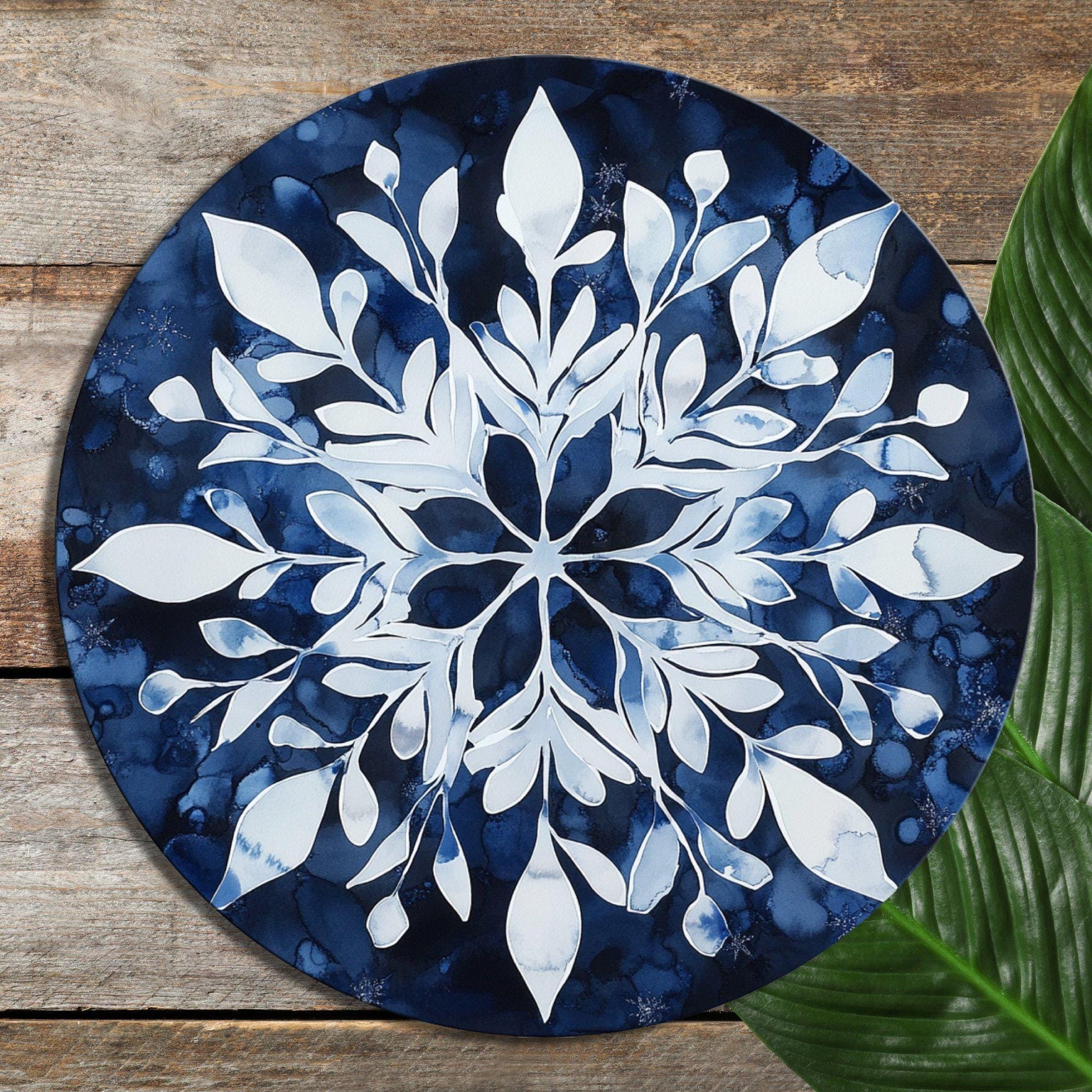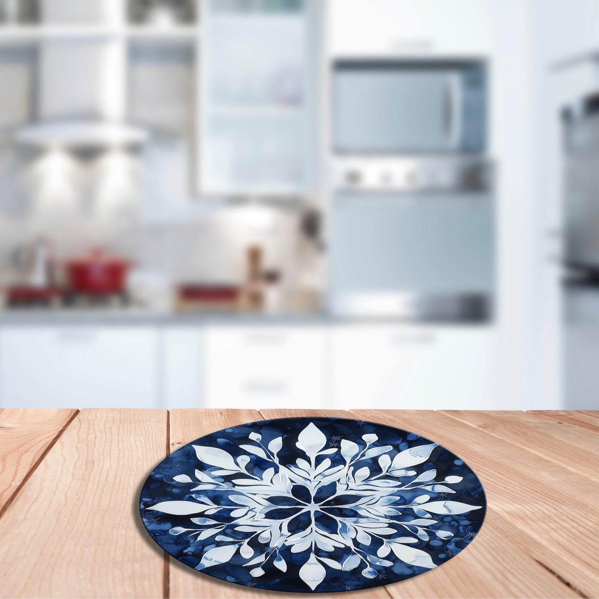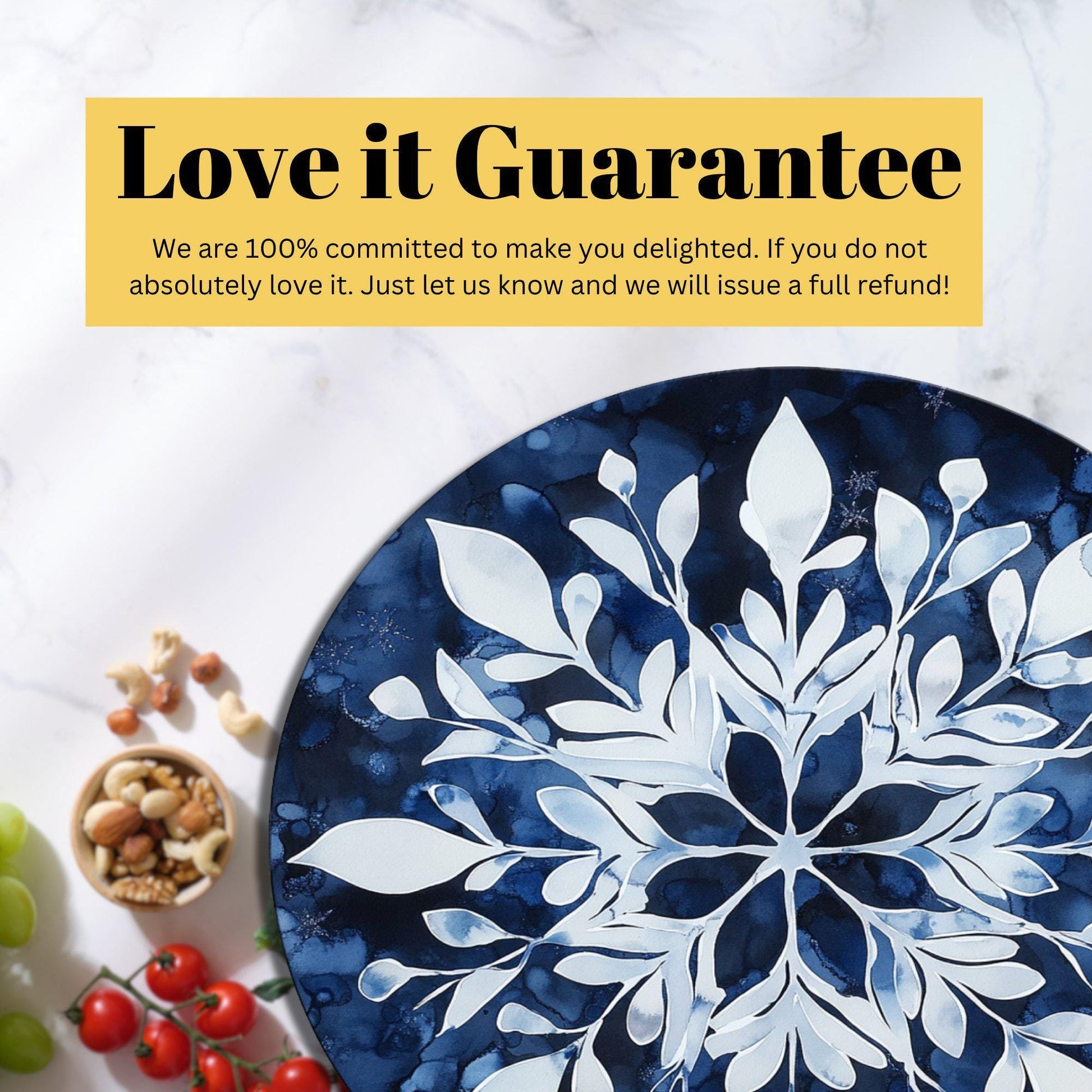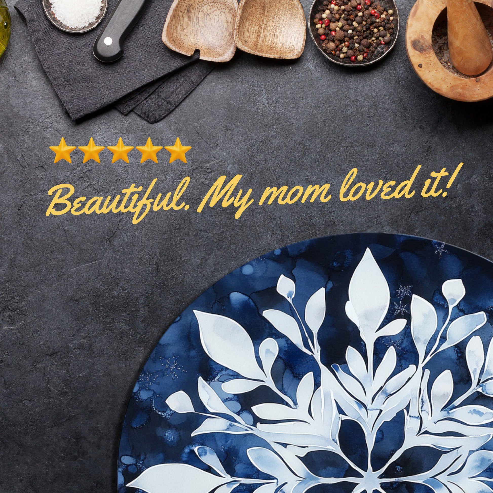 Scandinavian Snowflake Glass Cutting Board 8-inch Round Trivet Charcuterie Board Gift for Her Mom Kitchen Decor