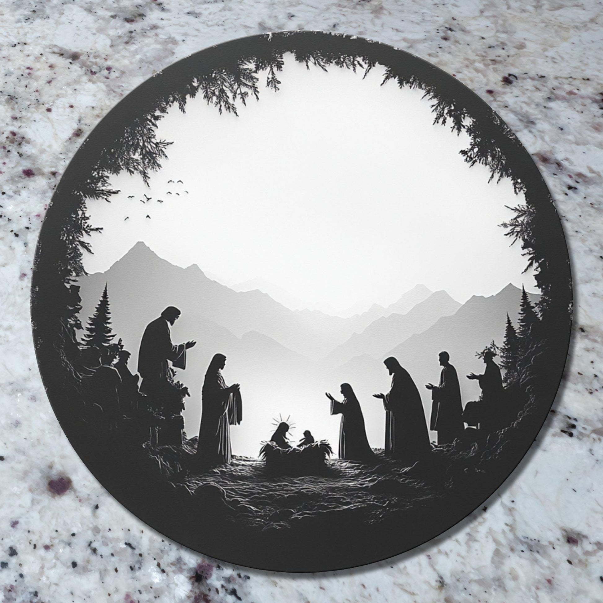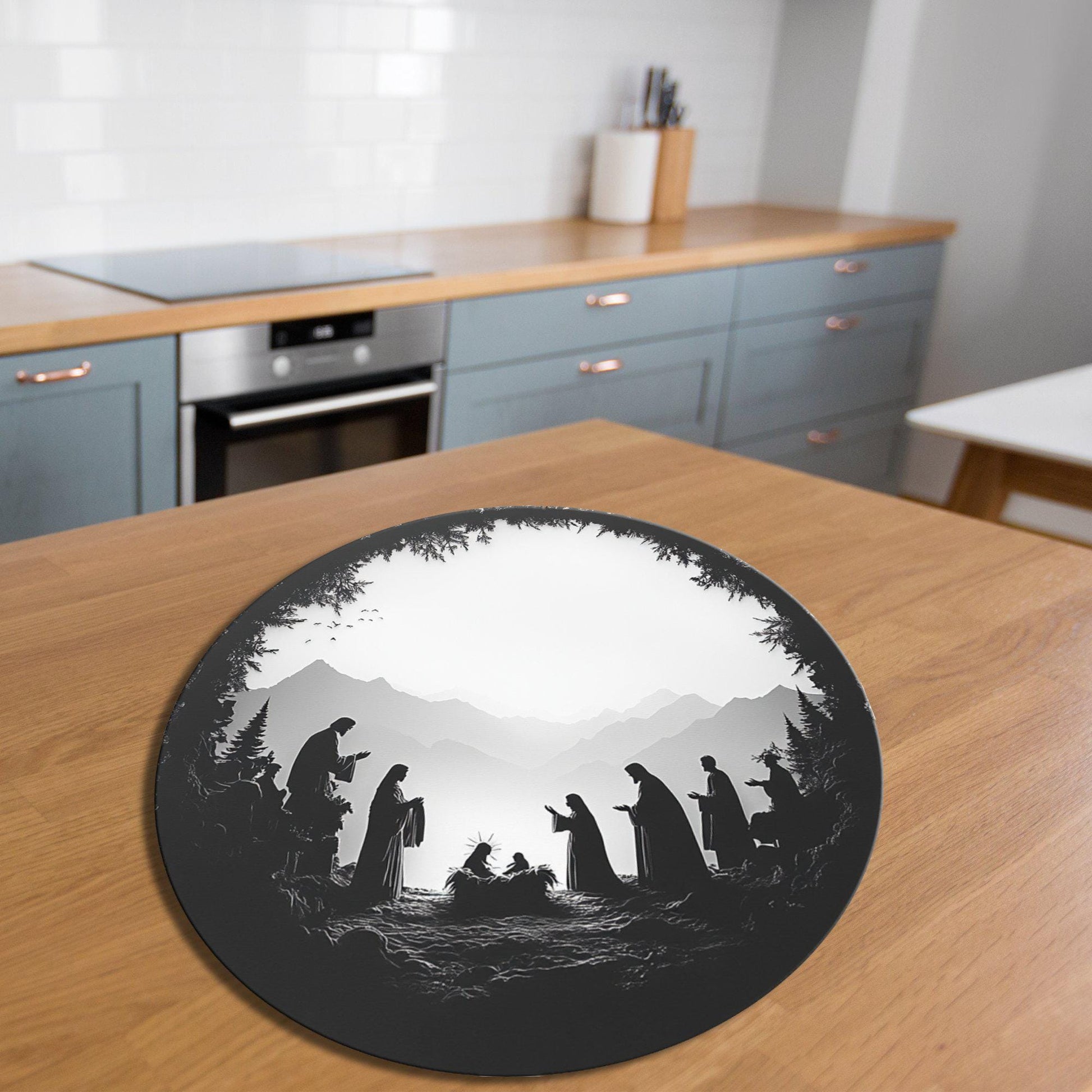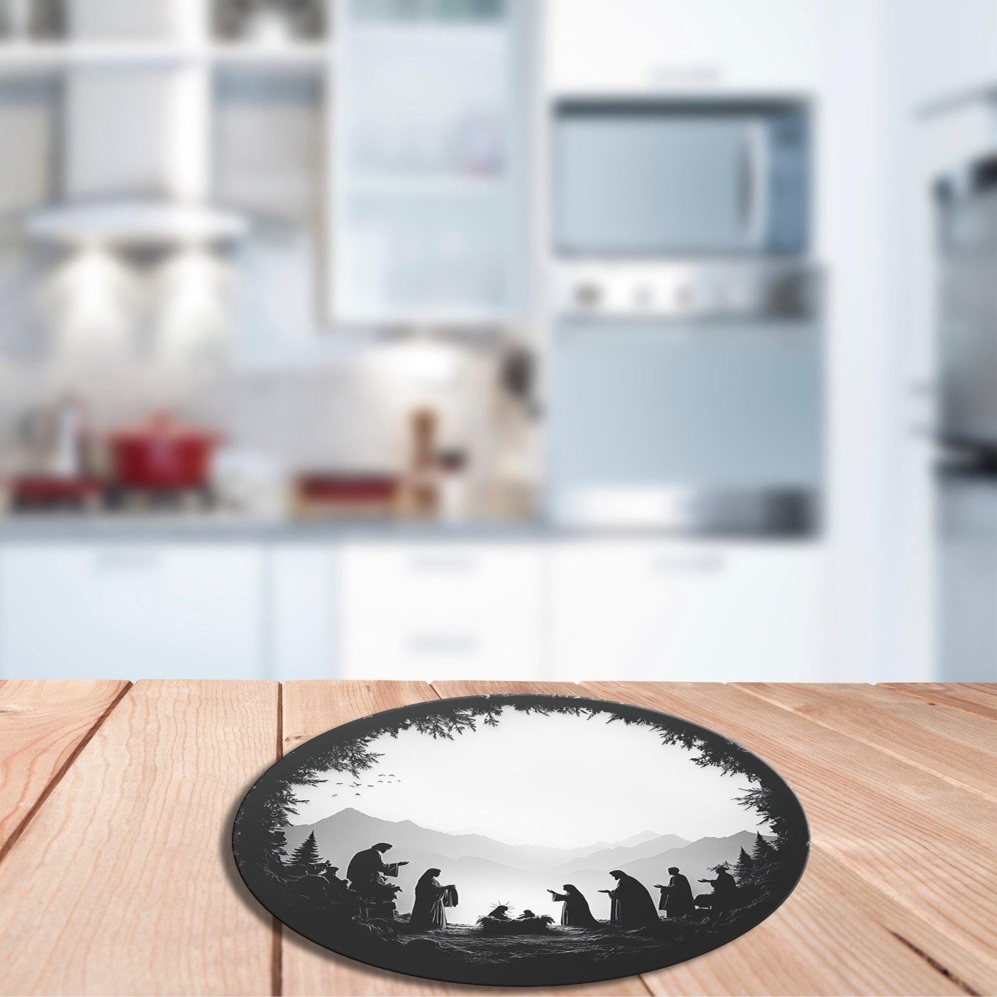 Silhouette Nativity Glass Cutting Board 8-inch Round Trivet Charcuterie Board Gift for Her Mom Kitchen Decor