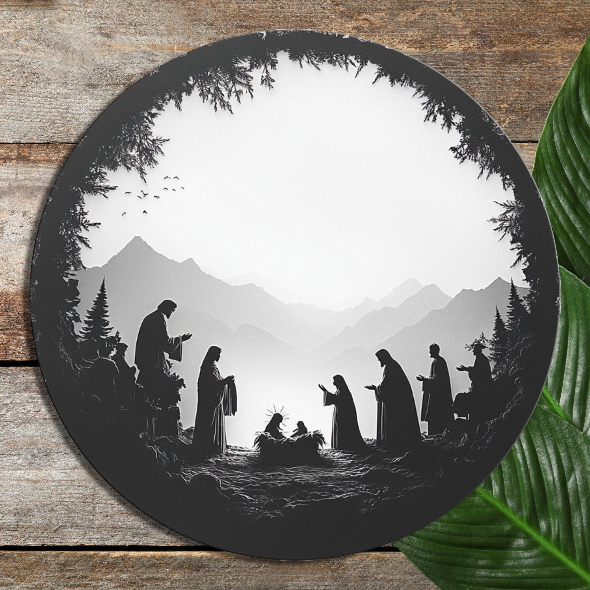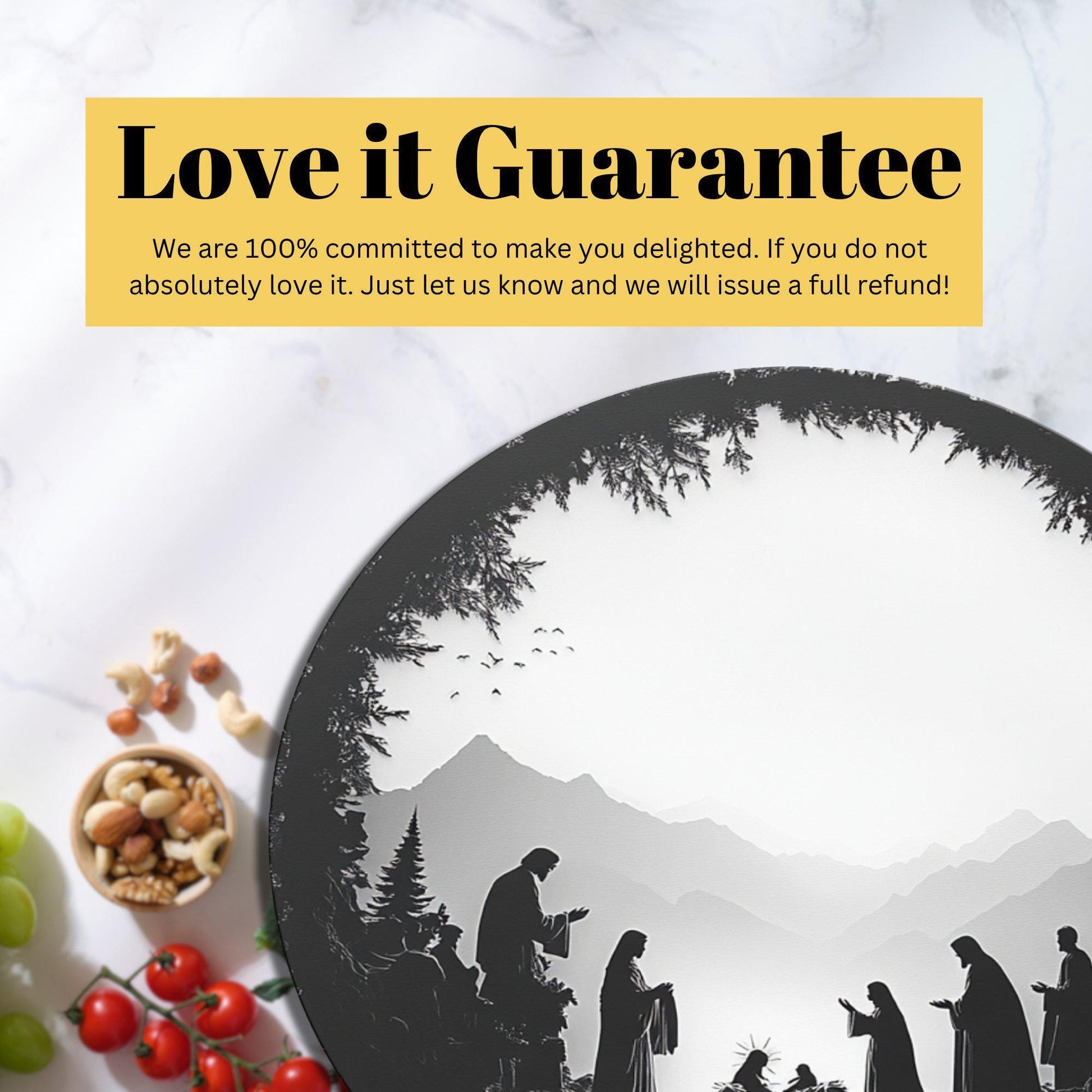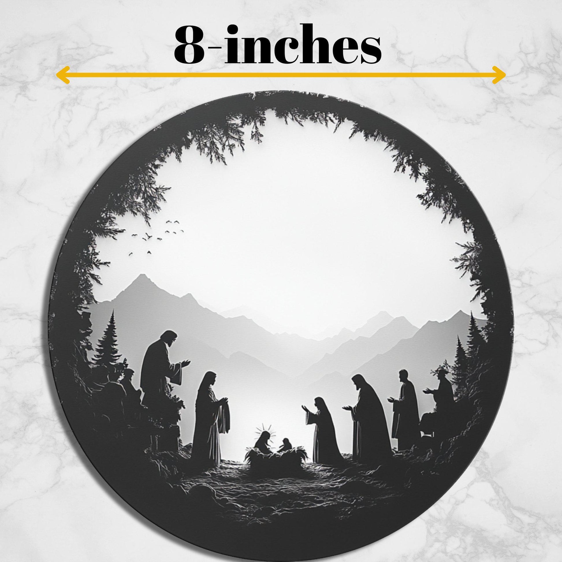 Silhouette Nativity Glass Cutting Board 8-inch Round Trivet Charcuterie Board Gift for Her Mom Kitchen Decor