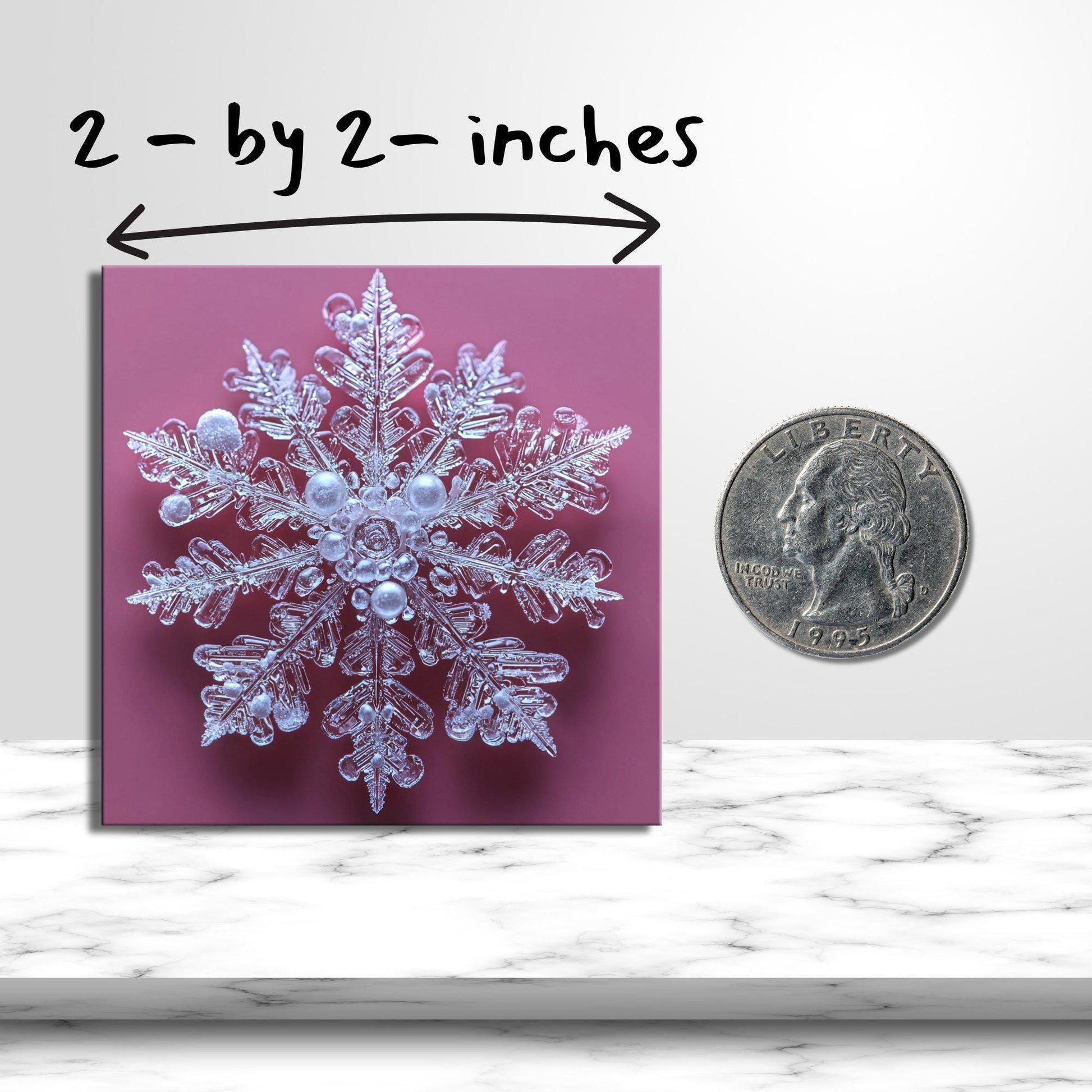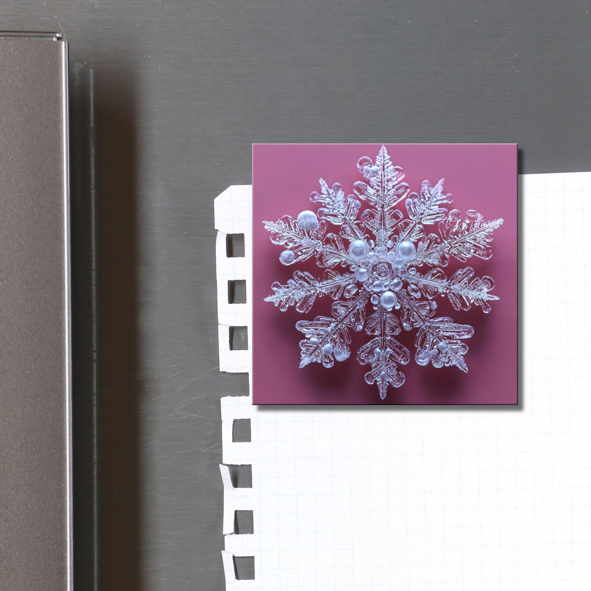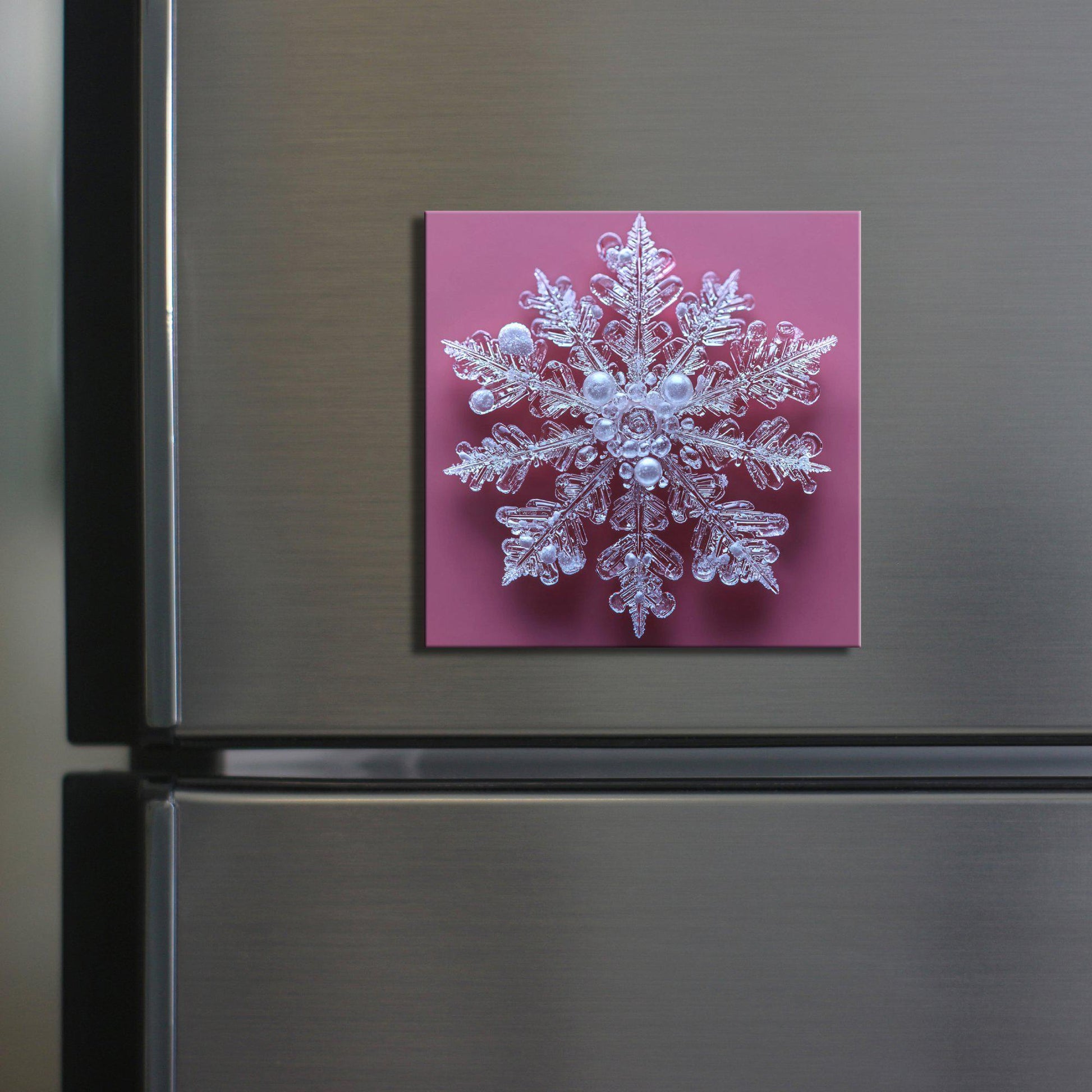 Snowflake on Pink Fridge Magnet 2-inch Strong Refrigerator Magnet Kitchen Decor Dopamine Ceramic Tile Art Gift for Her fridgescaping