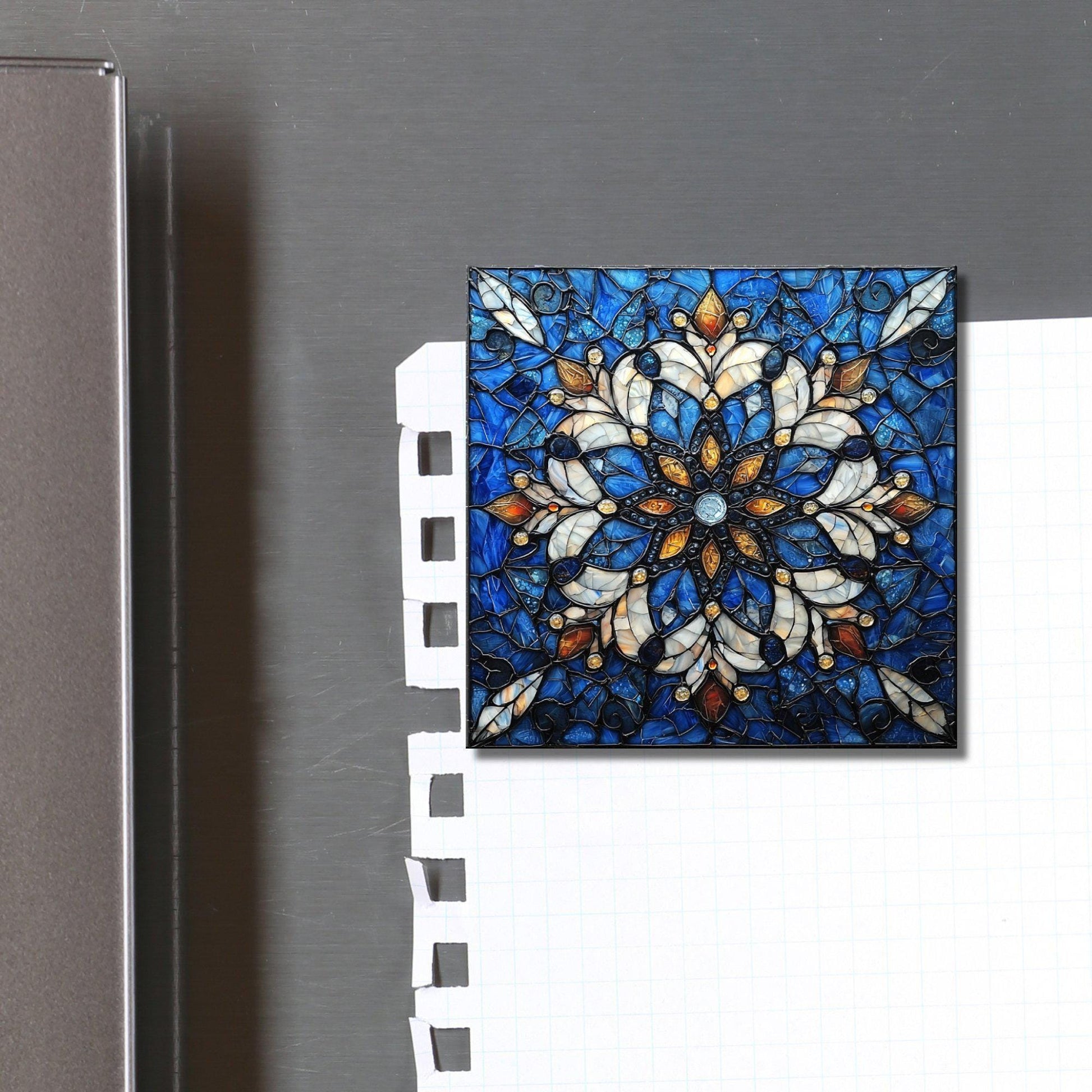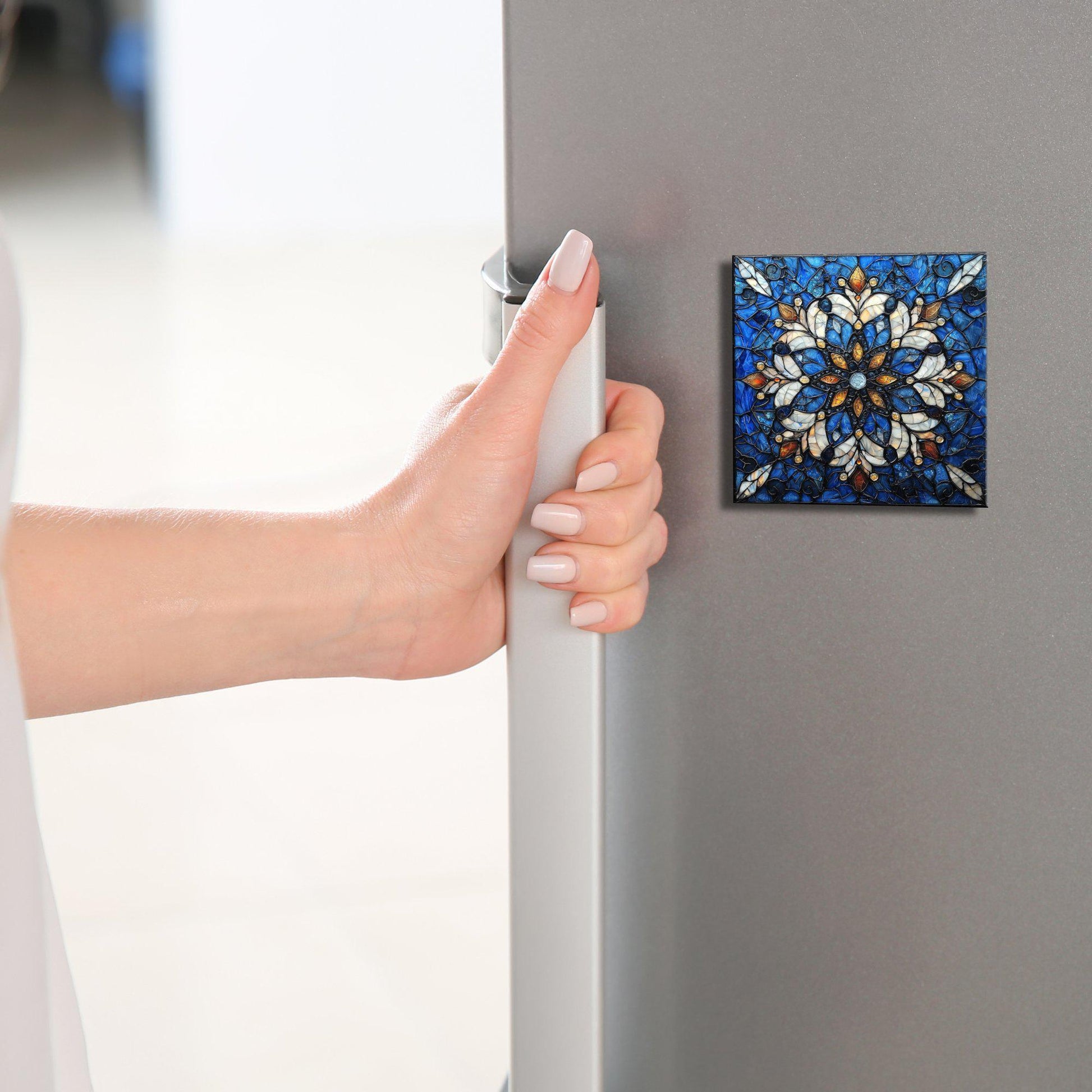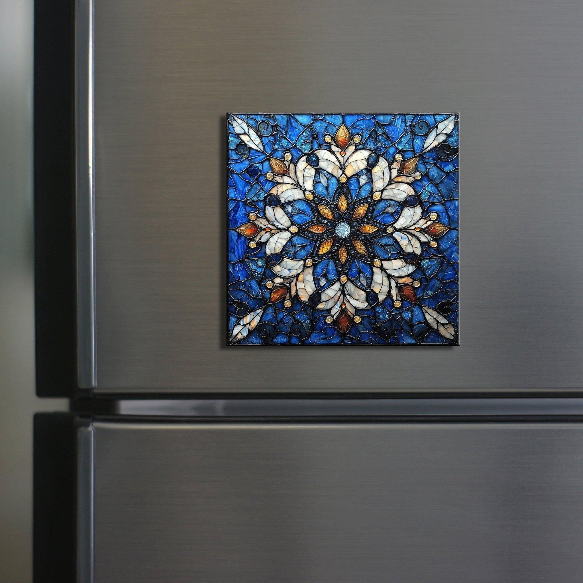Snowflake Stained Glass Fridge Magnet 2-inch Strong Refrigerator Magnet Kitchen Decor Dopamine Ceramic Tile Art Gift for Her fridgescaping