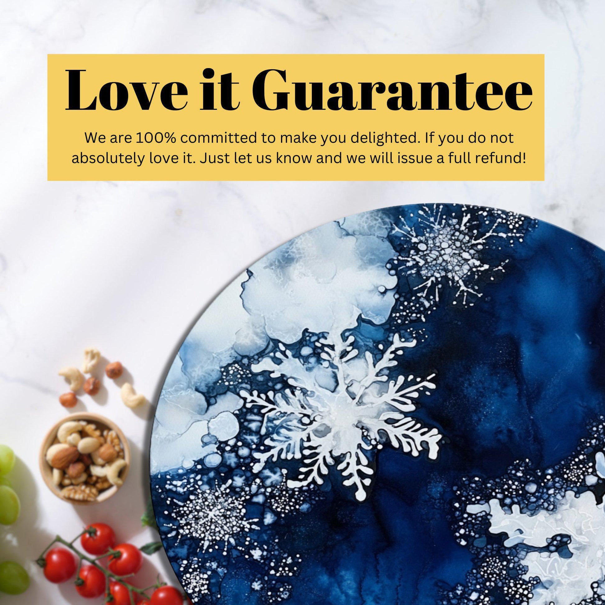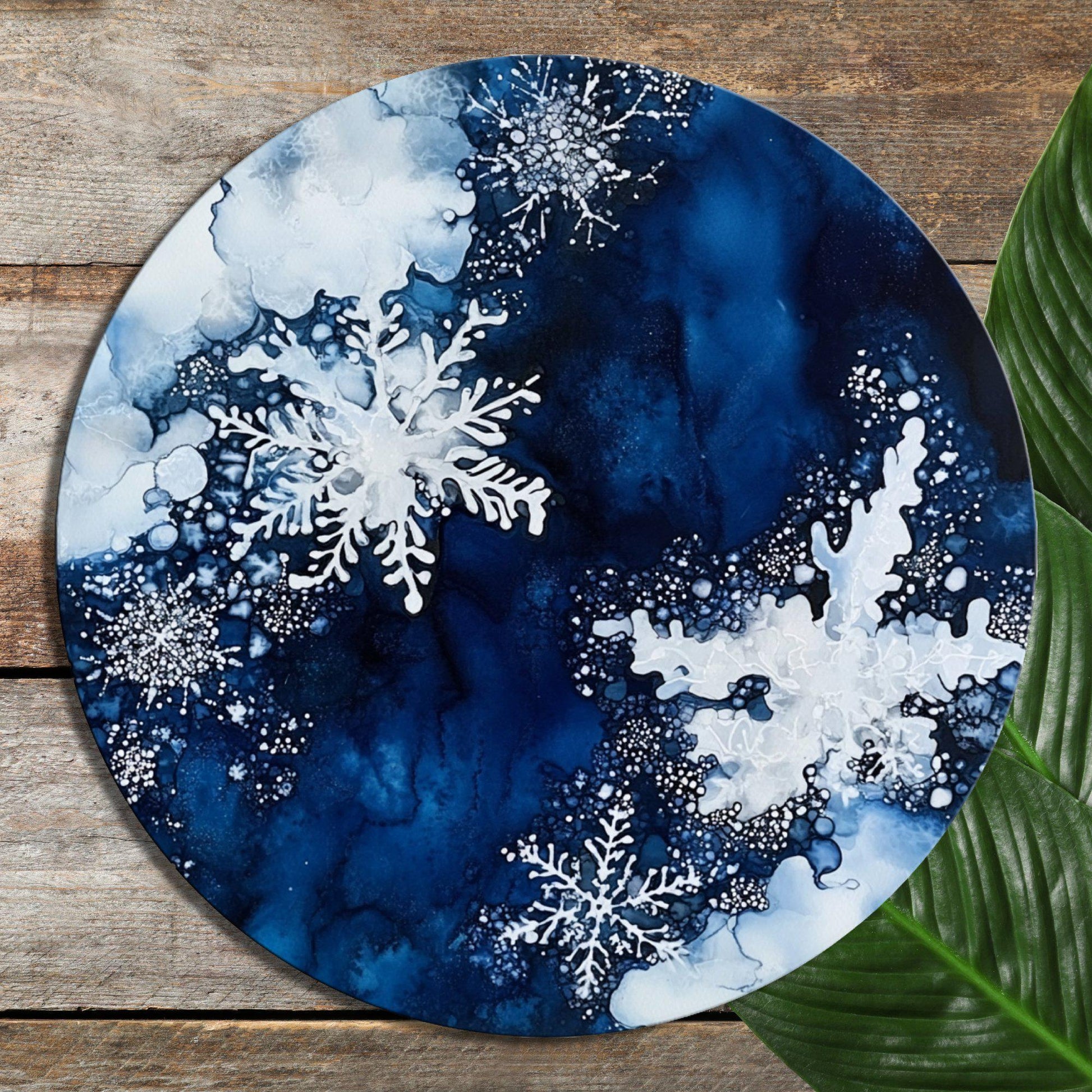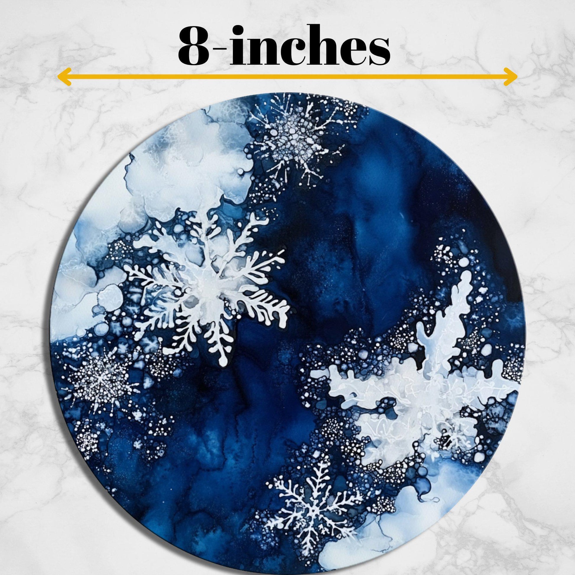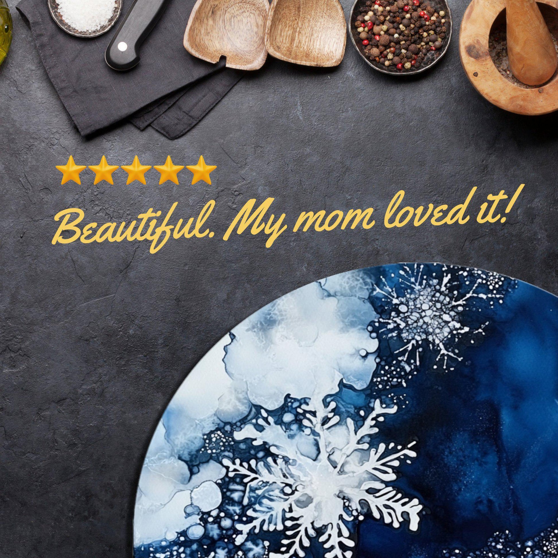 Snowflakes on Deep Blue Glass Cutting Board 8-inch Round Trivet Charcuterie Board Gift for Her Mom Kitchen Decor