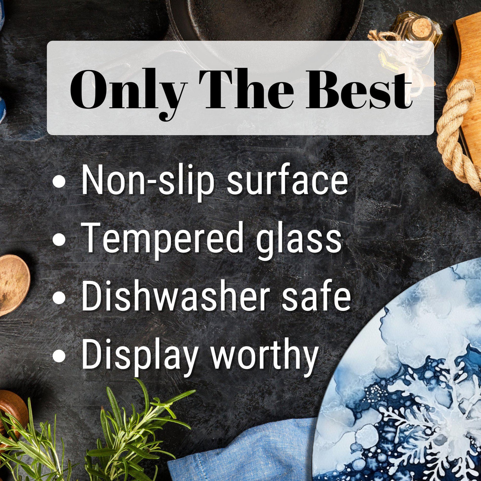 Elevate your kitchen with this functional and beautiful glass cutting board that seamlessly blends practicality with artistry.