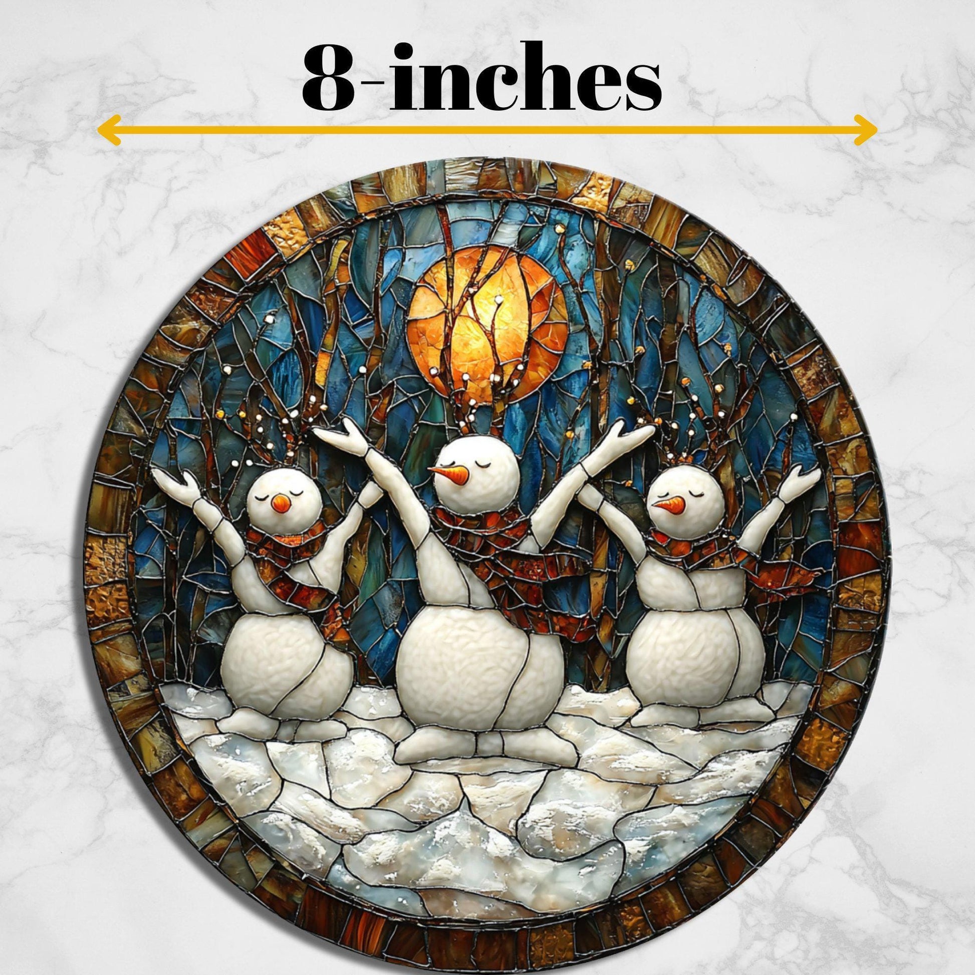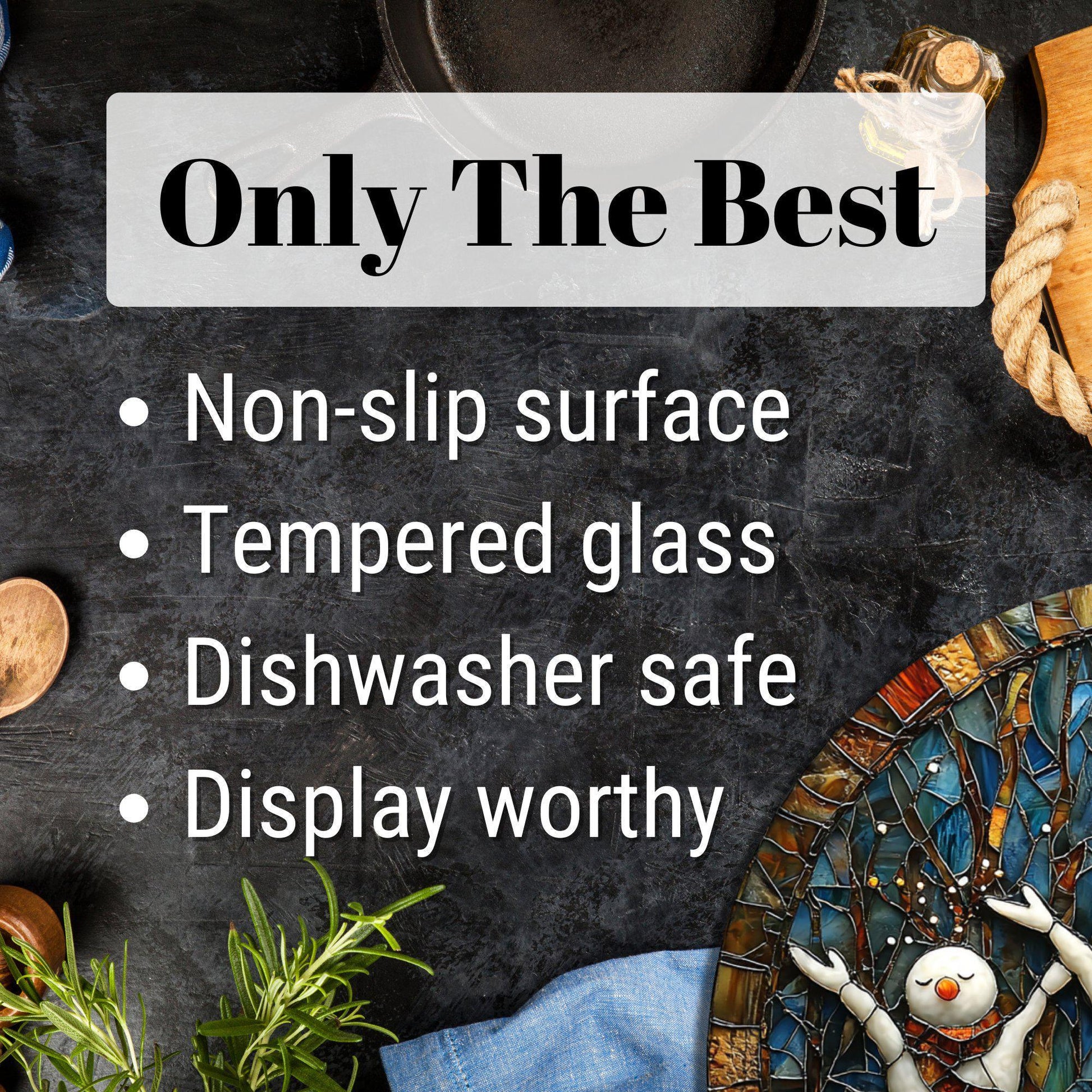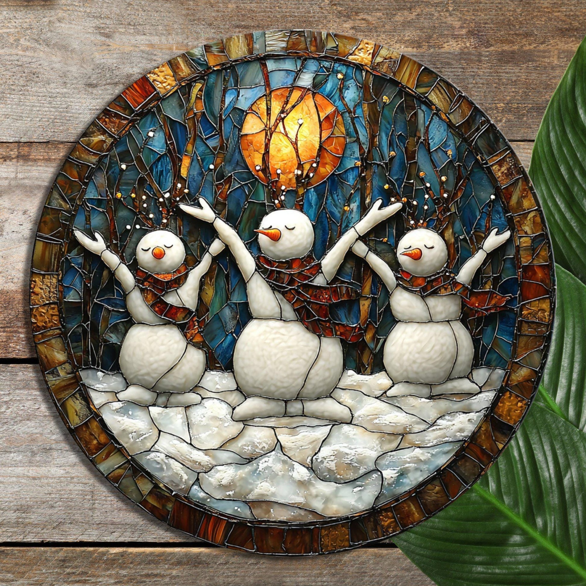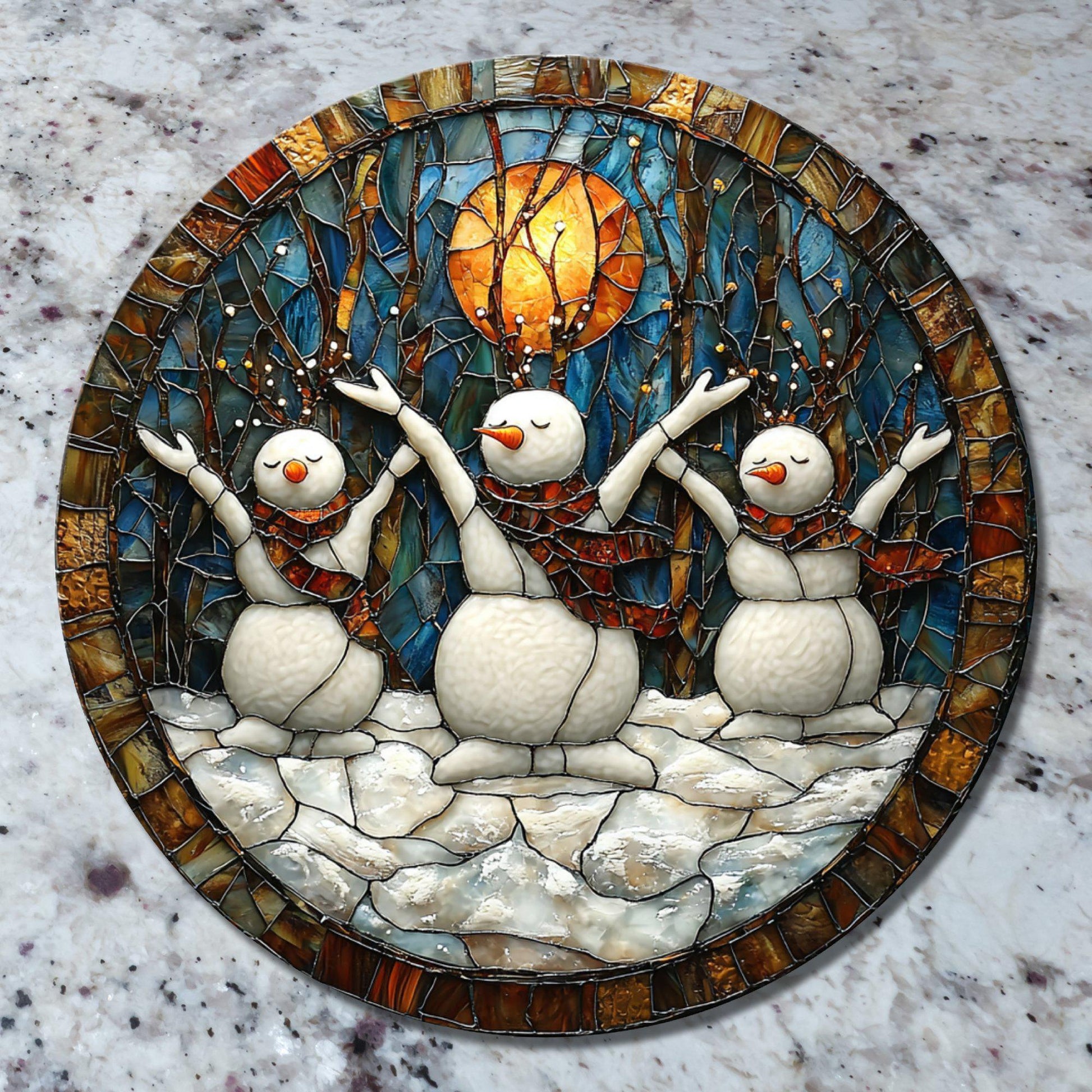 Snowman Yoga Class Glass Cutting Board 8-inch Round Trivet Charcuterie Board Gift for Her Mom Kitchen Decor