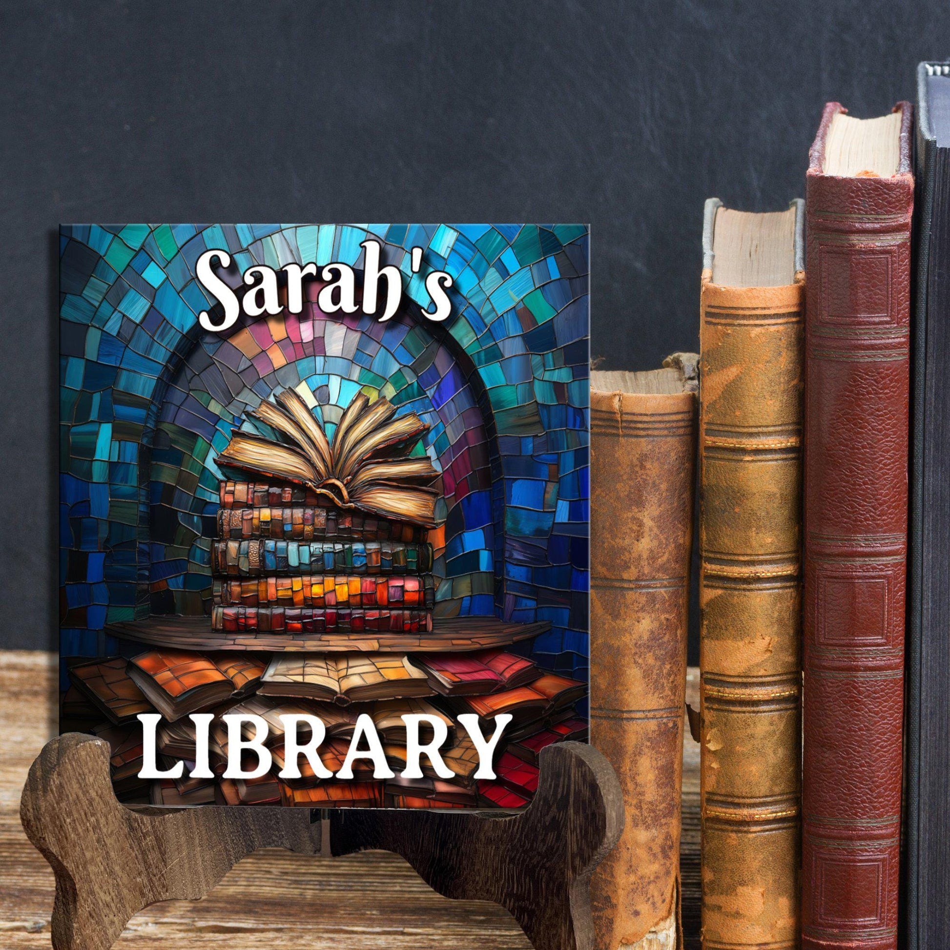 Stack of Books Personalized Library Sign Book Lover Bookworm Biblio Gift Book Nook Shelf Decor Booktoker-Gift for Bookish
