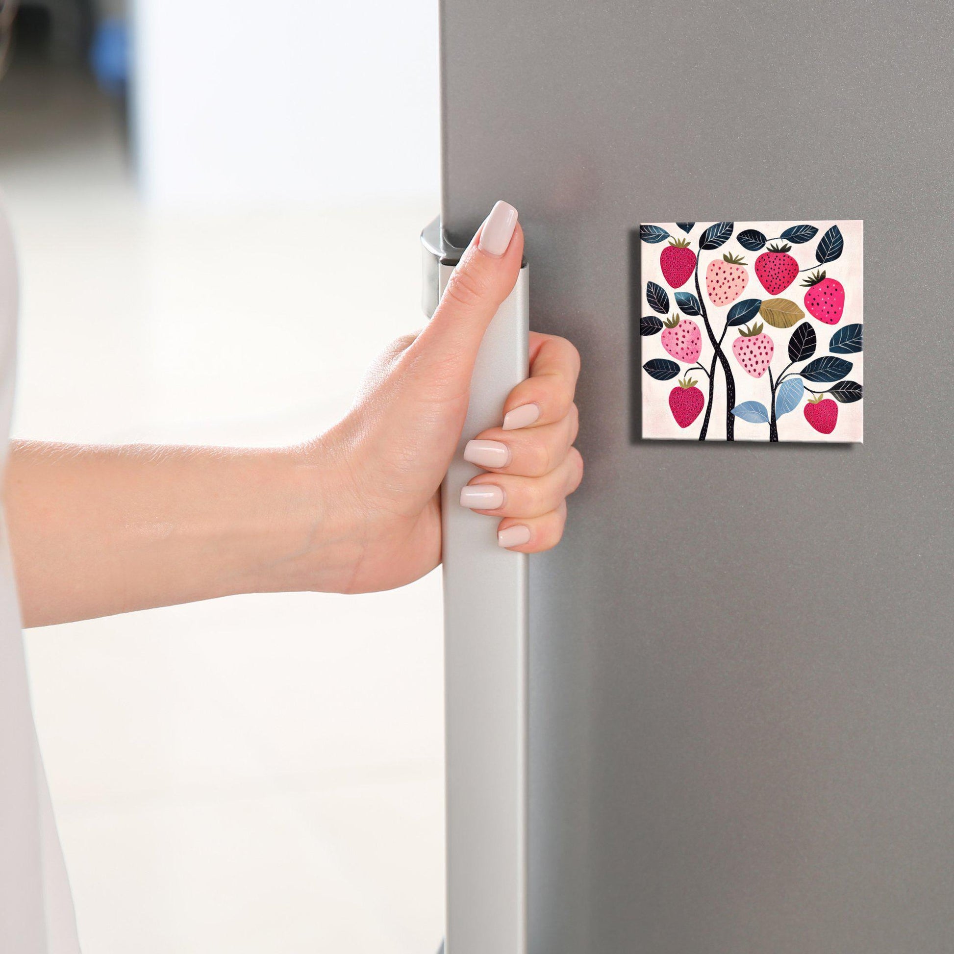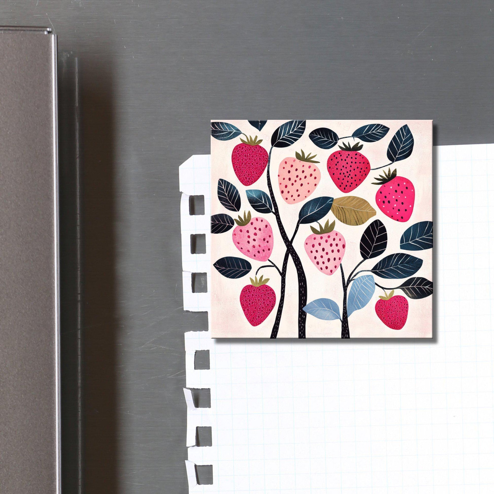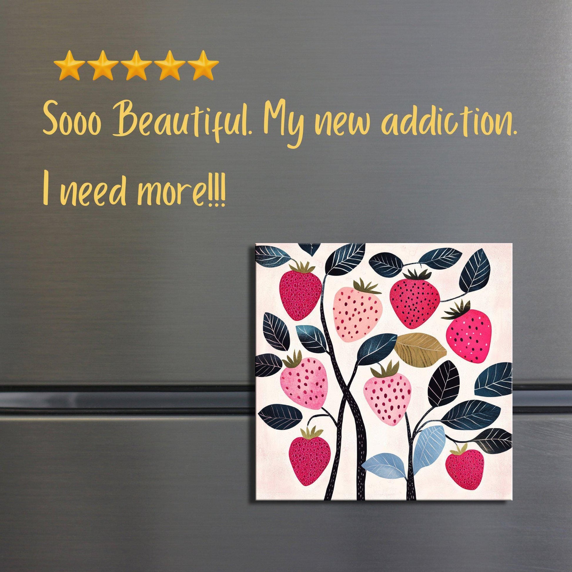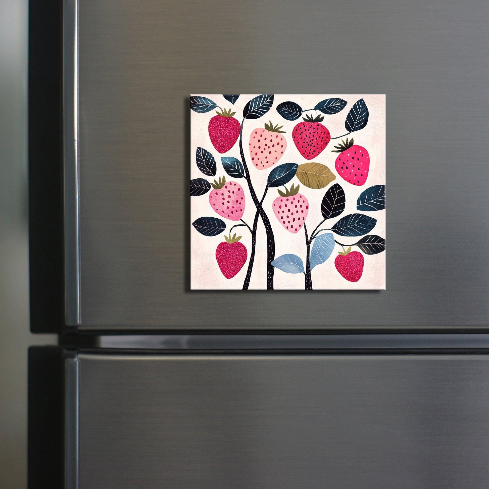 Strawberries and Pink Fridge Magnet 2-inch Strong Refrigerator Magnet Kitchen Decor Dopamine Ceramic Tile Art Gift for Her fridgescaping