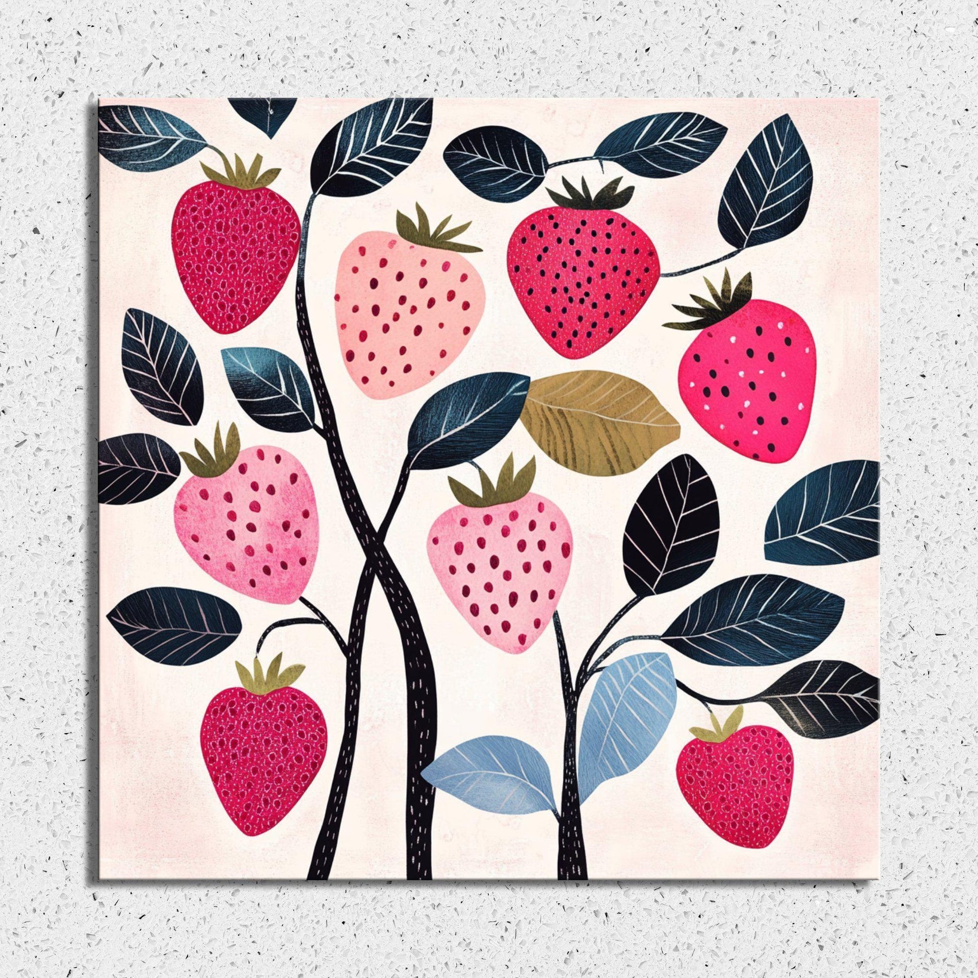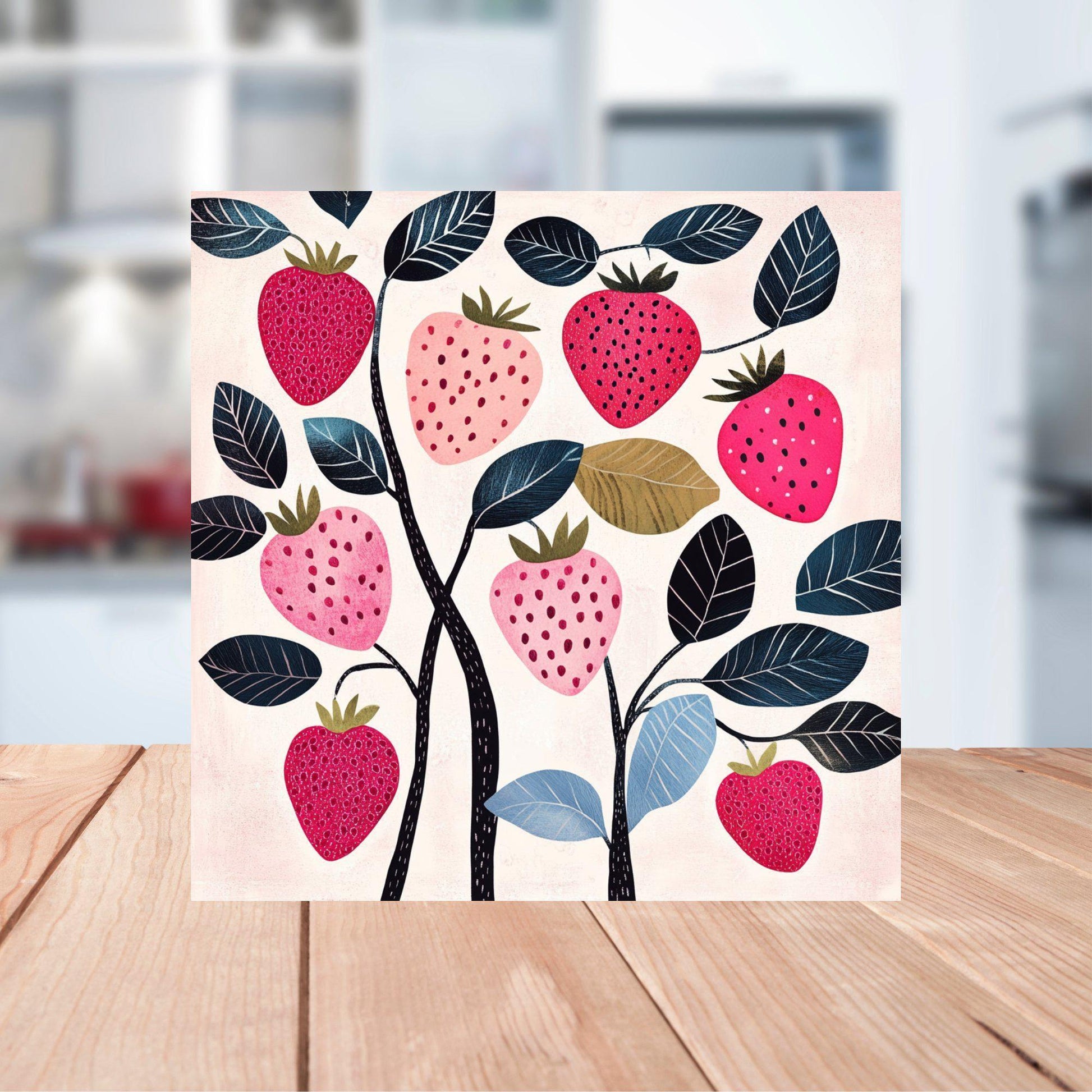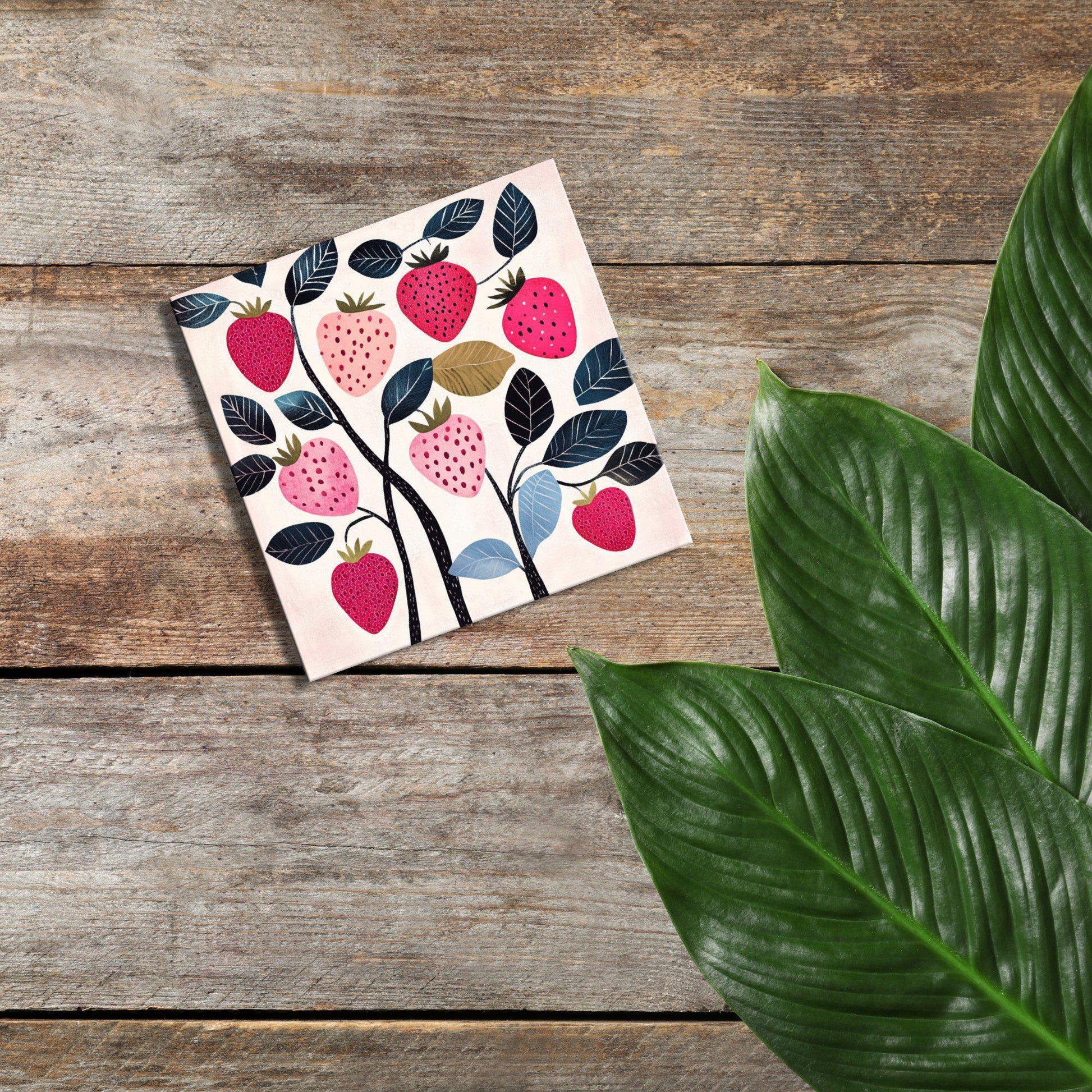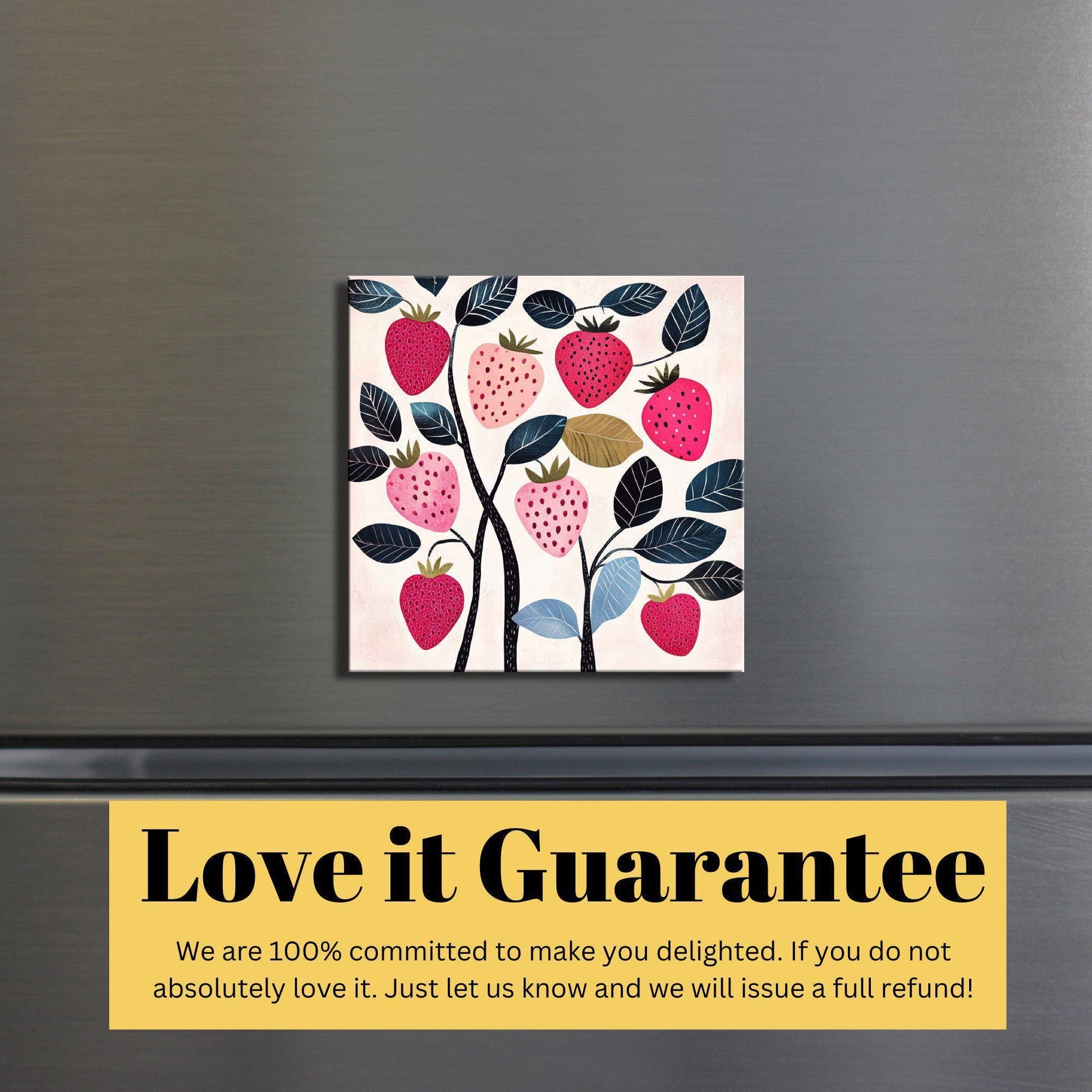 Strawberries and Pink Fridge Magnet 2-inch Strong Refrigerator Magnet Kitchen Decor Dopamine Ceramic Tile Art Gift for Her fridgescaping