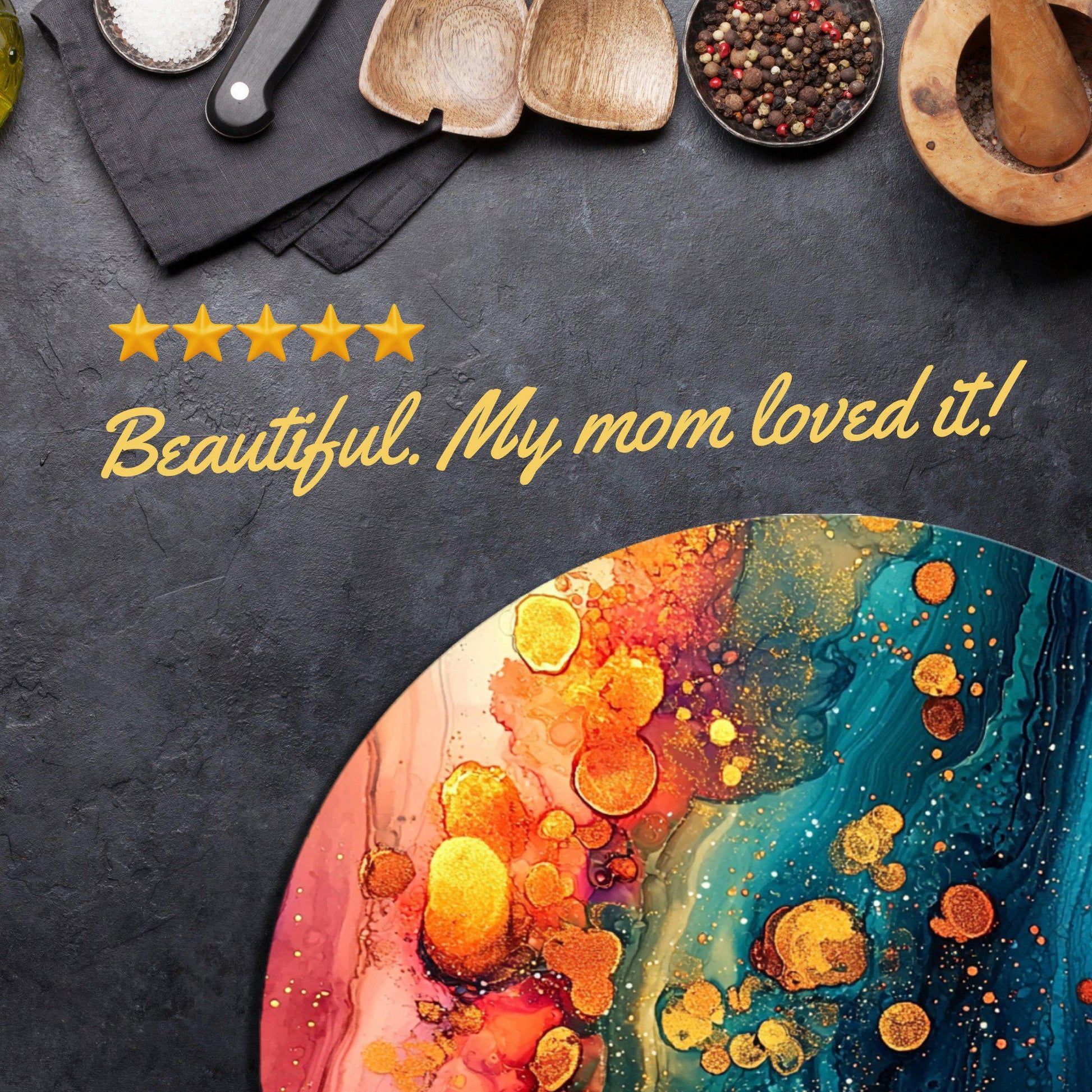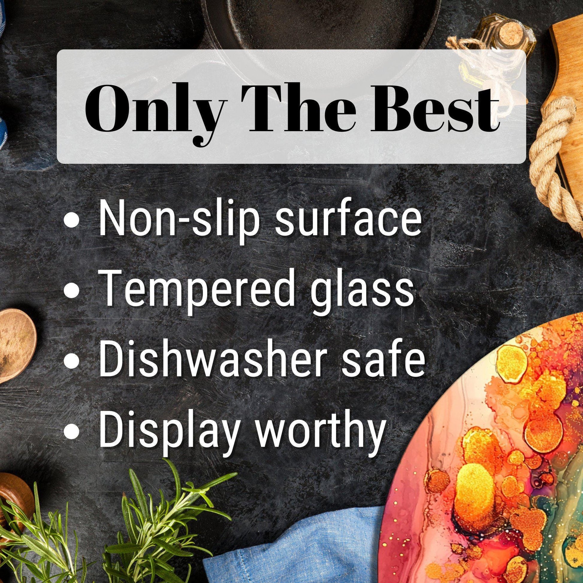 Elevate your kitchen with this functional and beautiful glass cutting board that seamlessly blends practicality with artistry.