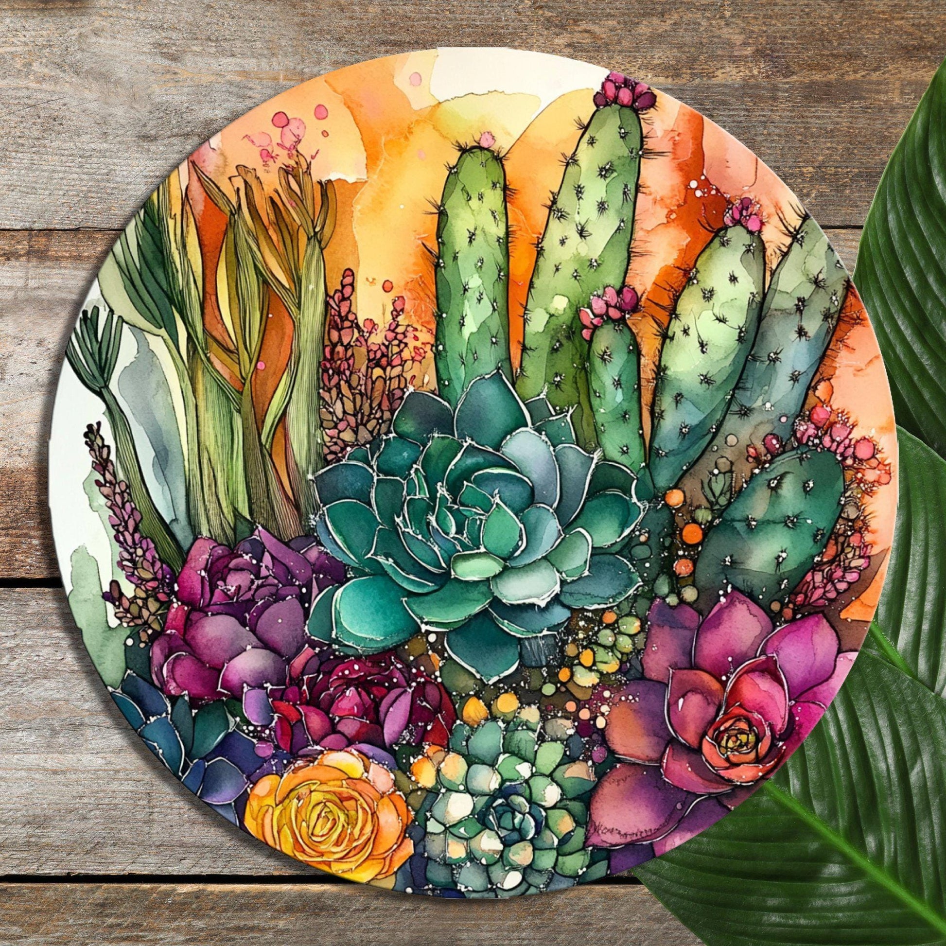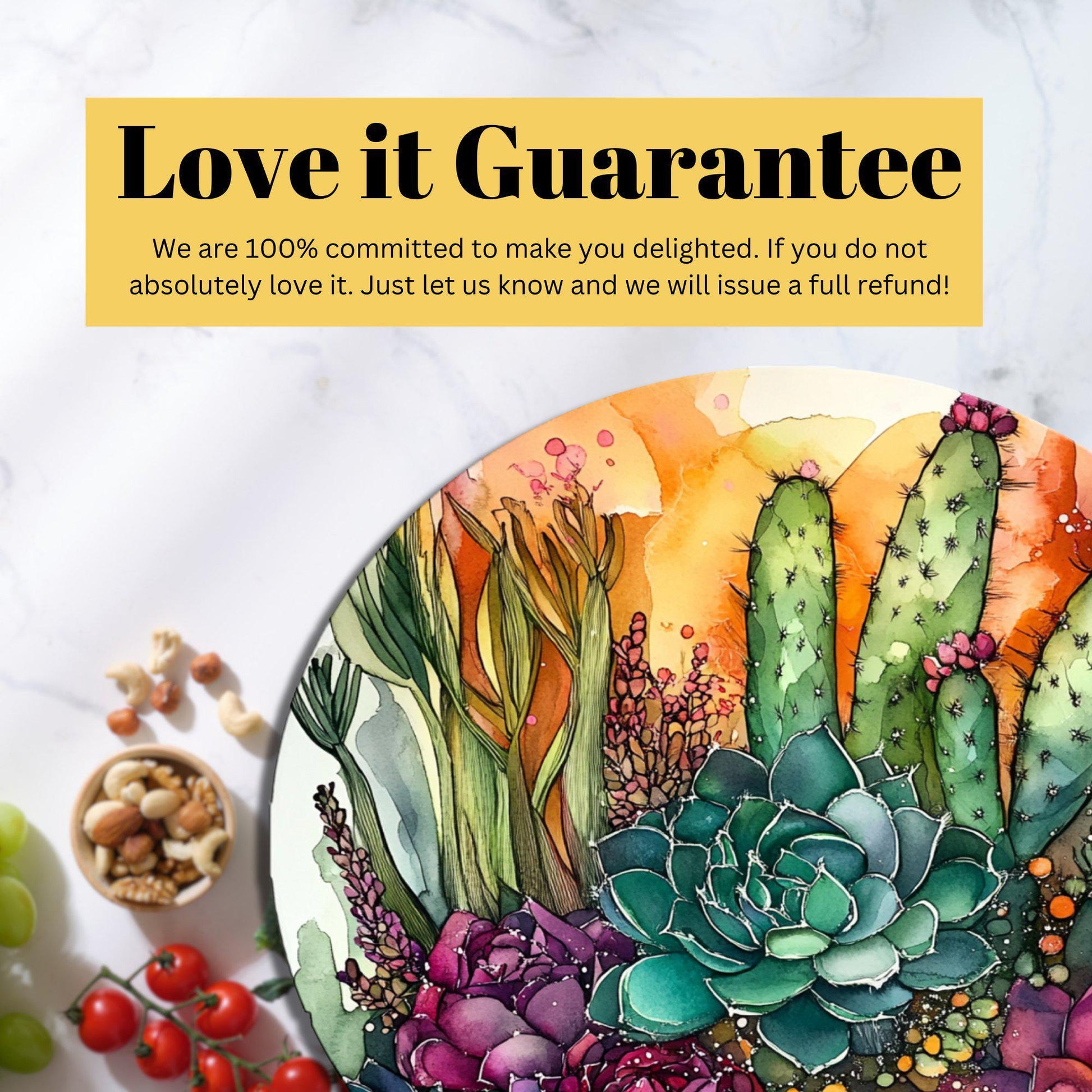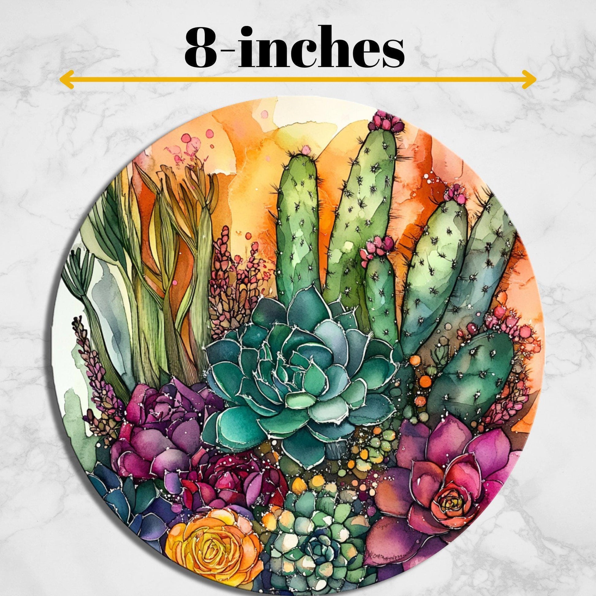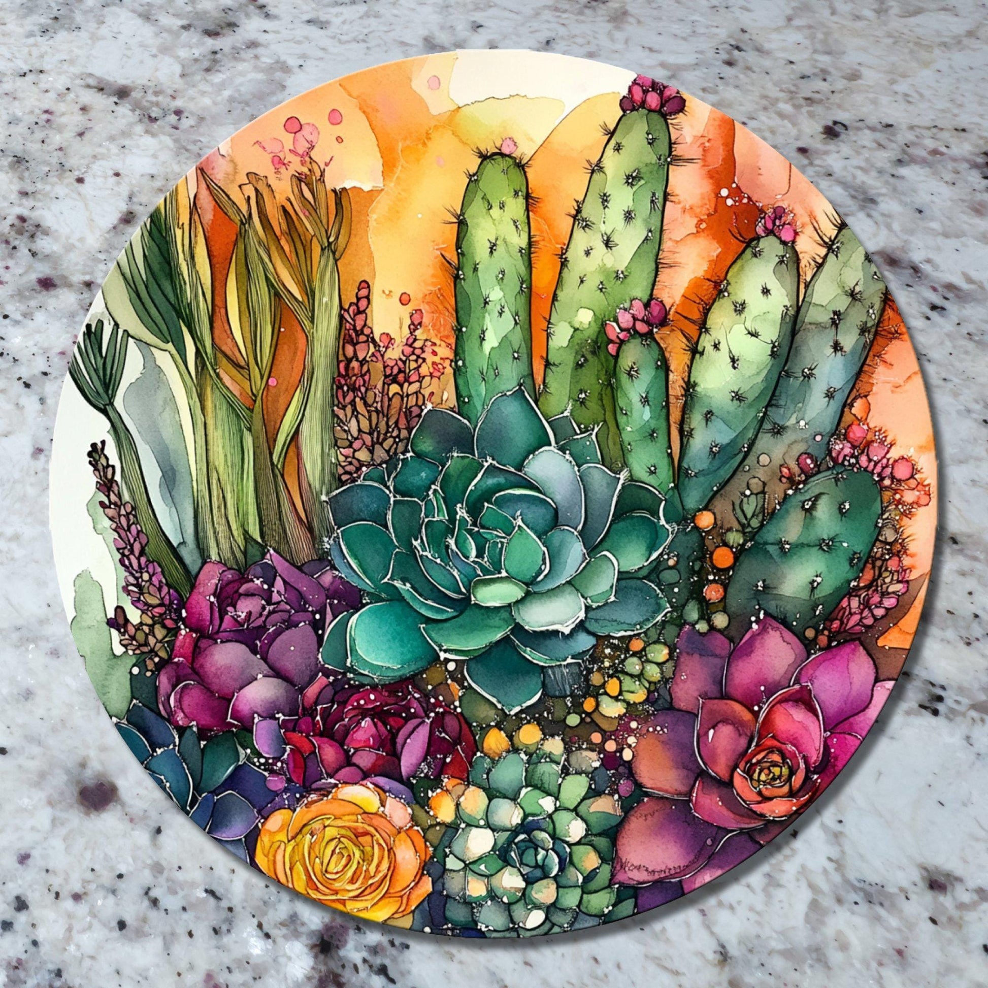 Succulents and Cacti Glass Cutting Board 8-inch Round Trivet Charcuterie Board Gift for Her Mom Kitchen Decor