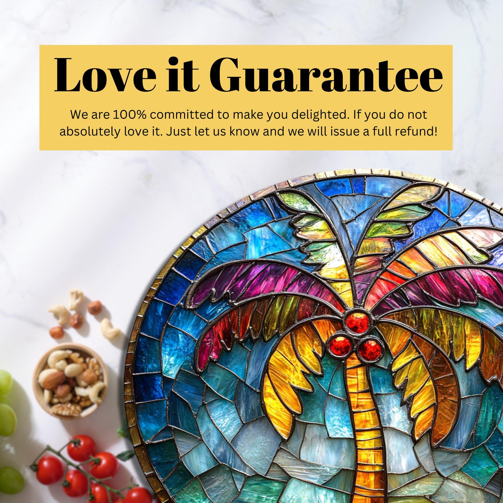 Tropical Palm Tree Christmas Glass Cutting Board 8-inch Round Trivet Charcuterie Board Gift for Her Mom Kitchen Decor