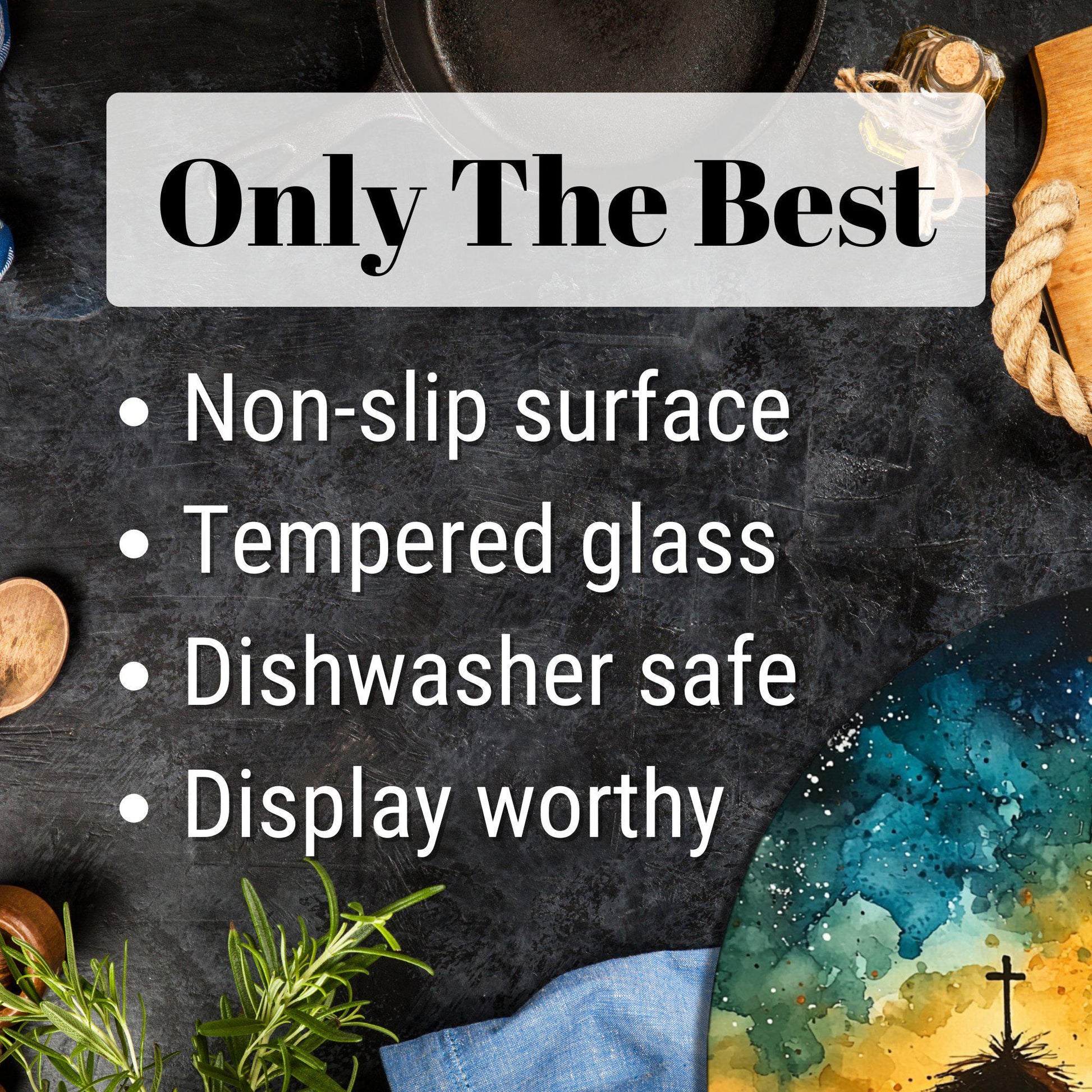 Elevate your kitchen with this functional and beautiful glass cutting board that seamlessly blends practicality with artistry.