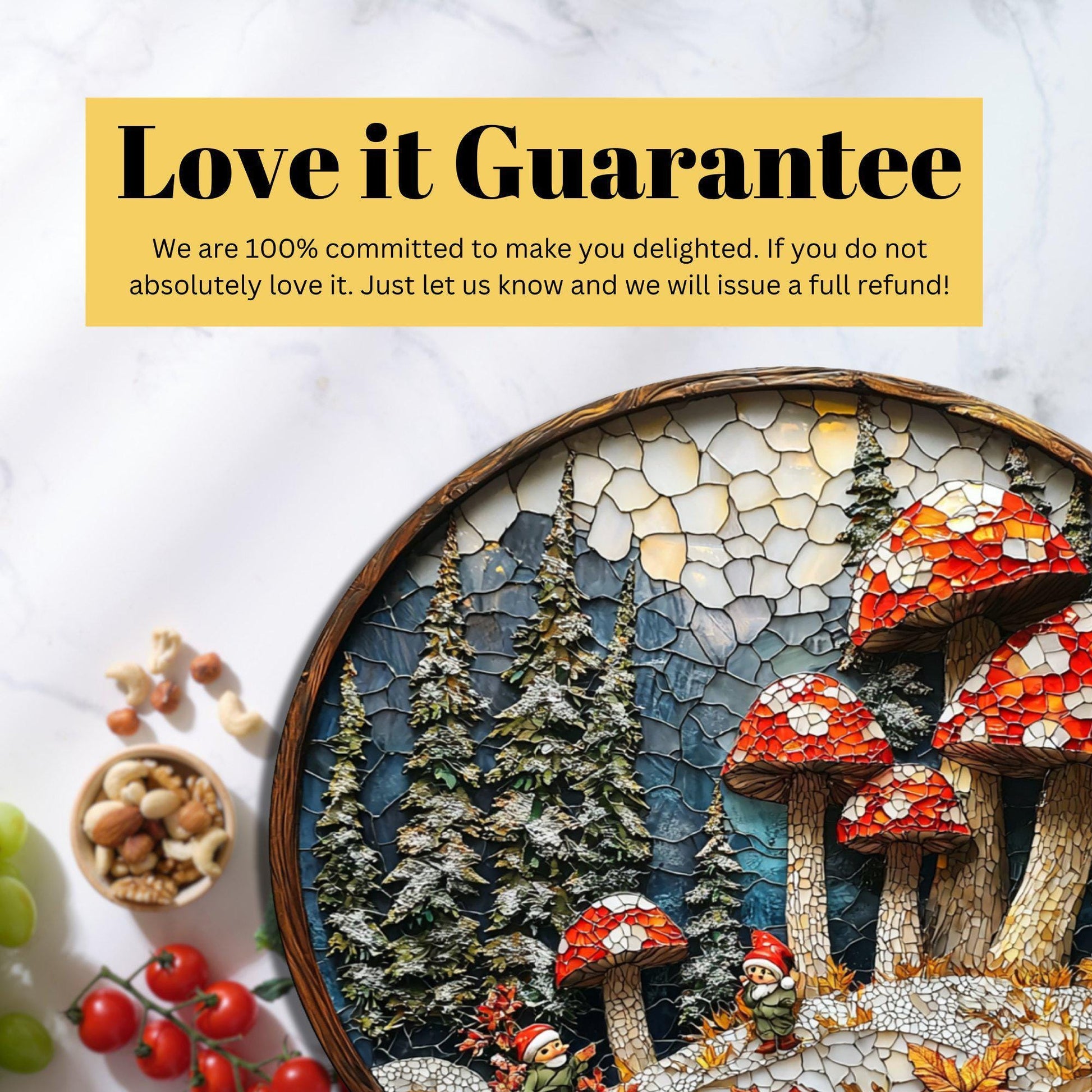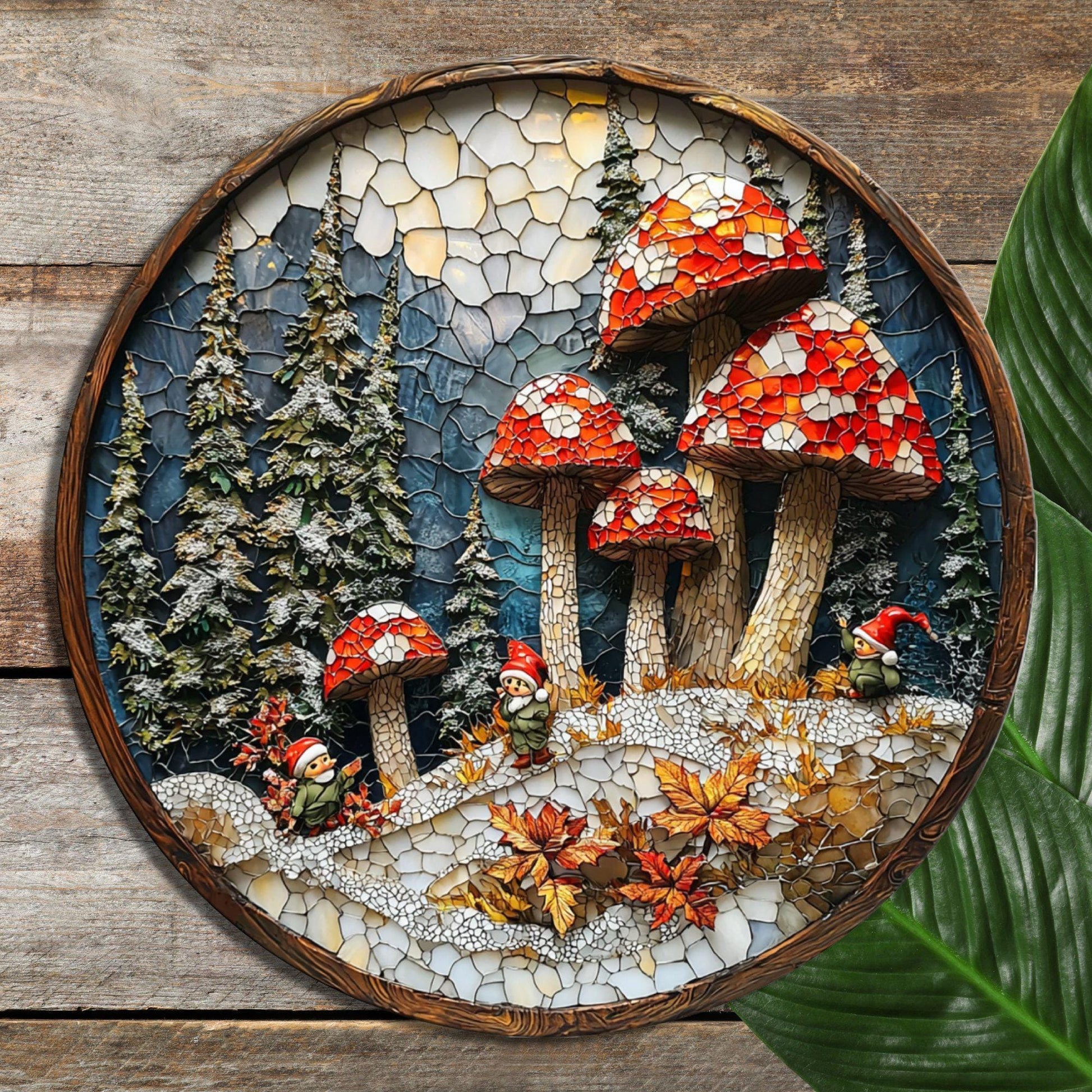 Winter Mushroom Patch Glass Cutting Board 8-inch Round Trivet Charcuterie Board Gift for Her Mom Kitchen Decor
