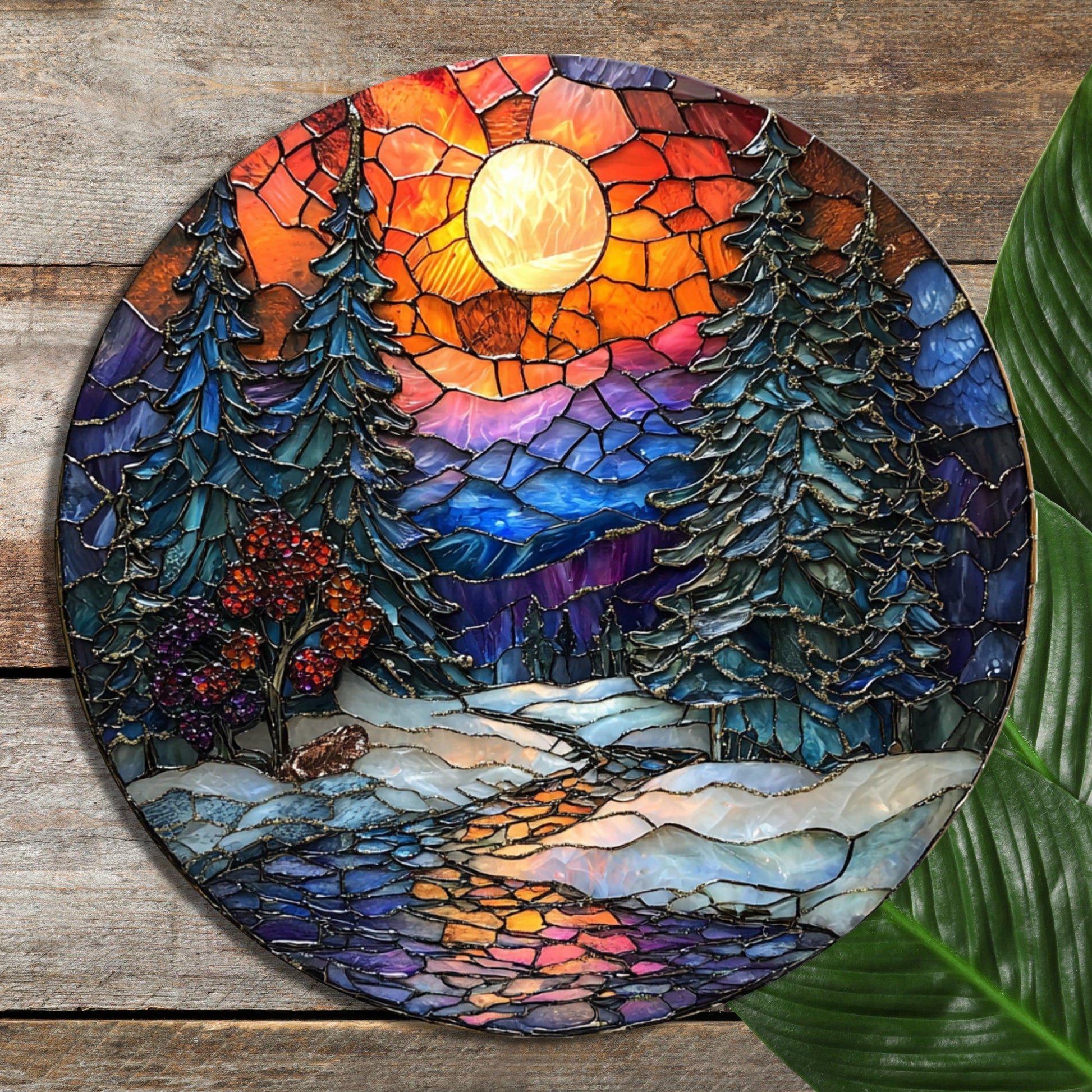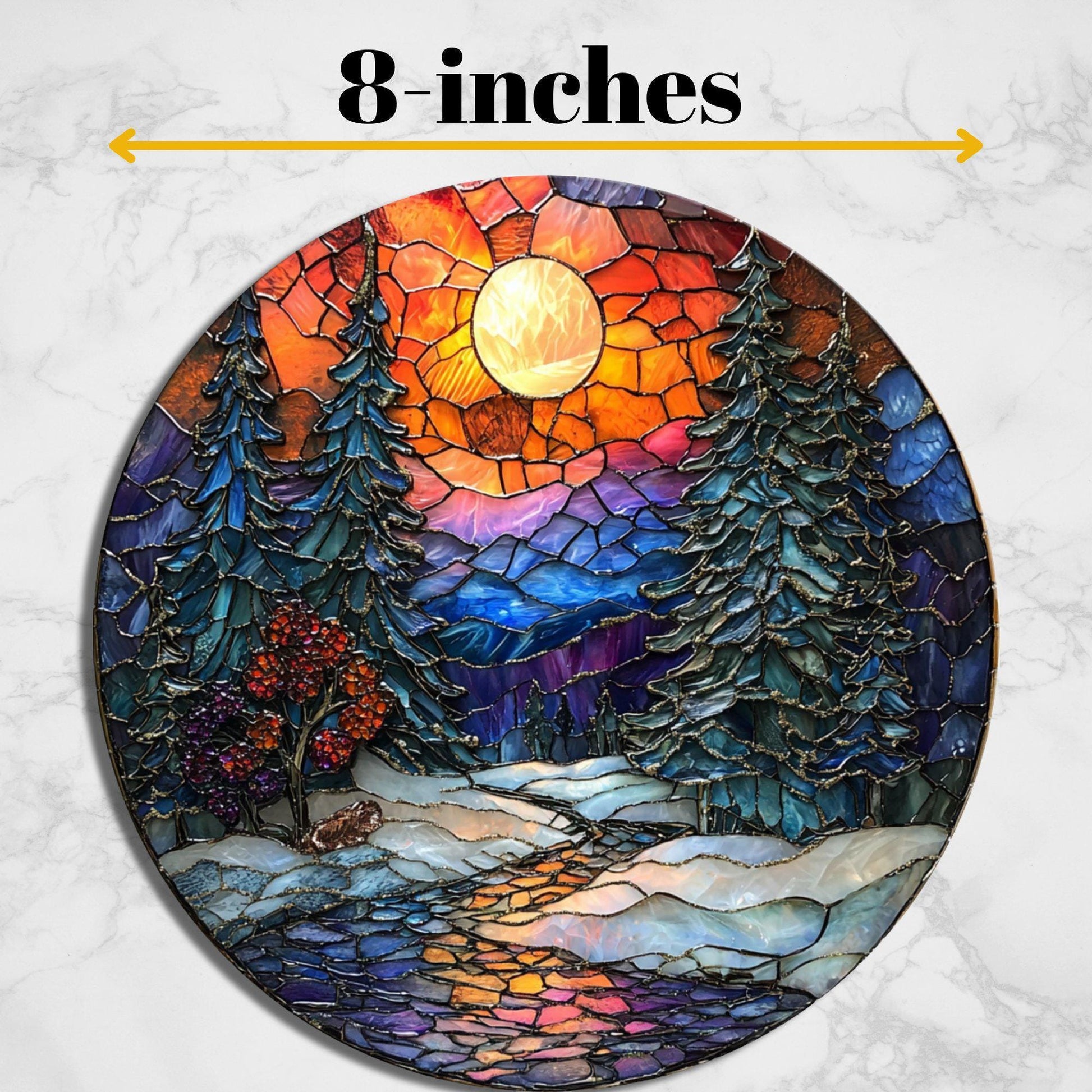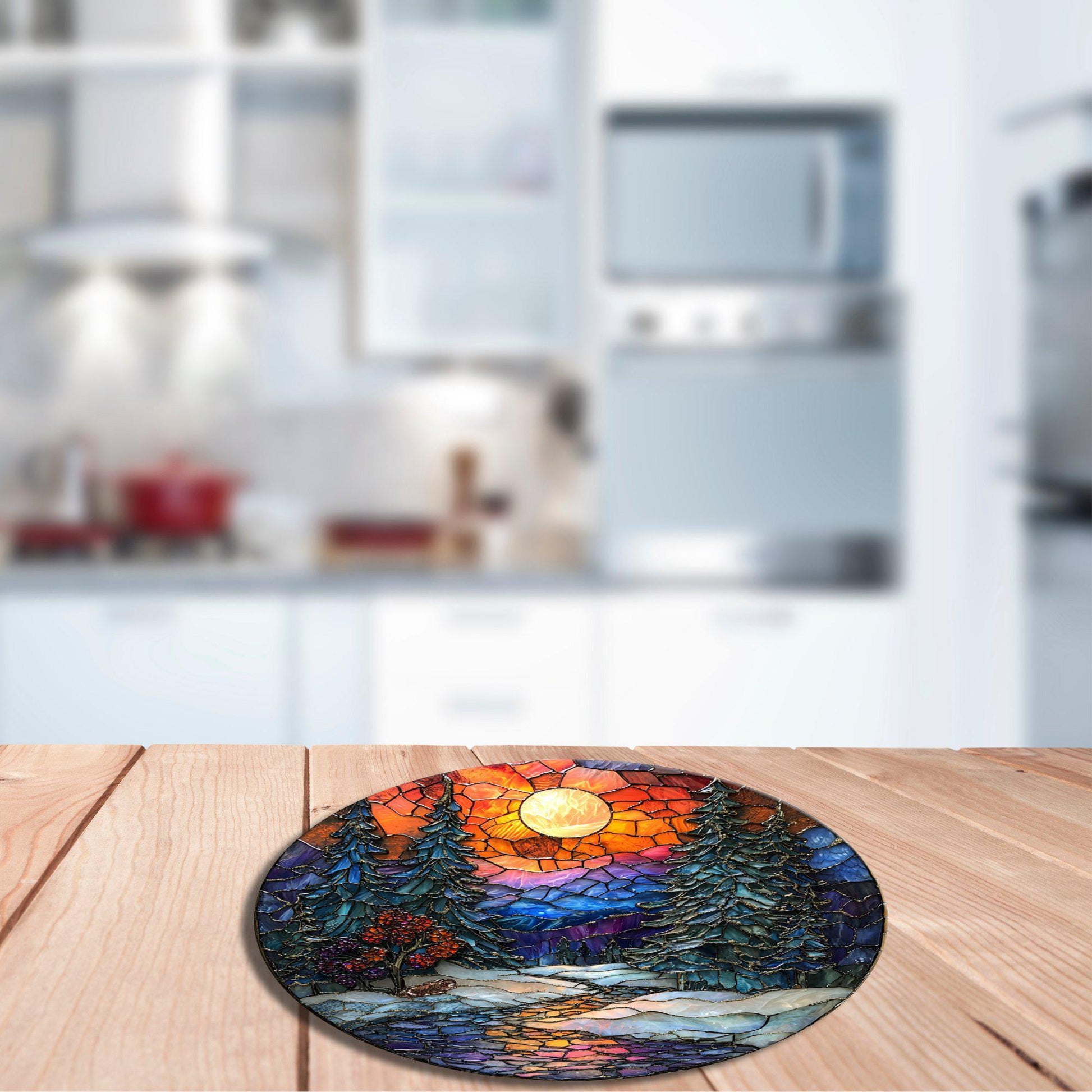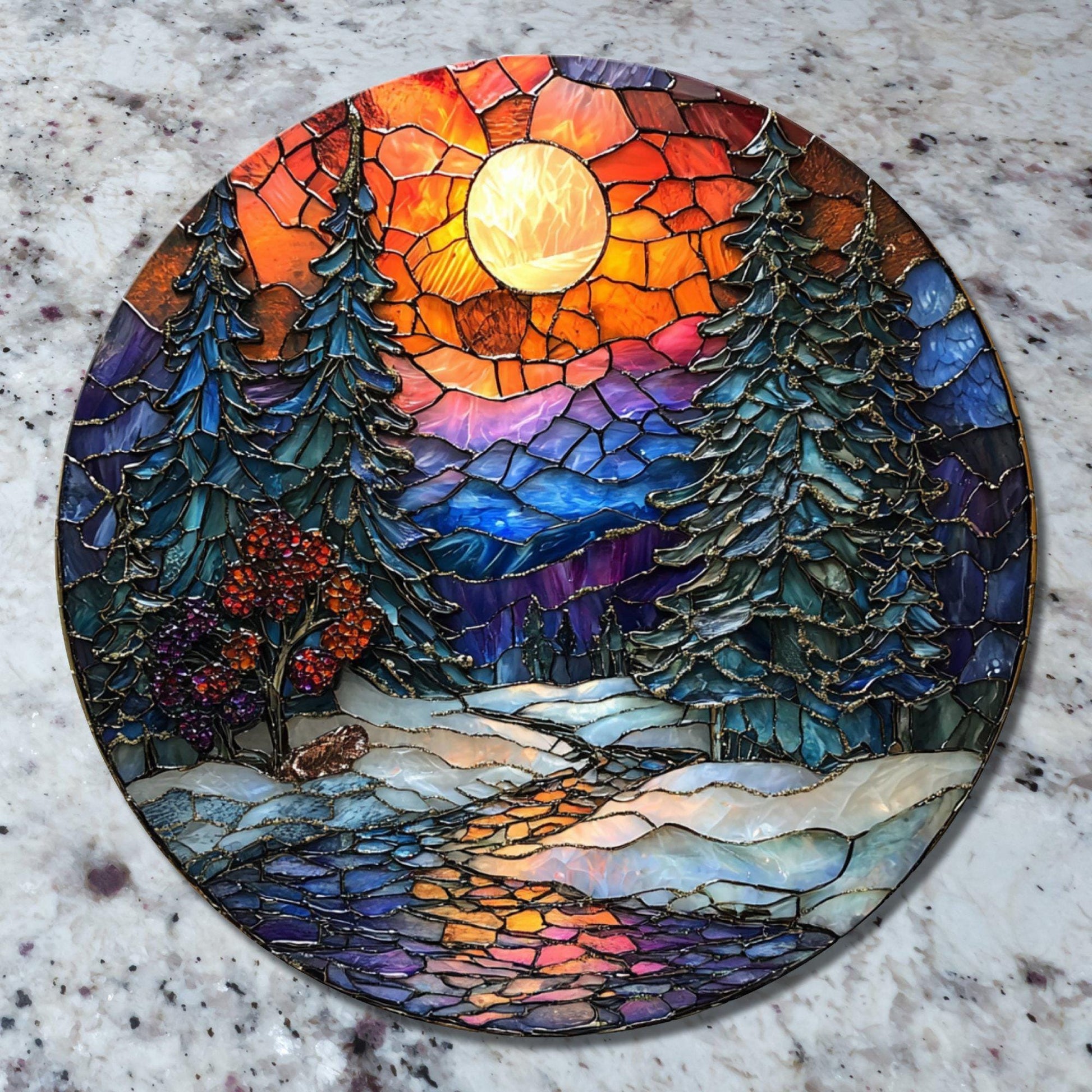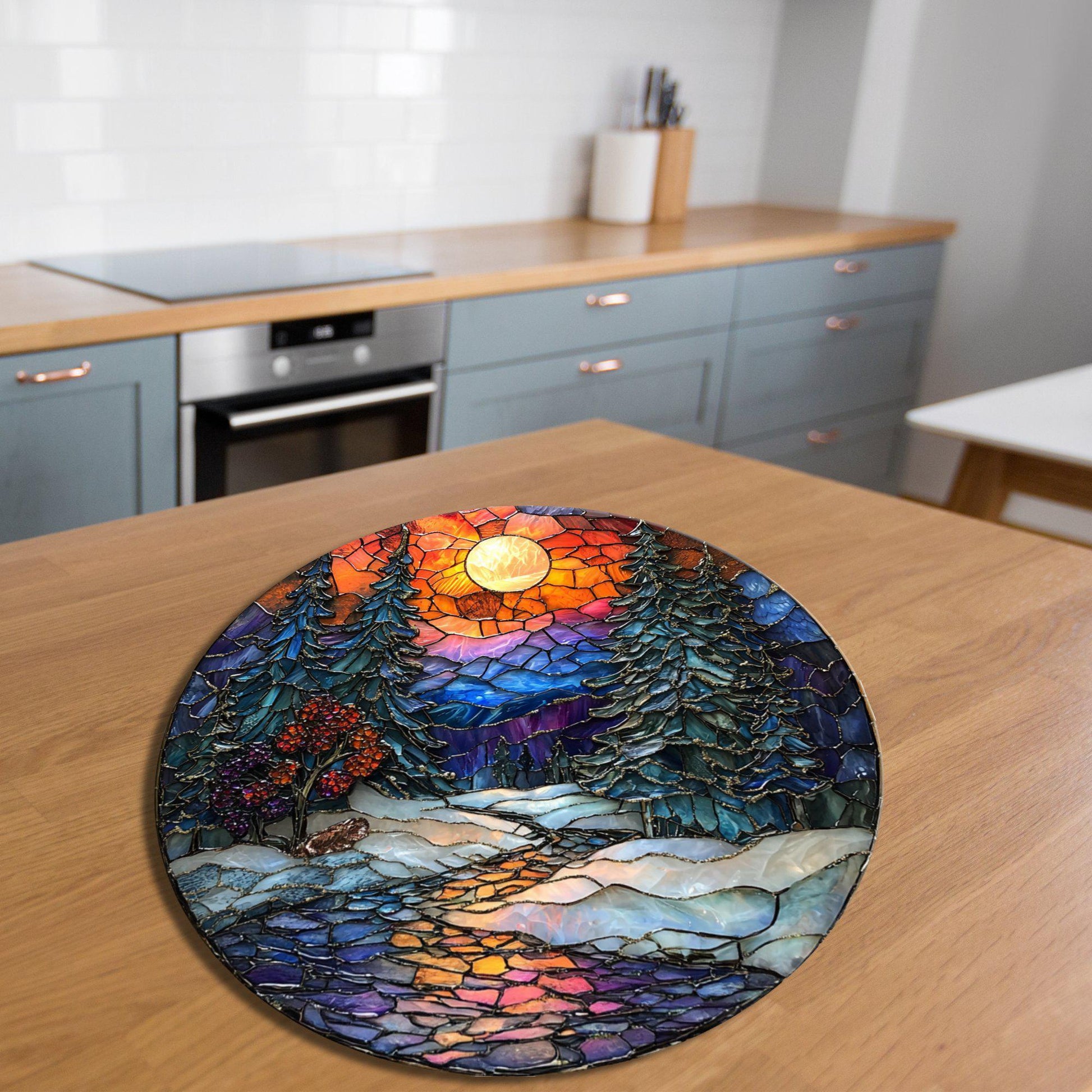 Winter Stream and Woods Glass Cutting Board 8-inch Round Trivet Charcuterie Board Gift for Her Mom Kitchen Decor