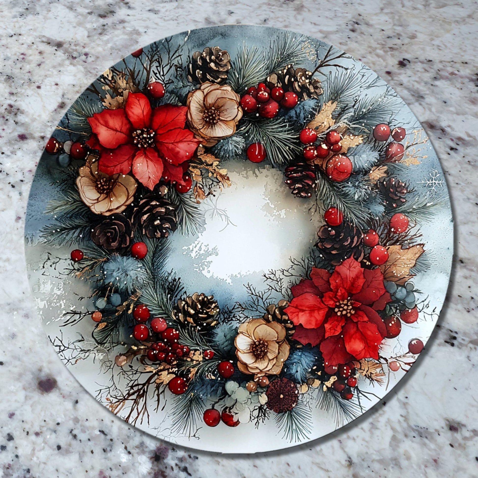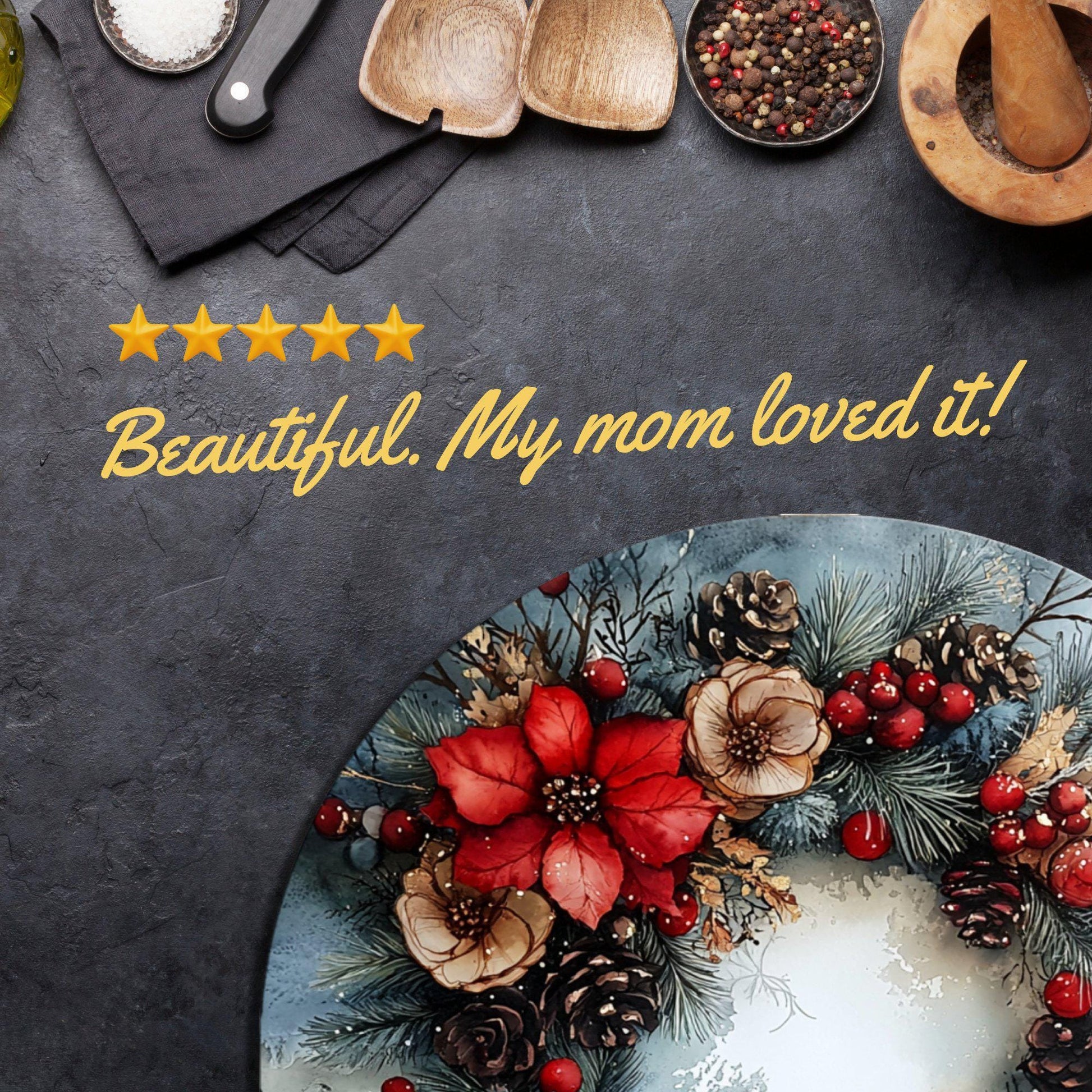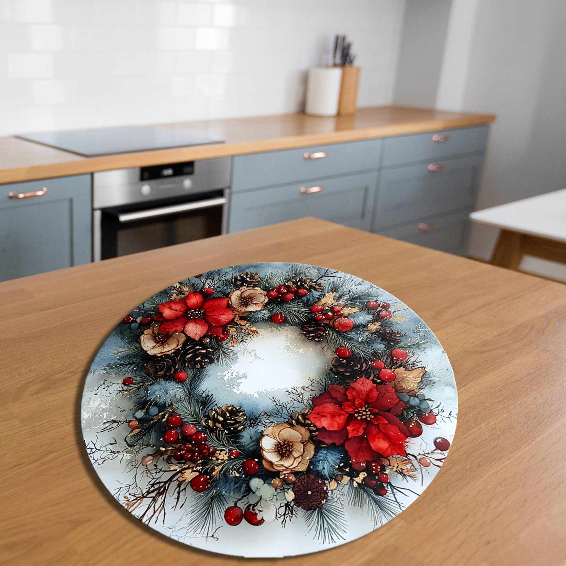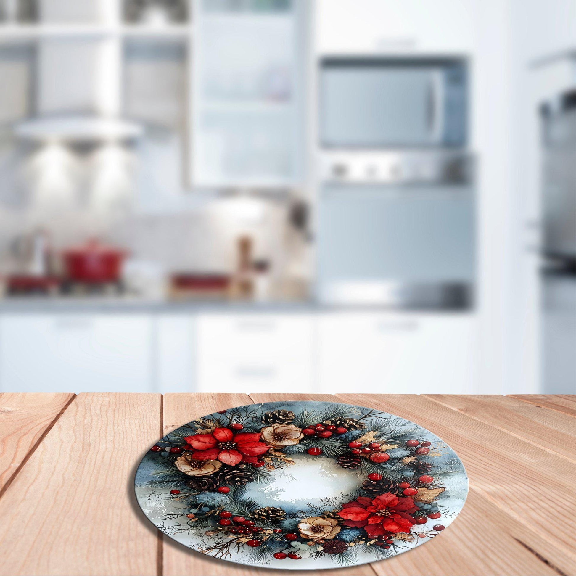 Winter Wreath Glass Cutting Board 8-inch Round Trivet Charcuterie Board Gift for Her Mom Kitchen Decor