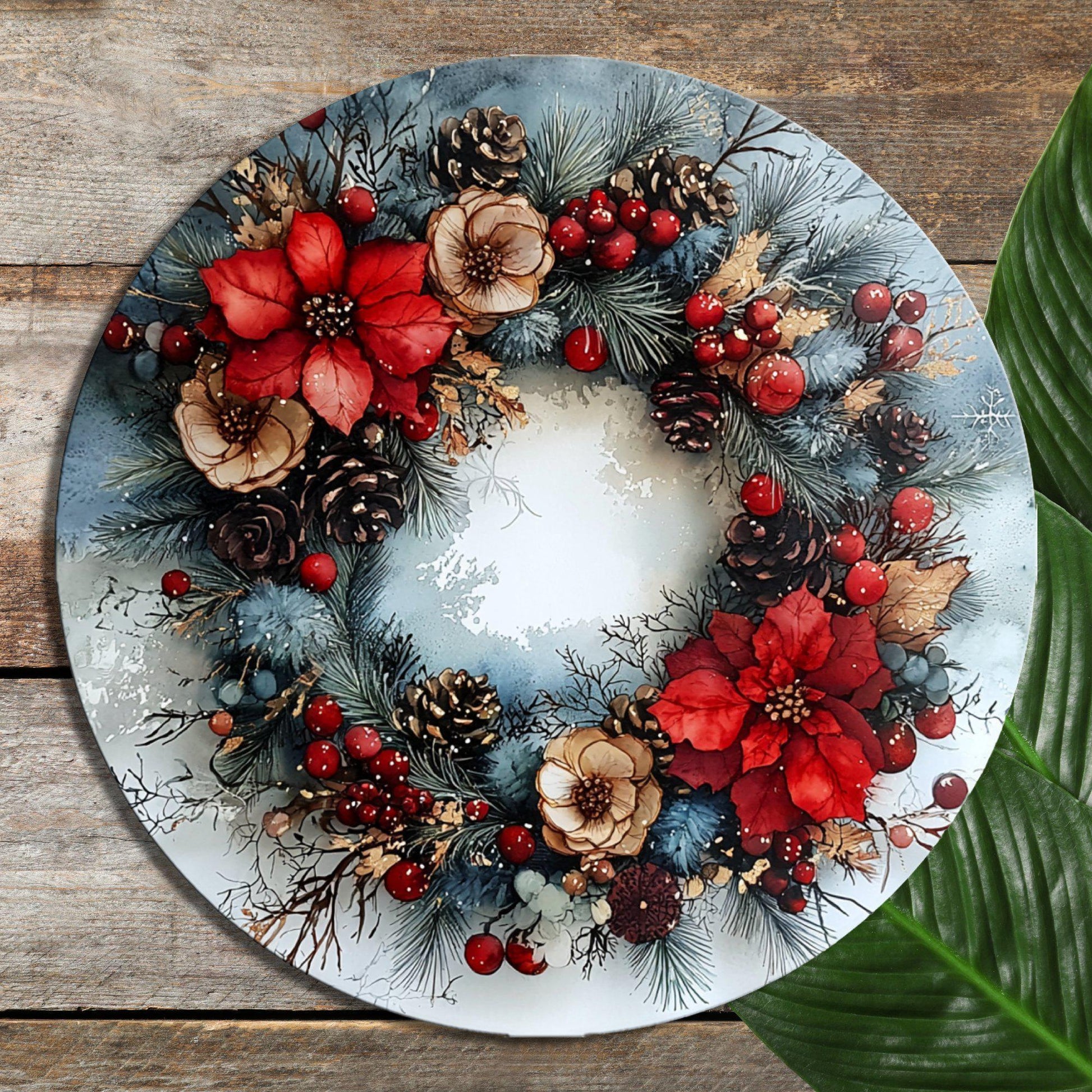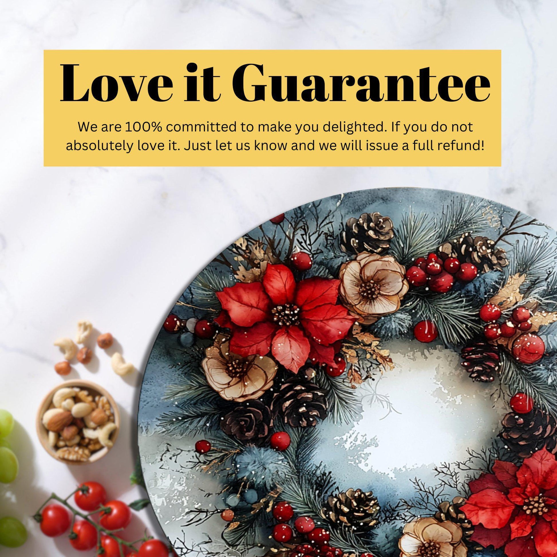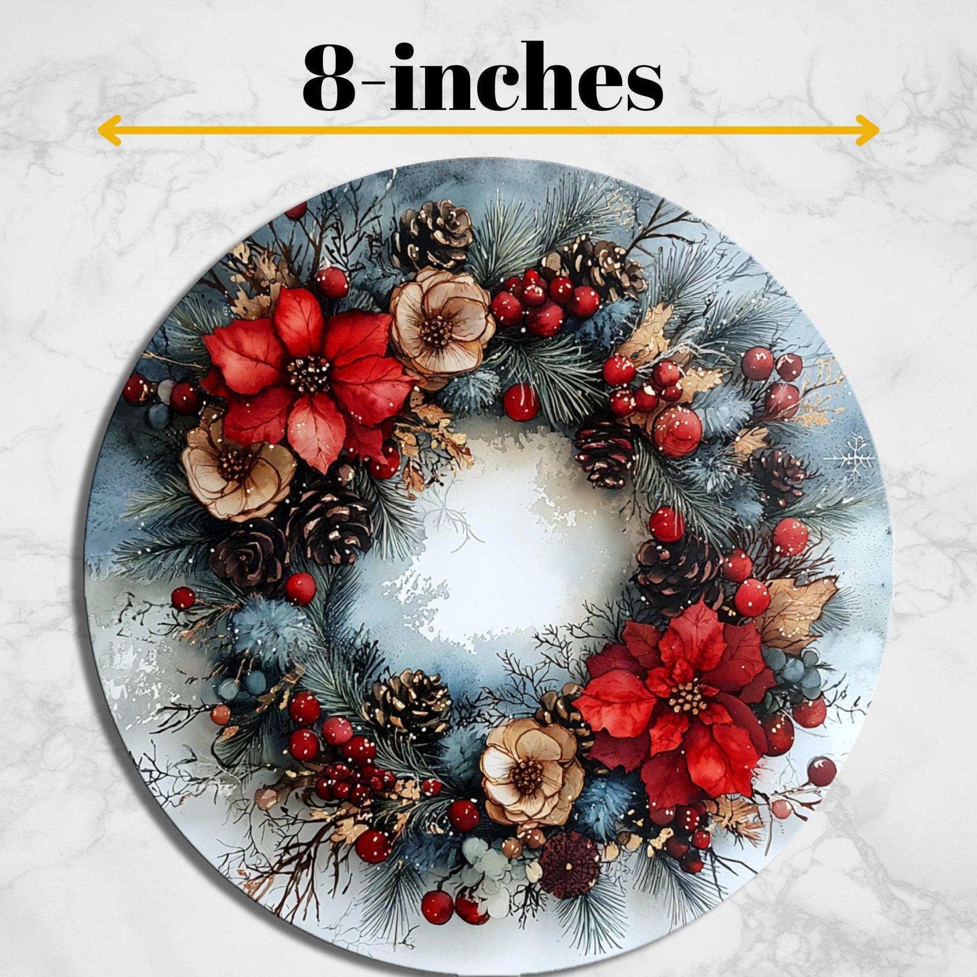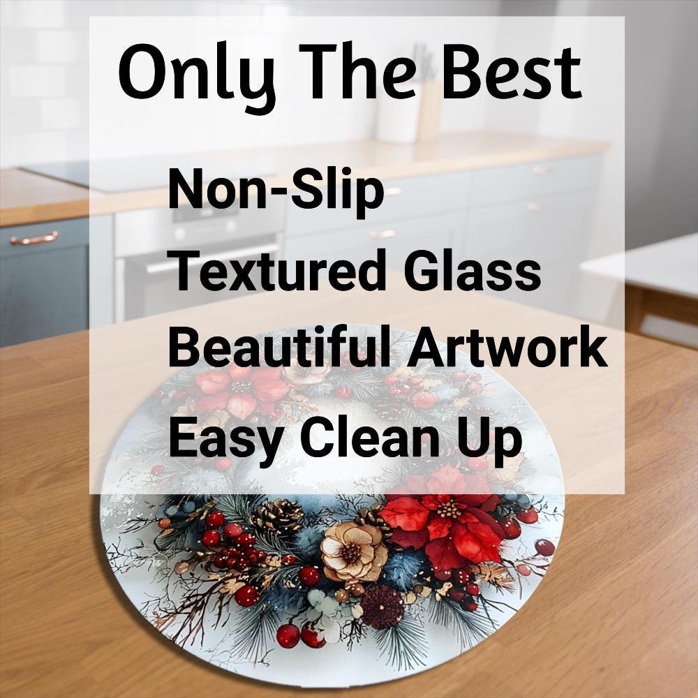 Winter Wreath Glass Cutting Board 8-inch Round Trivet Charcuterie Board Gift for Her Mom Kitchen Decor
